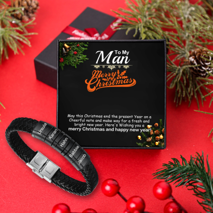 5 Names-Personalized Braided Leather Bracelet Set With Gift Box-Custom Men's Bracelet Engraved 5 Names Gift for Him