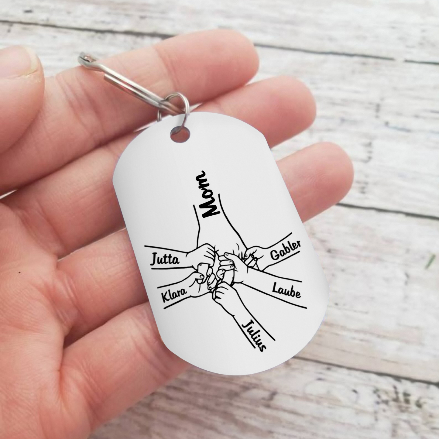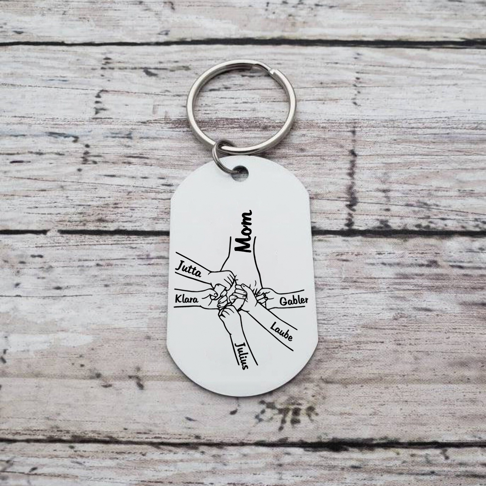 5 Names Personalized Charm Design Keychain Mom Hook Engraved Text Special Gift for Mom
