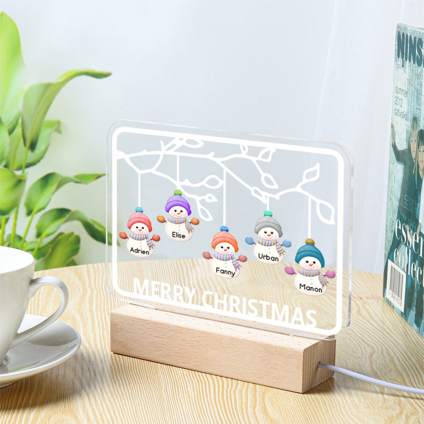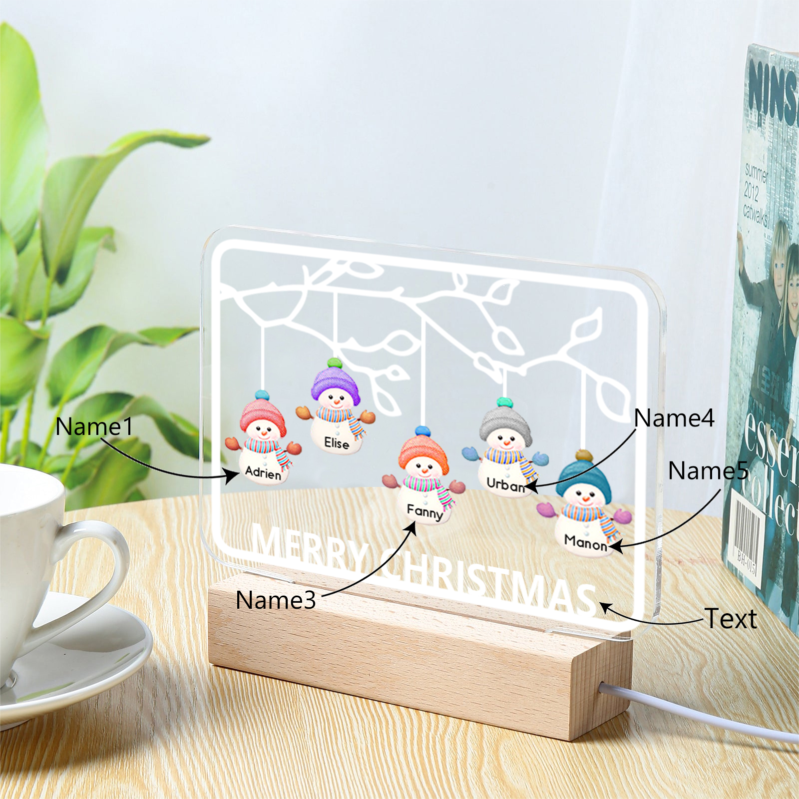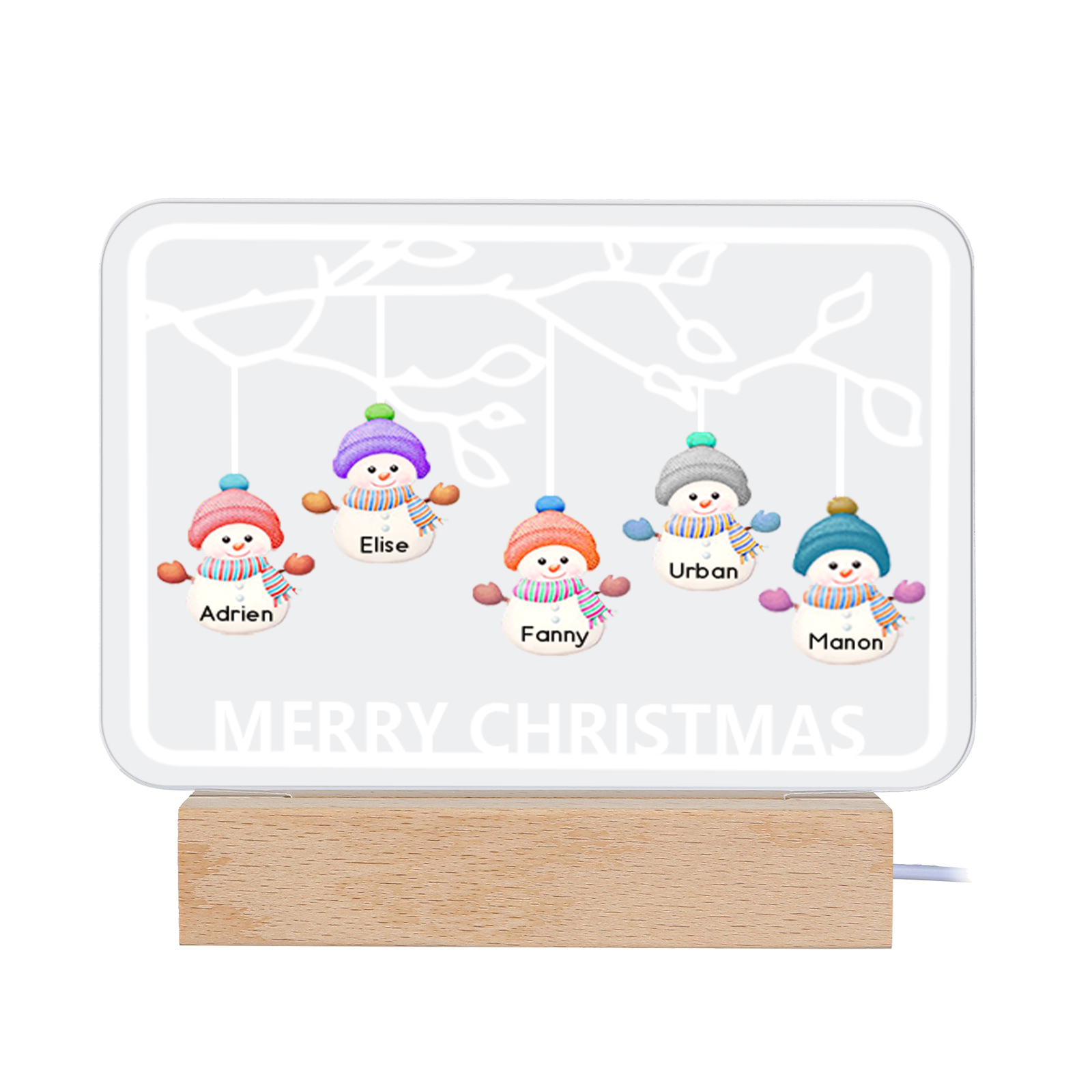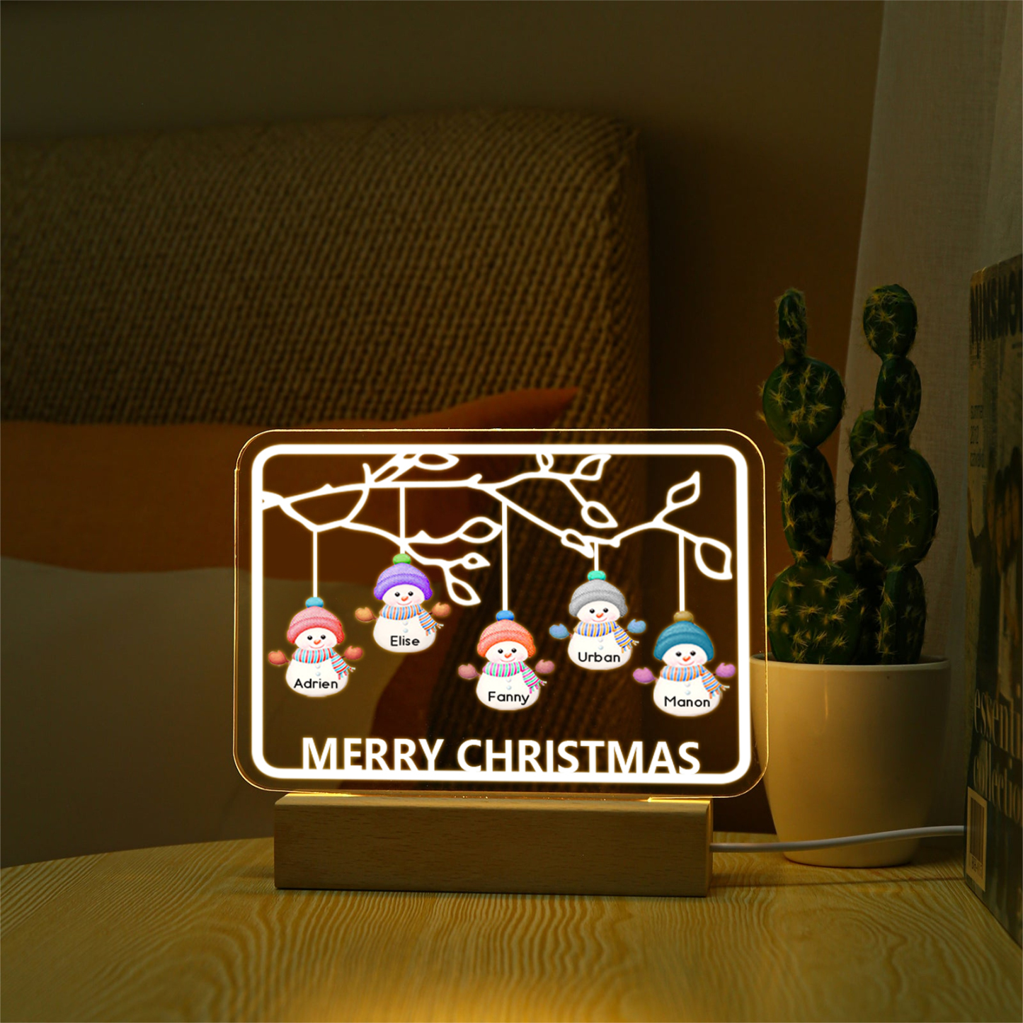 5 Names-Personalized Christmas Family Night Light with Family Member Names, Custom 5 Names Night Light with LED Lighting Bedroom Decoration