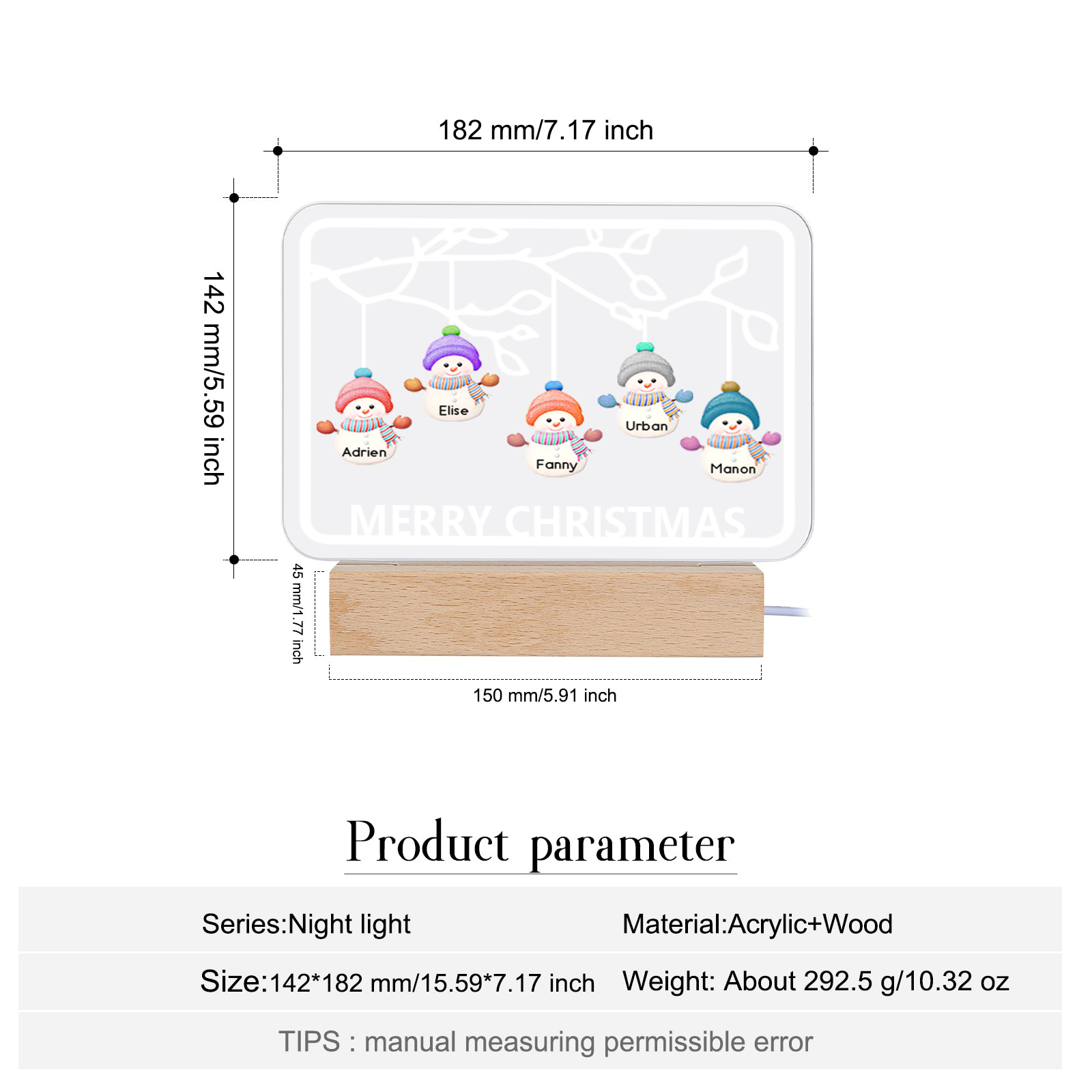 🎄Crafted with a blend of premium acrylic and a sturdy wooden base, this night light emanates warmth and charm. Add a touch of personalization and festive cheer to your home decor with this enchanting Christmas Tree Night Light.