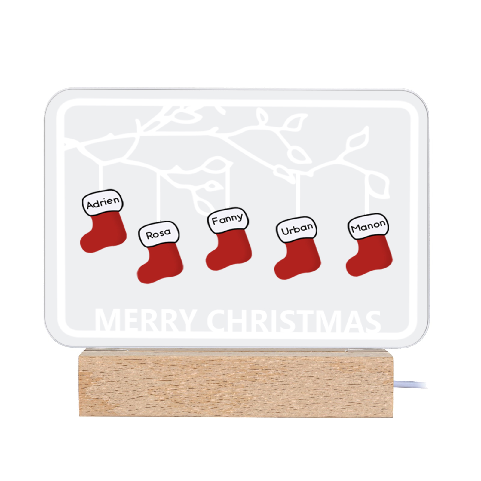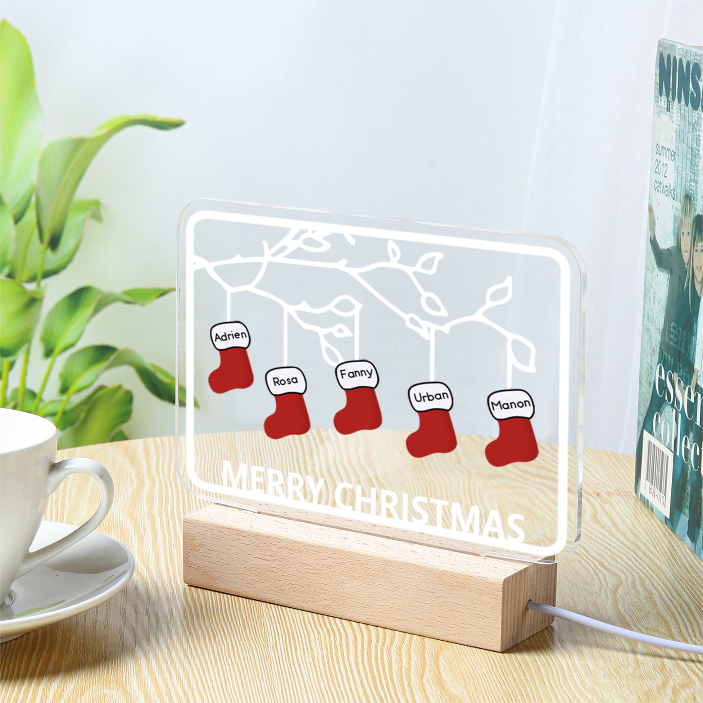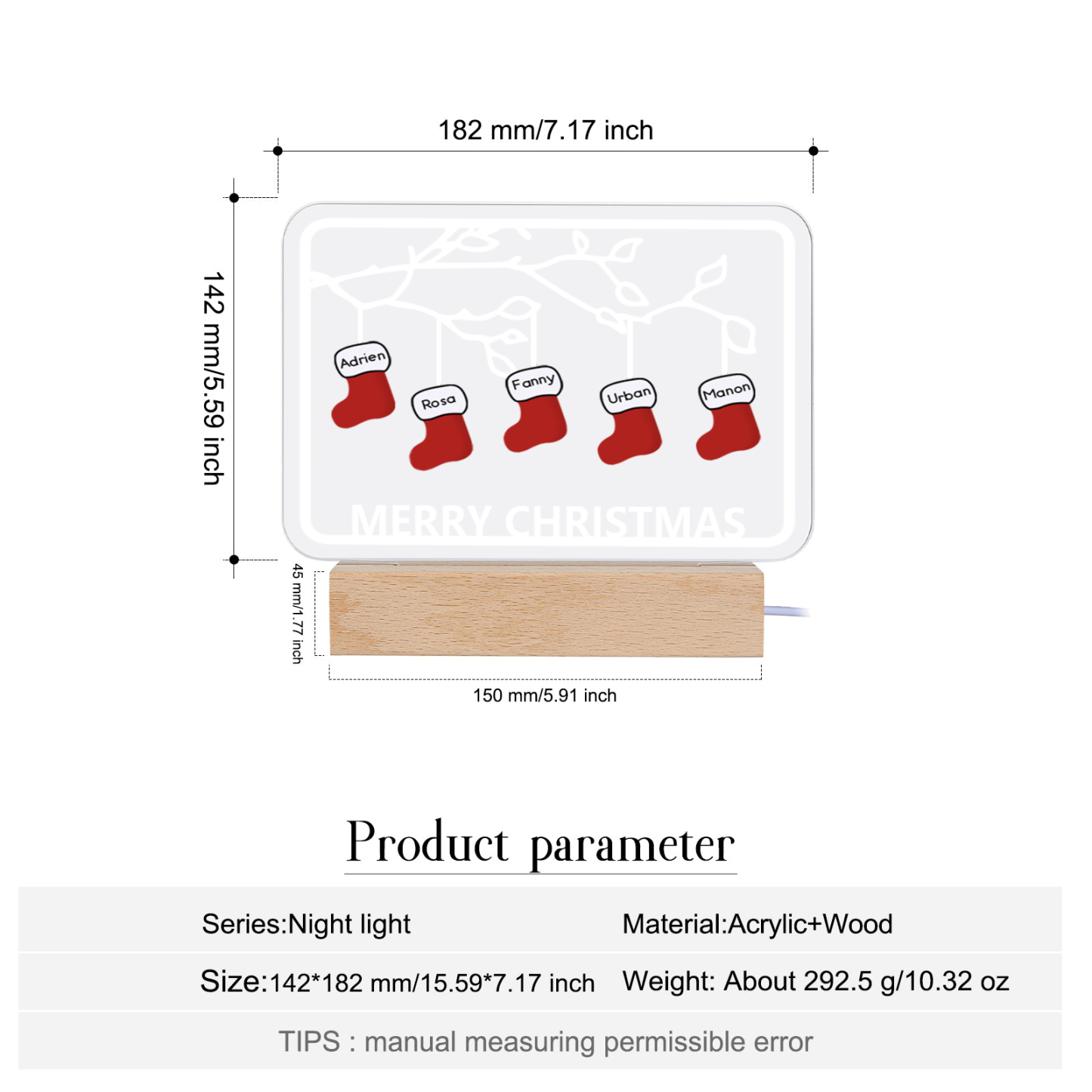 5 Names-Personalized Christmas Family Night Light with Family Member Names, Custom 5 Names Night Light with LED Lighting Bedroom Decoration