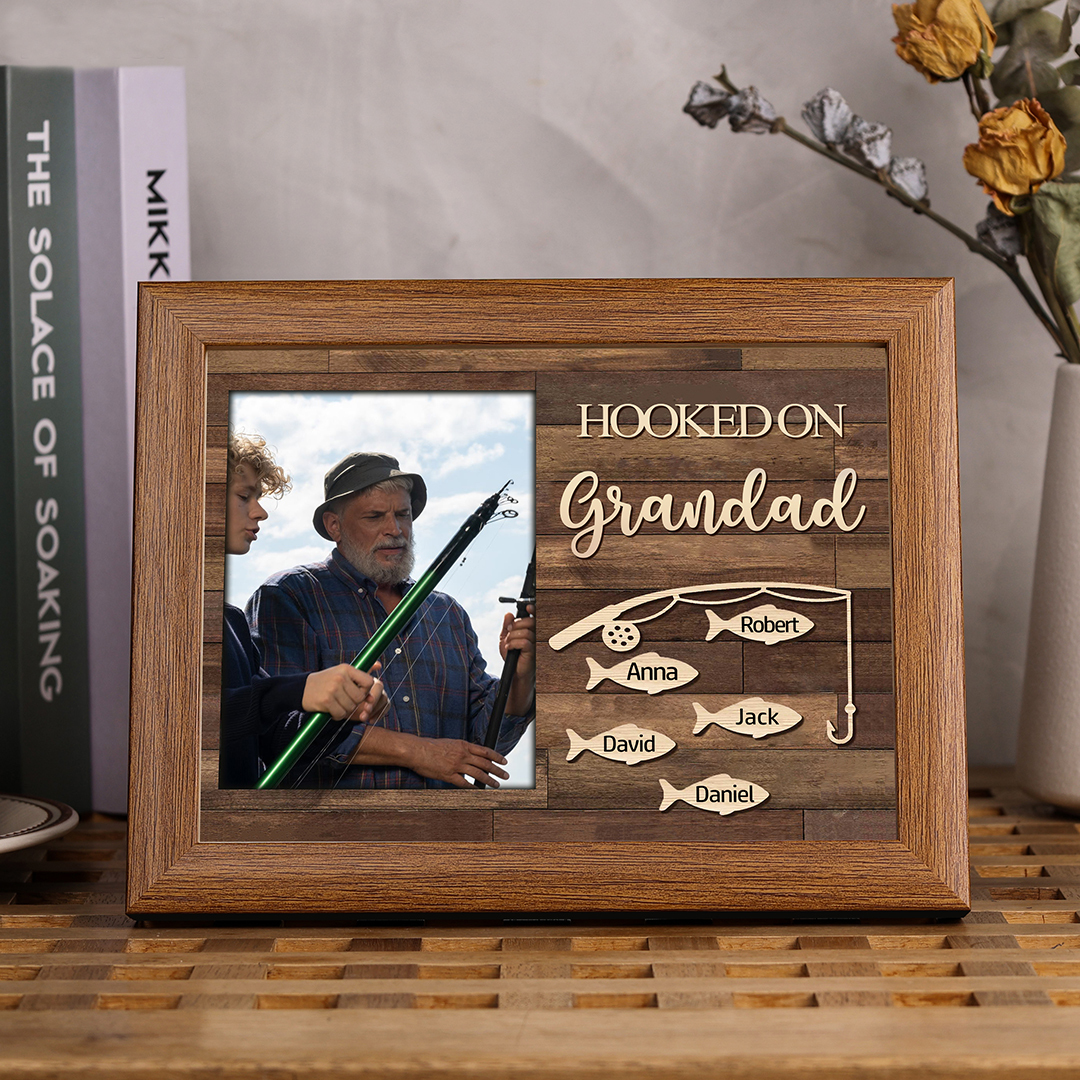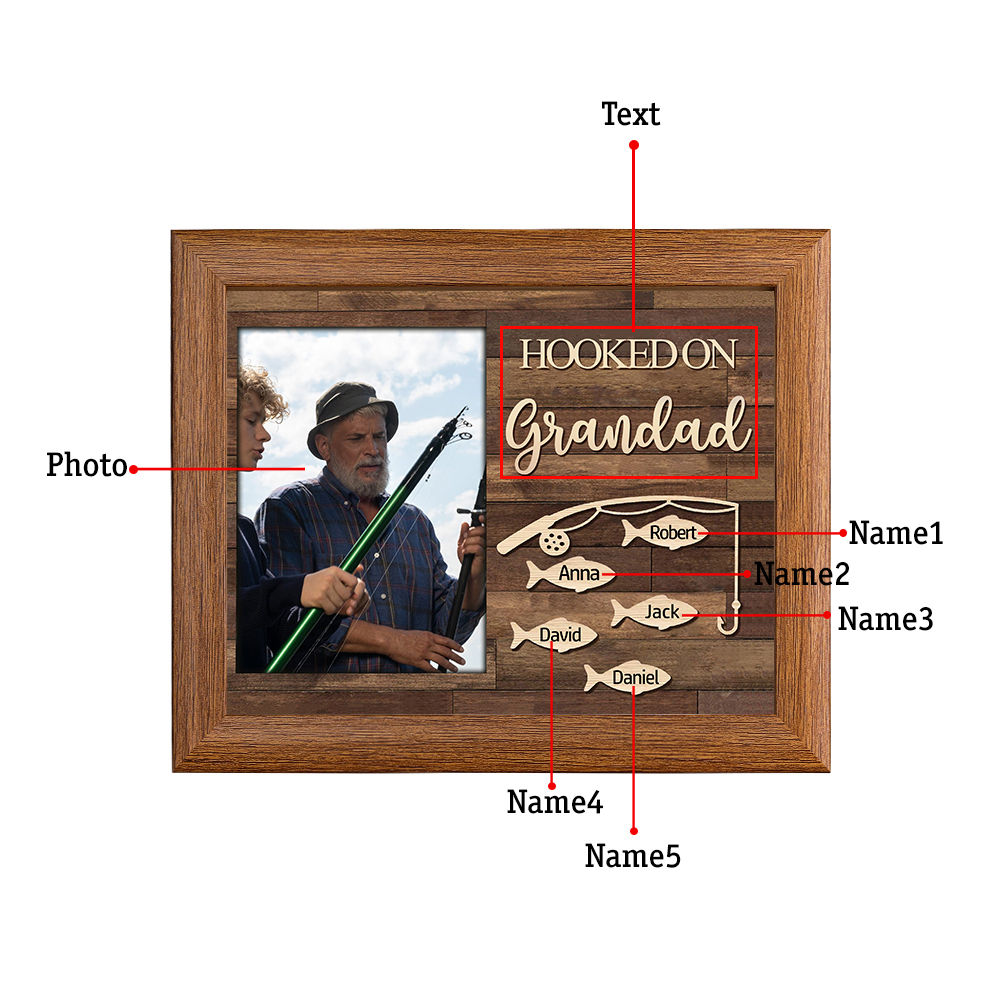 5 Names-Personalized Christmas Family Photo Frame with Family Member Names, Custom 5 Names And Photo Bedroom Decoration Gift For Grandpa