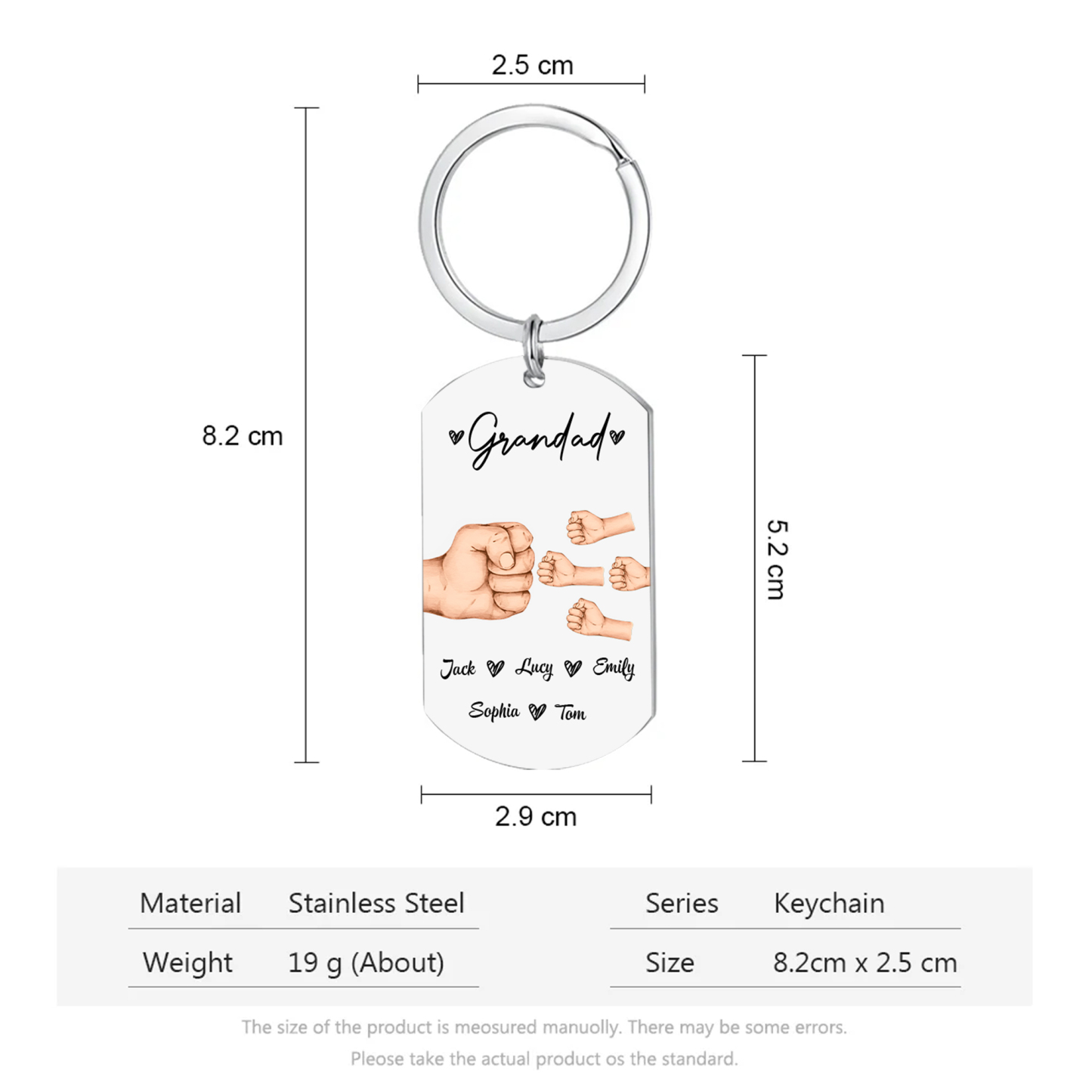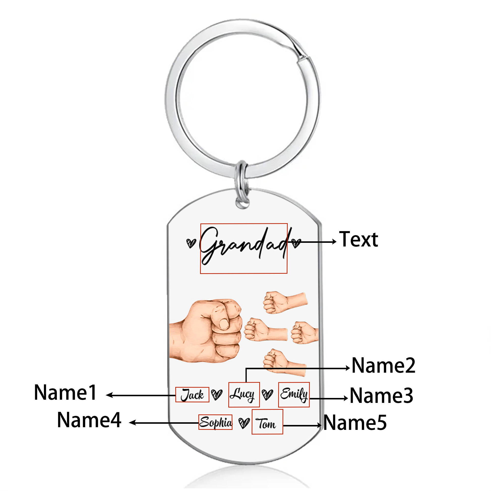5 Names - Personalized Custom Fist Bump Keychain Gift Custom Name for Dad