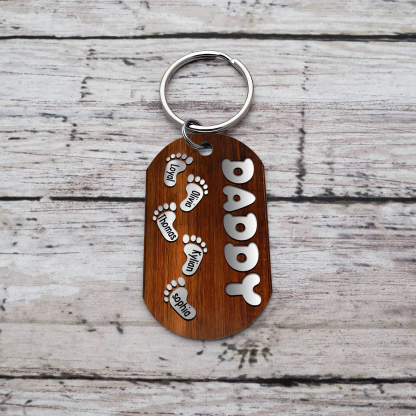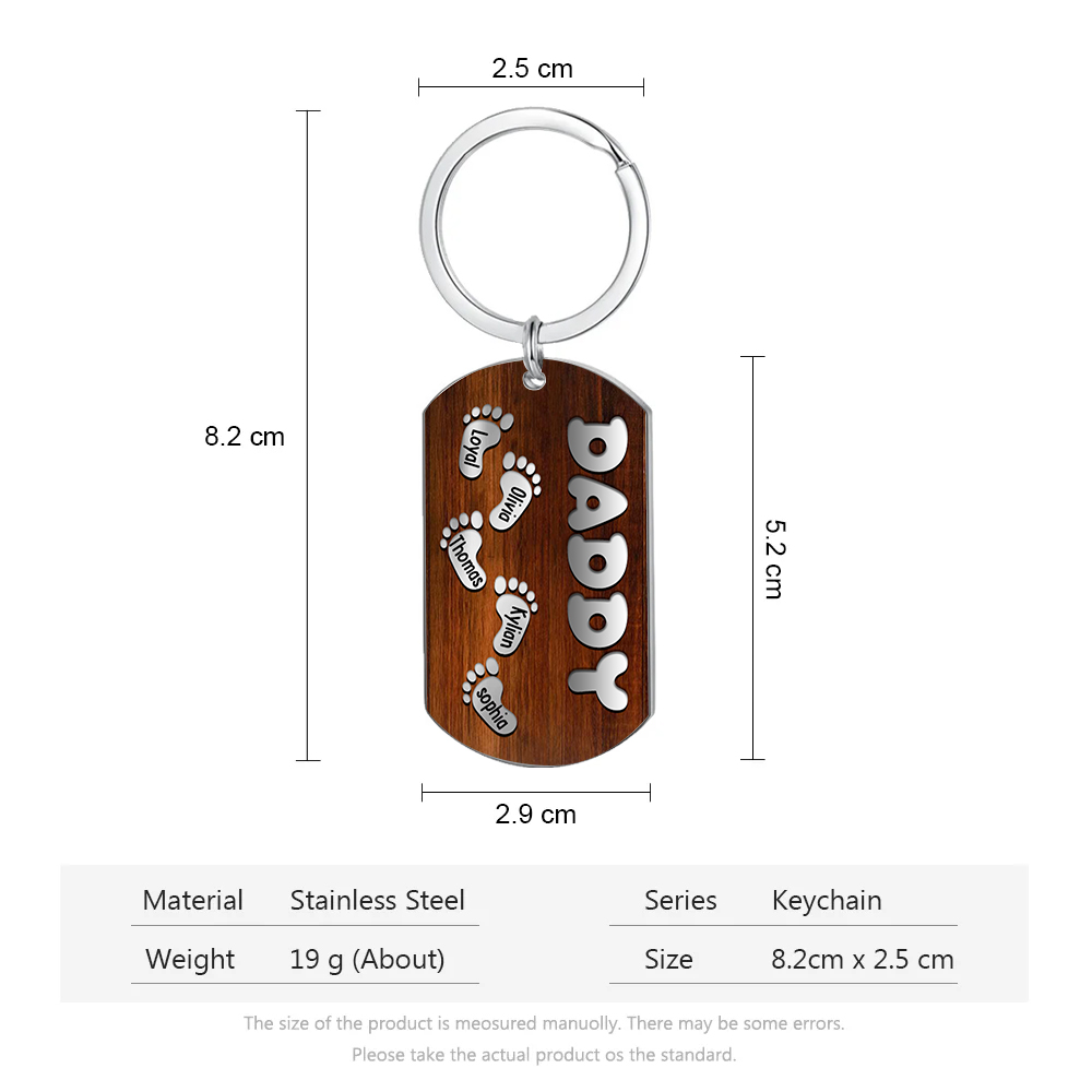 5 Names - Personalized Custom Footprint Pattern Keychain Custom Name and Text Gift for Dad