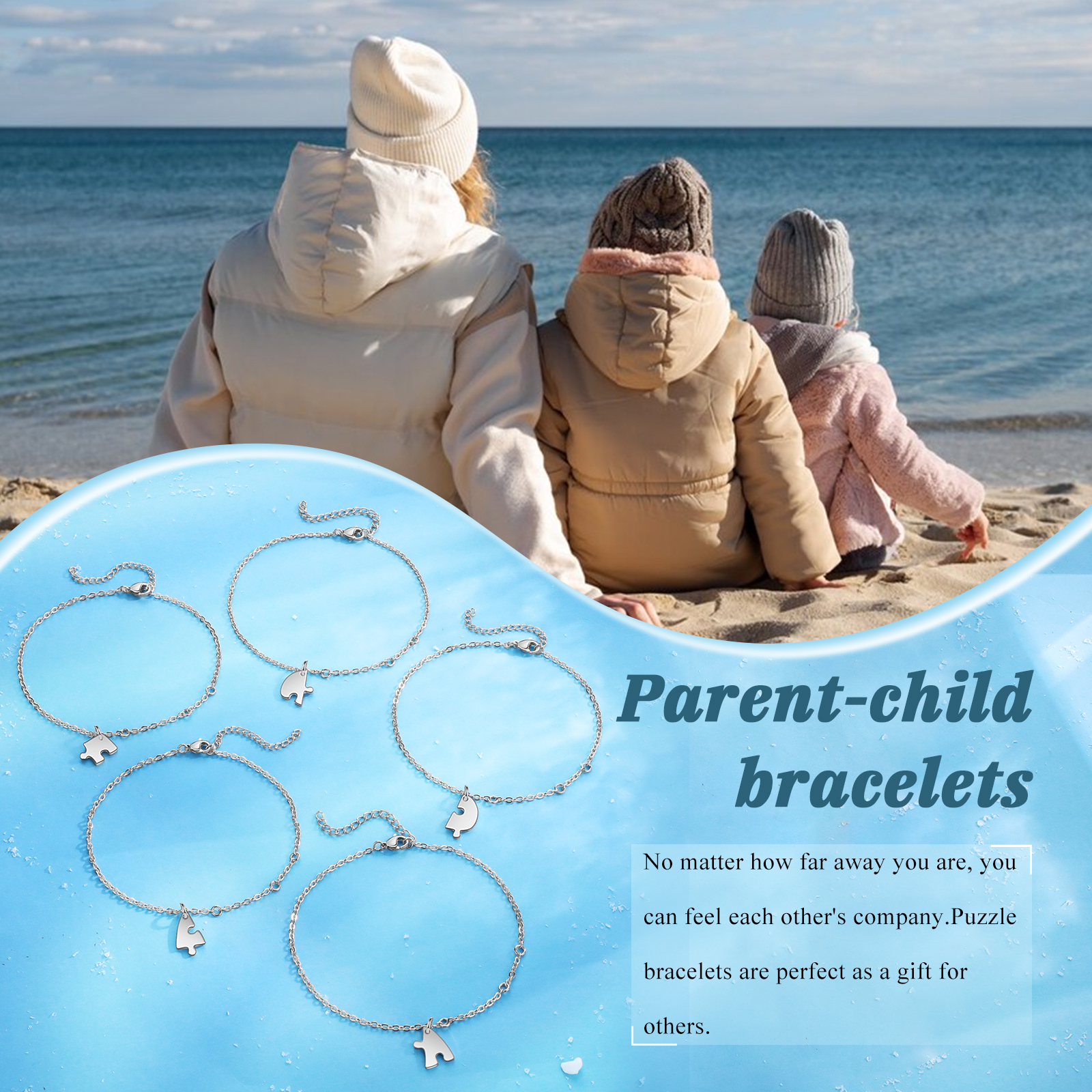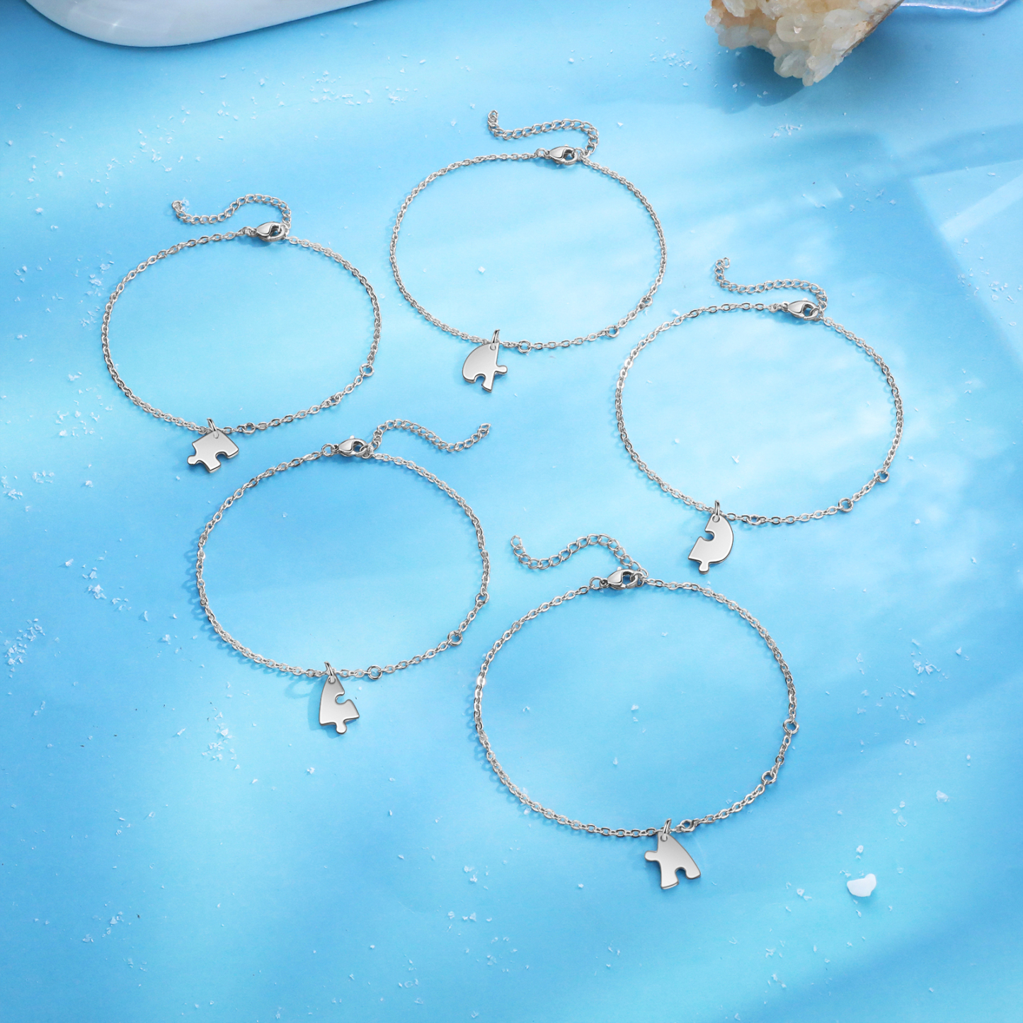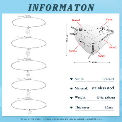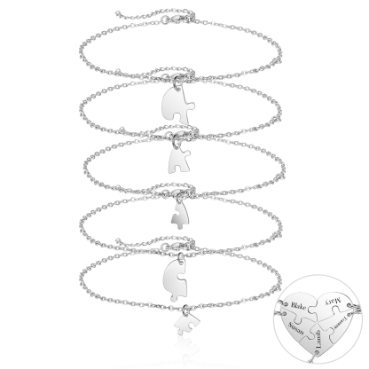 5 Names - Personalized Custom Name Puzzle Bracelet Stainless Steel Love Bracelet Set for Family