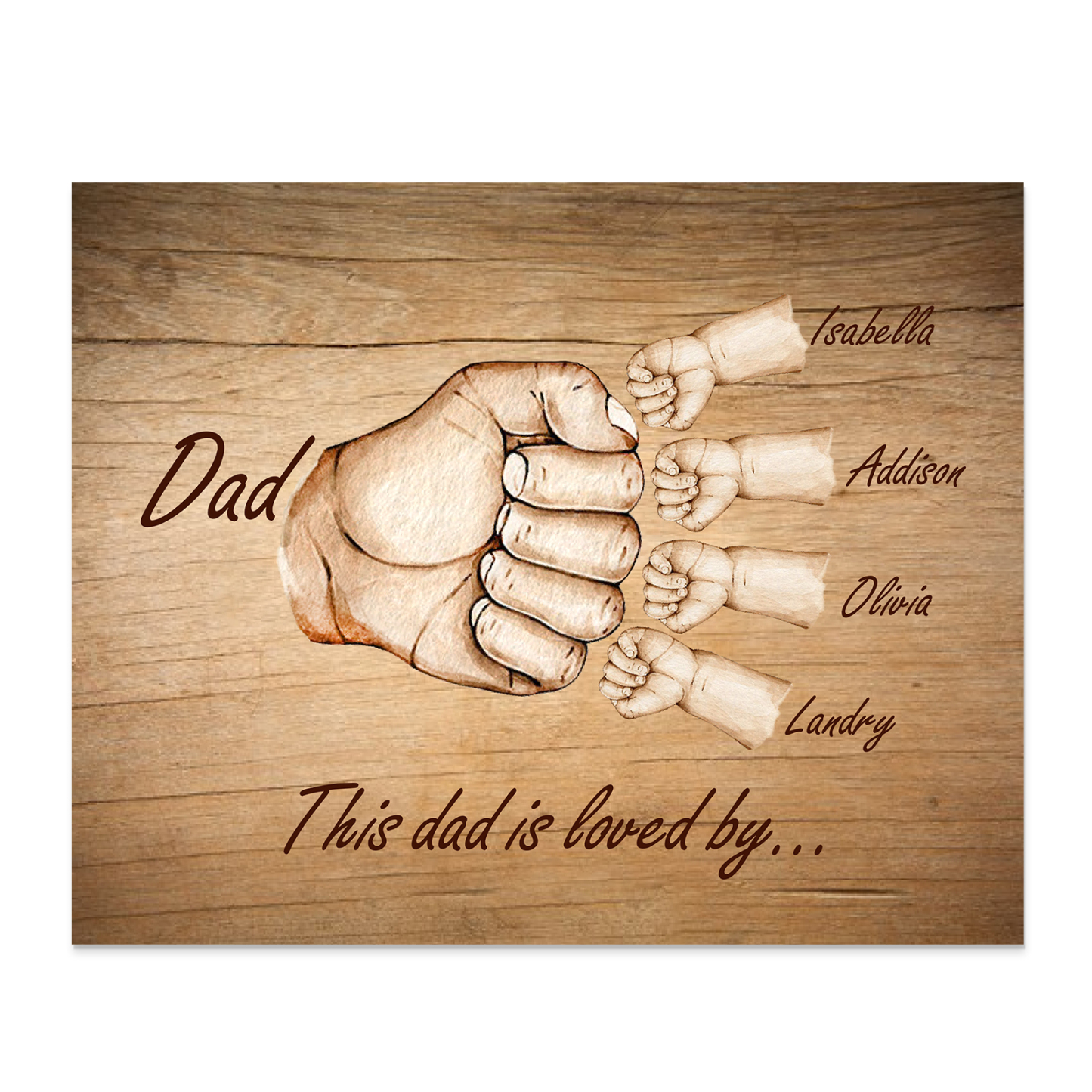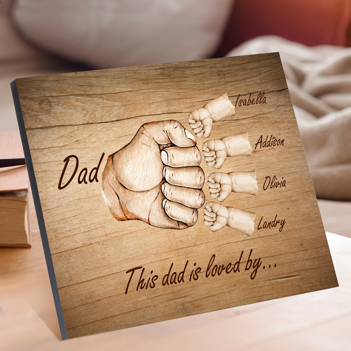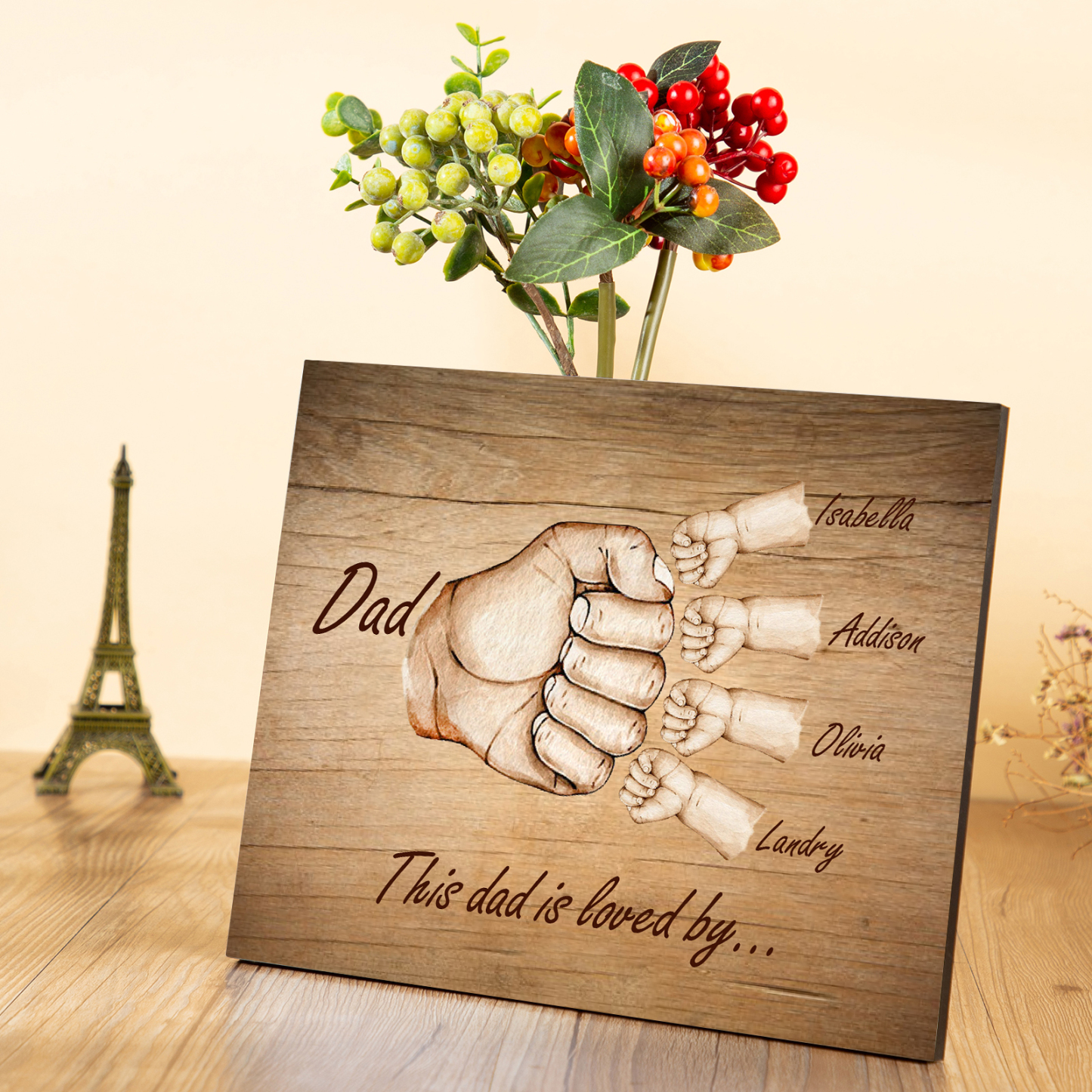 5 Names-Personalized Dad Family Fist Bump Frame Wooden Ornament Custom Text Plaque Home Decoration for Father
