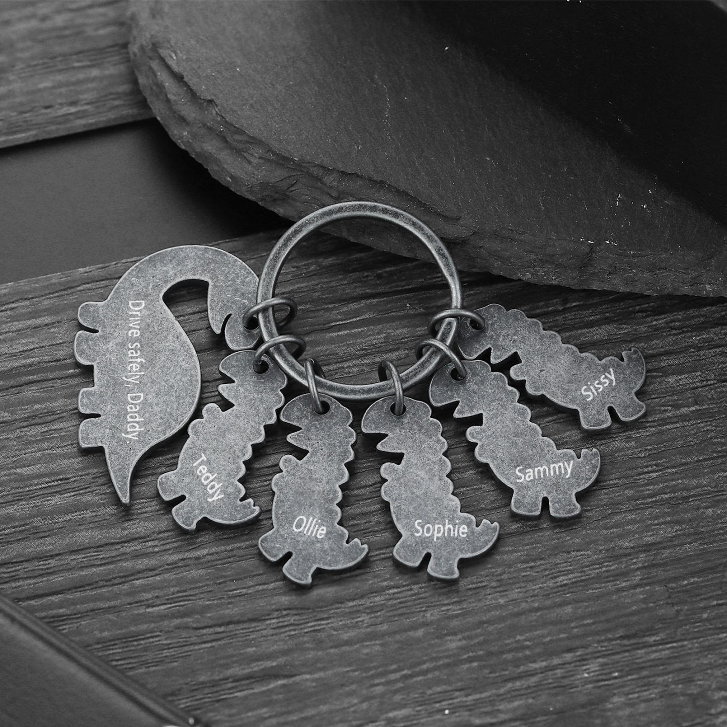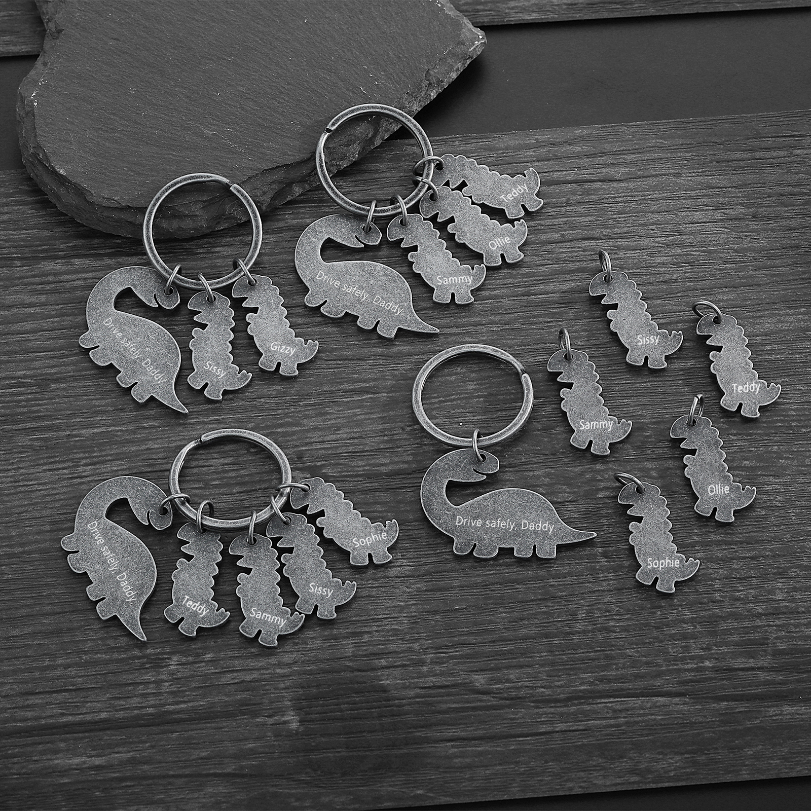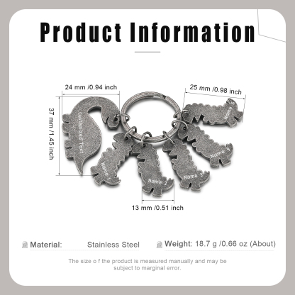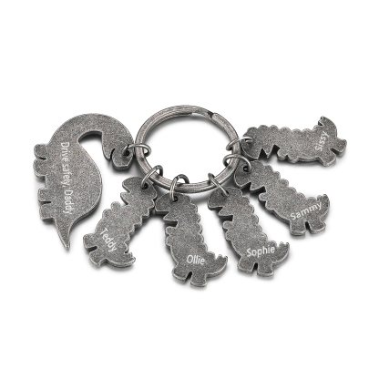 5 Names-Personalized Dinosaur Kids Charms Keychain Gift Set-Custom Names And Text Special Keychain Gift For Grandpa/Father