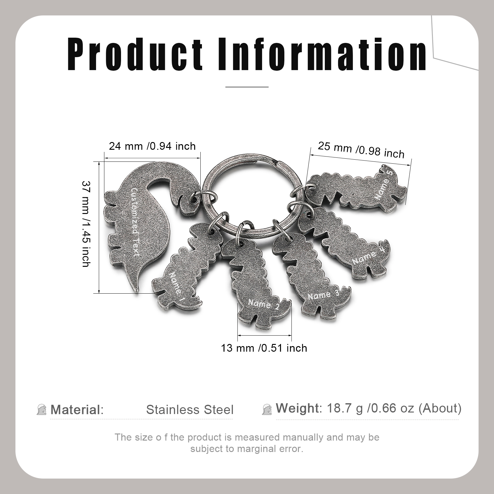 Our Stainless Steel is protected with a tarnish resistance to help it last for years without tarnishing. High-polished finish, hypoallergenic, won't rust, durable, and comfortable to wear. You can customize 2-5 names and text, and customize a keychain exclusively for grandpa and father