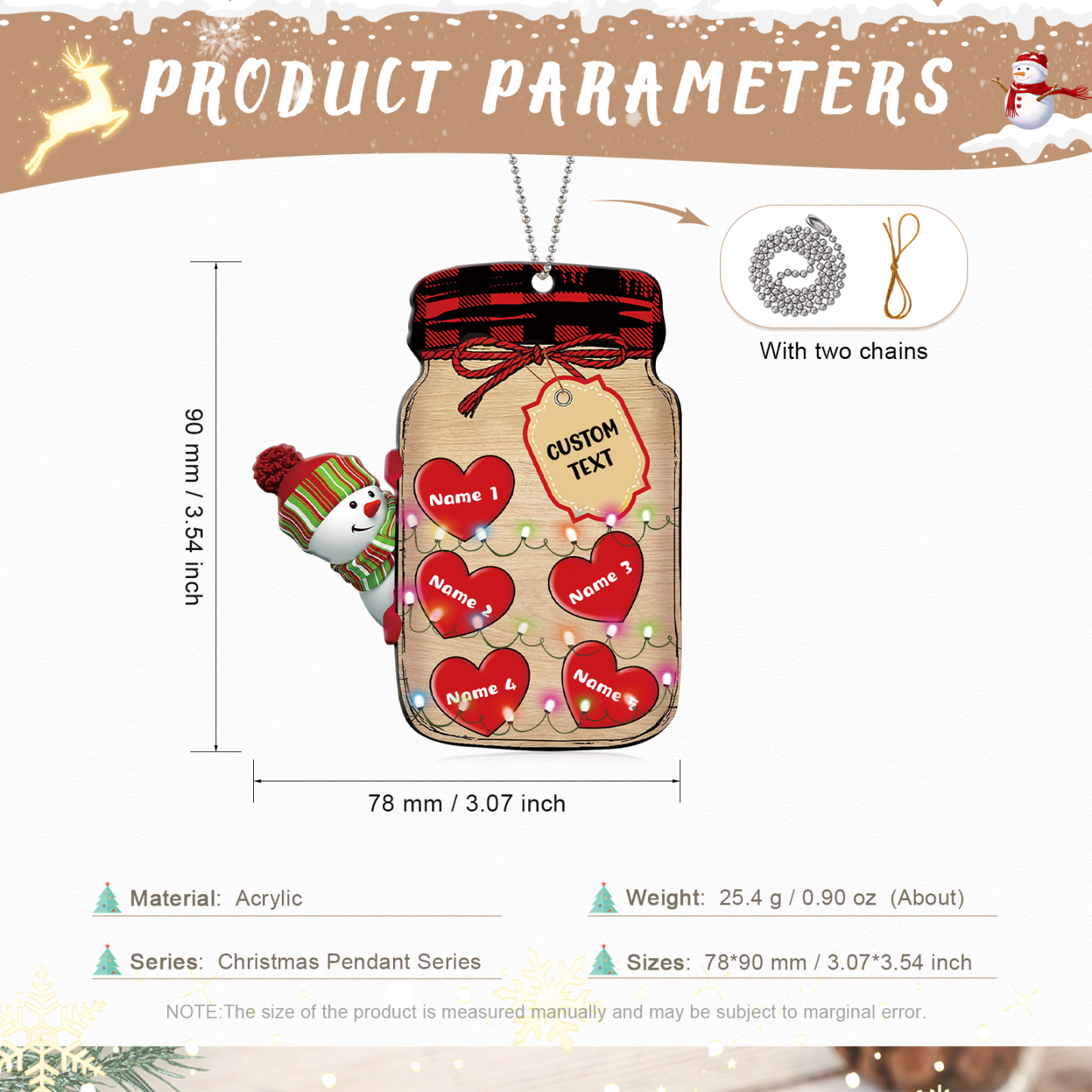 🎁Made of acrylic material, 2-8 names can be customized. The names of each family member are written on the hearts in the bottle, the personalized text can be written on it. This is a great Christmas gift for the family.