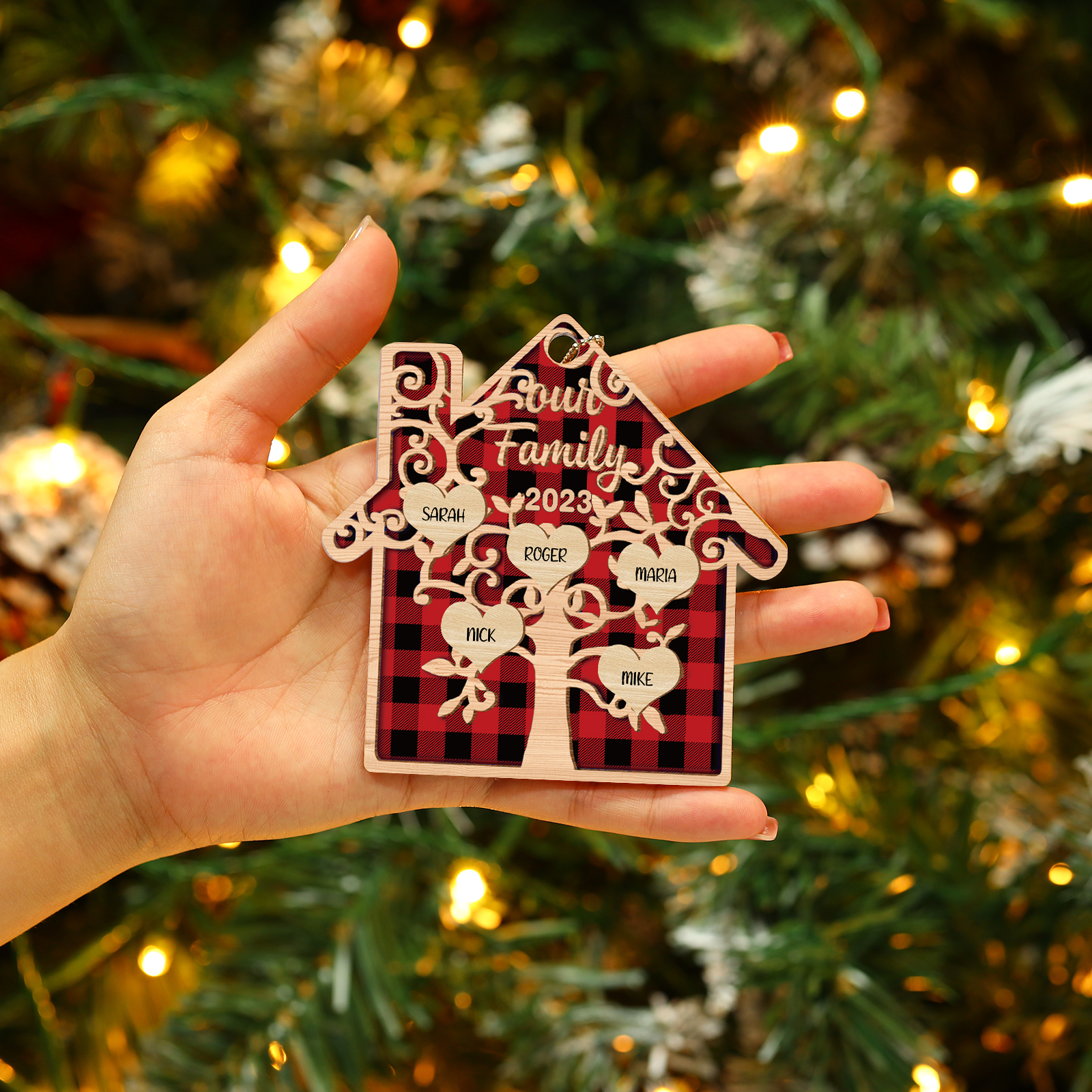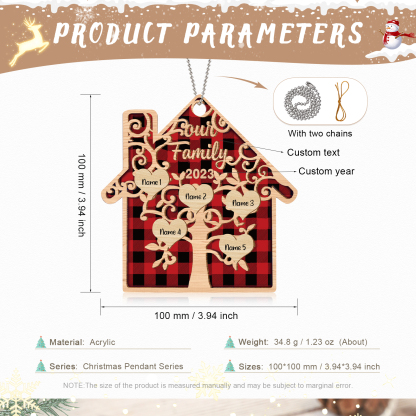 5 Names-Personalized Family Acrylic Christmas Xmas Tree Decoration Ornament-Custom 5 Names And Text Hanging Ornament Gifts For Family