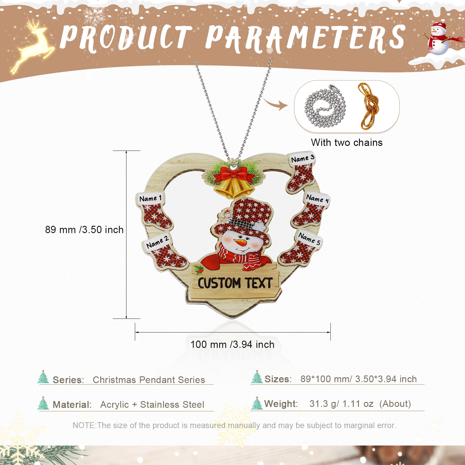 🎁Made of acrylic material, 2-8 names can be customized, The names of each family member are written on the Christmas Shocks, and the personalized text can be written under the snow man. This is a great Christmas gift for the family.