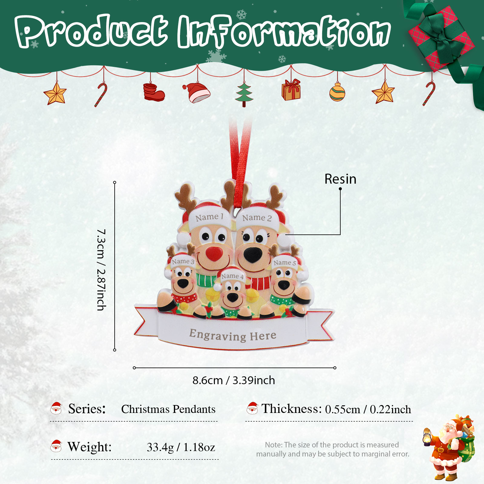 🎁Made of Resin material, 3-6 names and text can be customized, The names of each family member are written on the hat, and a year or text can be written on the banner. this is a great Christmas gift for the family.