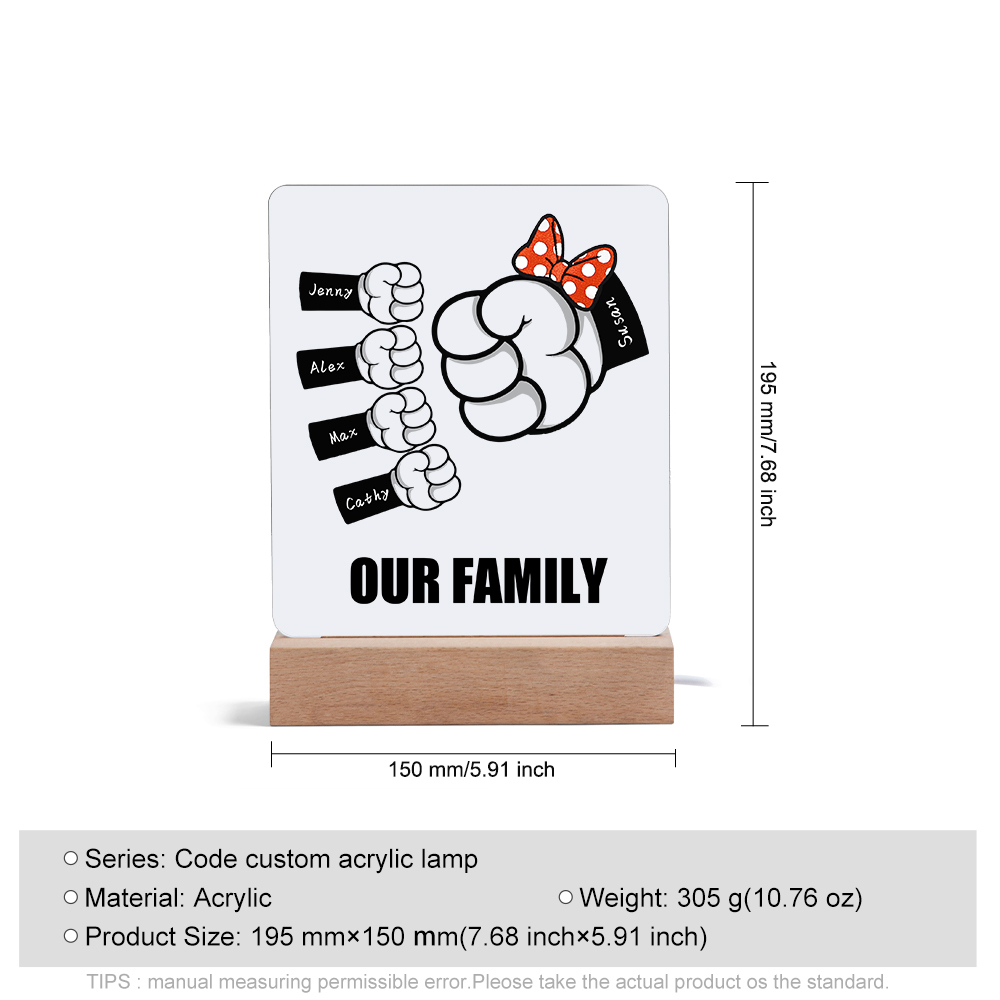 5 Names-Personalized Family Fist Bump Acrylic Night Light, Custom Text Lamp Gift For Family