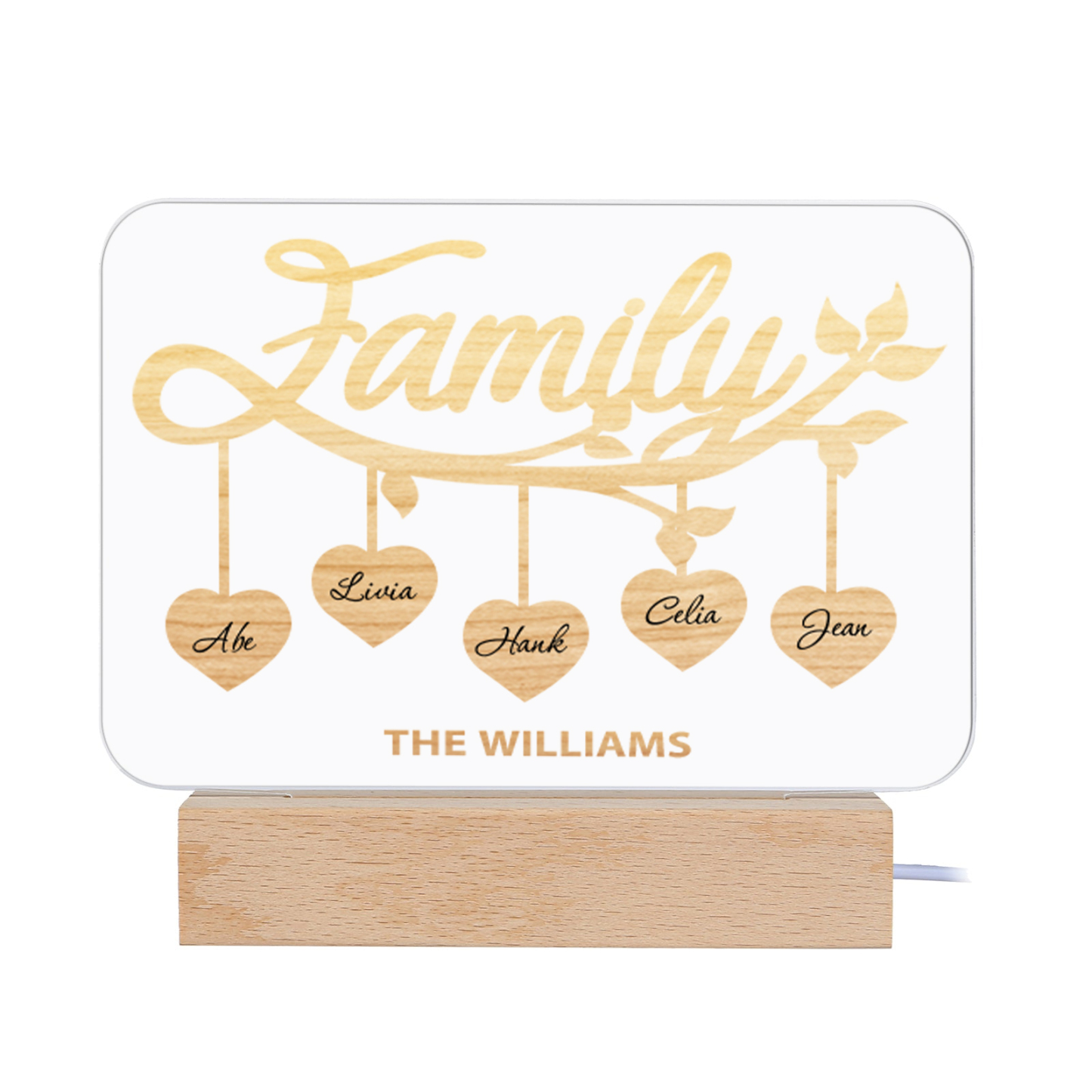 5 Names-Personalized Family Night Light Custom Text LED Lamp Mother's Day Gift For Family