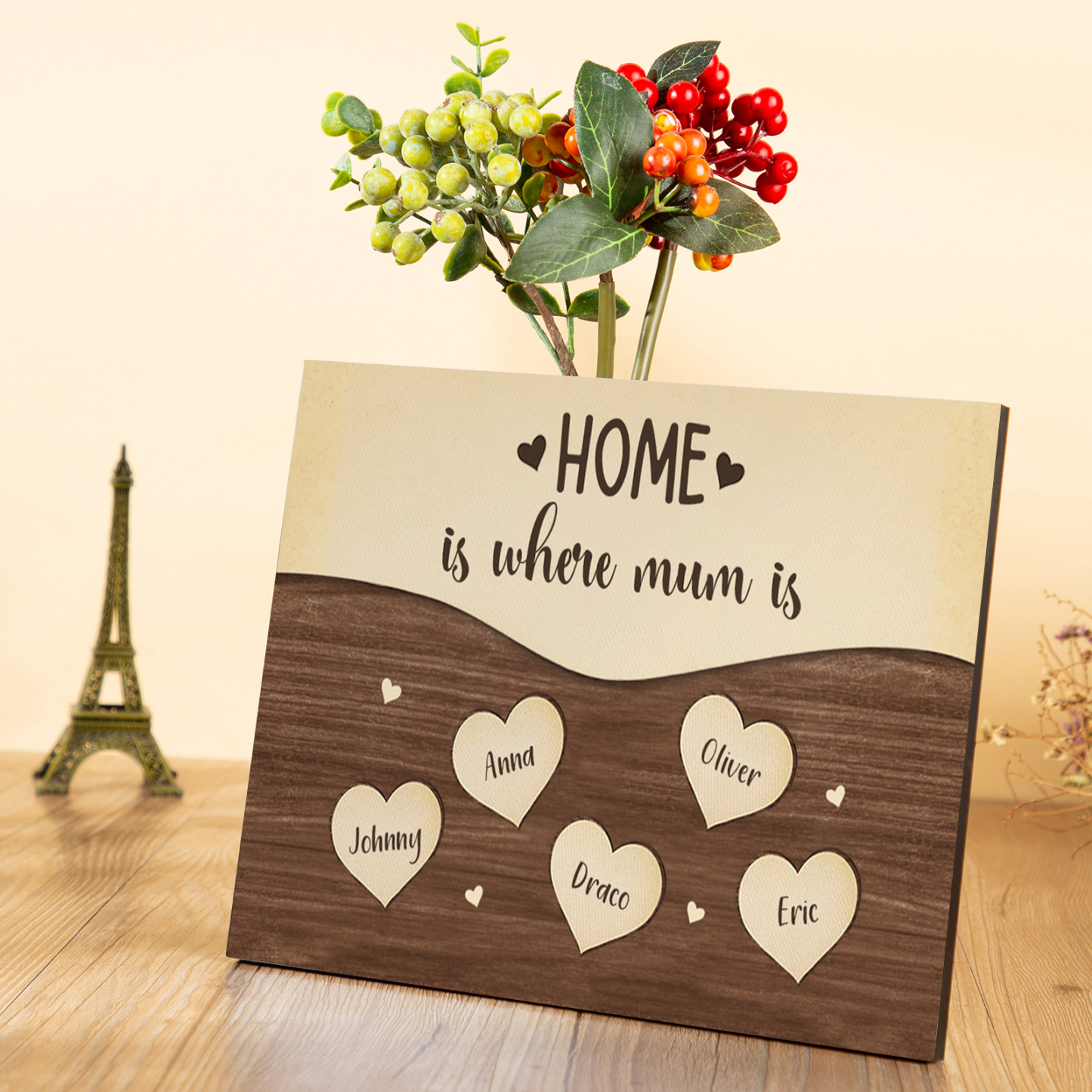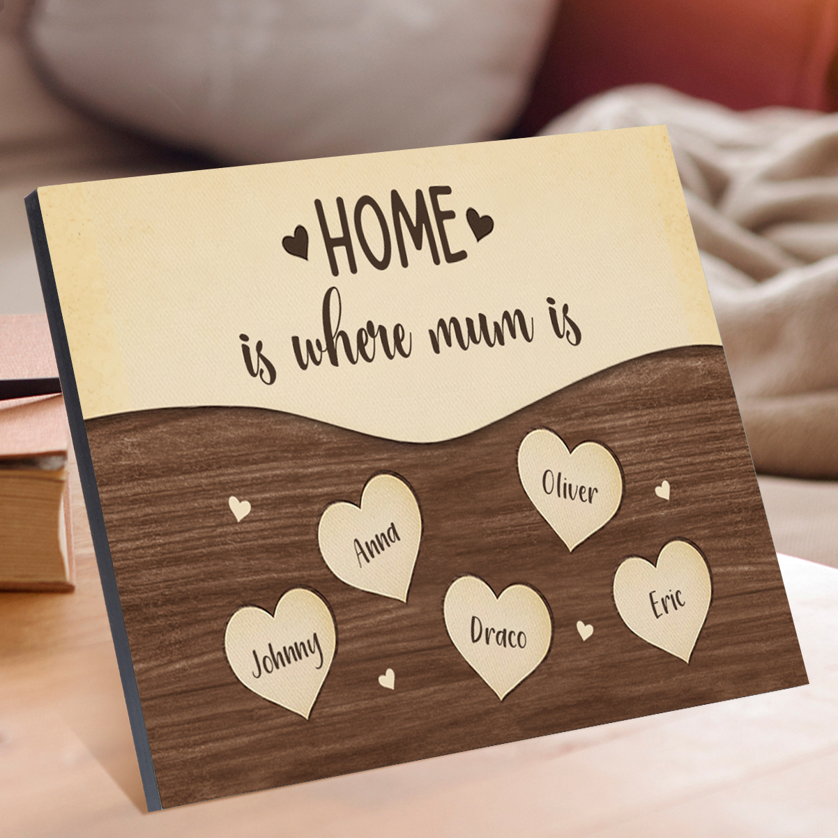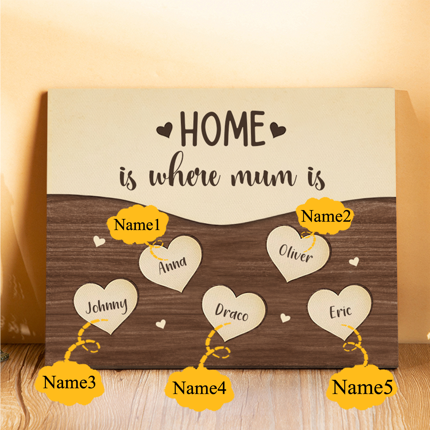 5 Names-Personalized Family Frame Wooden Ornament Home is where mum is Home Decoration for Family