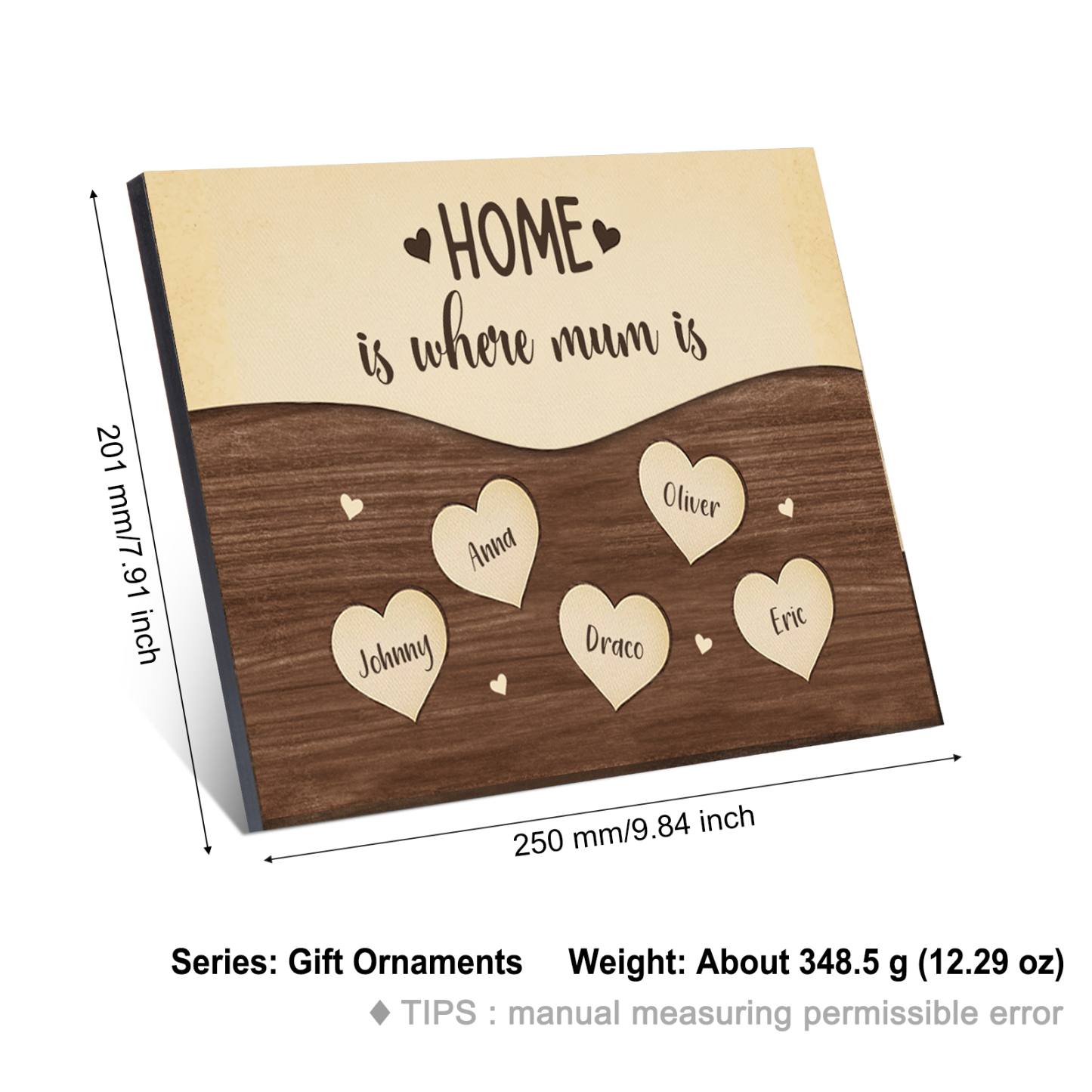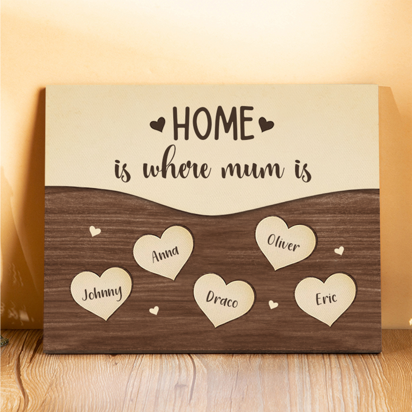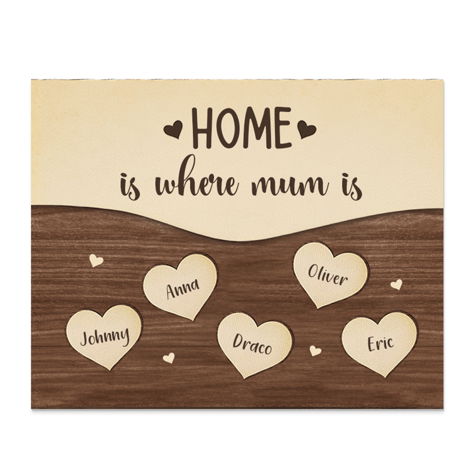 5 Names-Personalized Family Frame Wooden Ornament Home is where mum is Home Decoration for Family