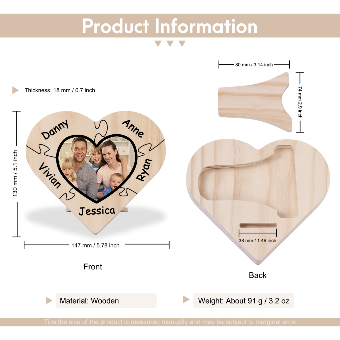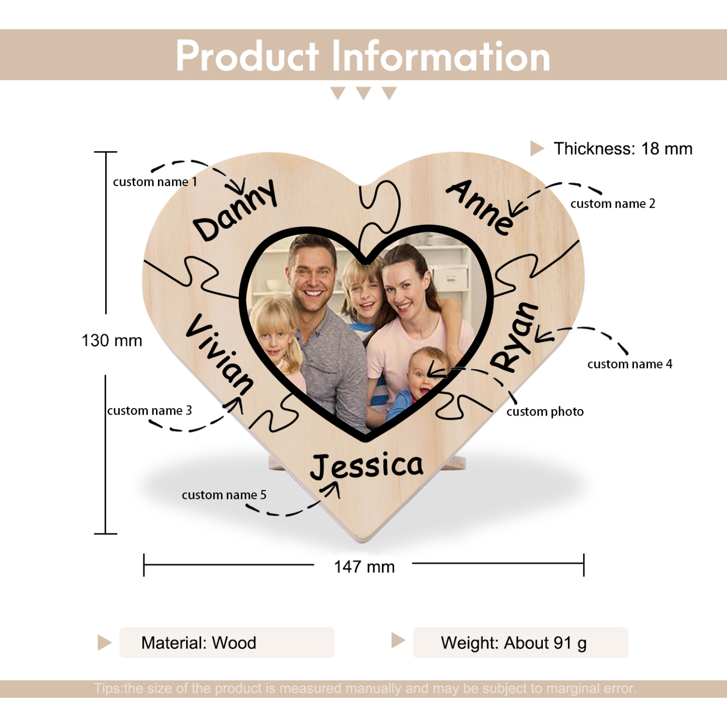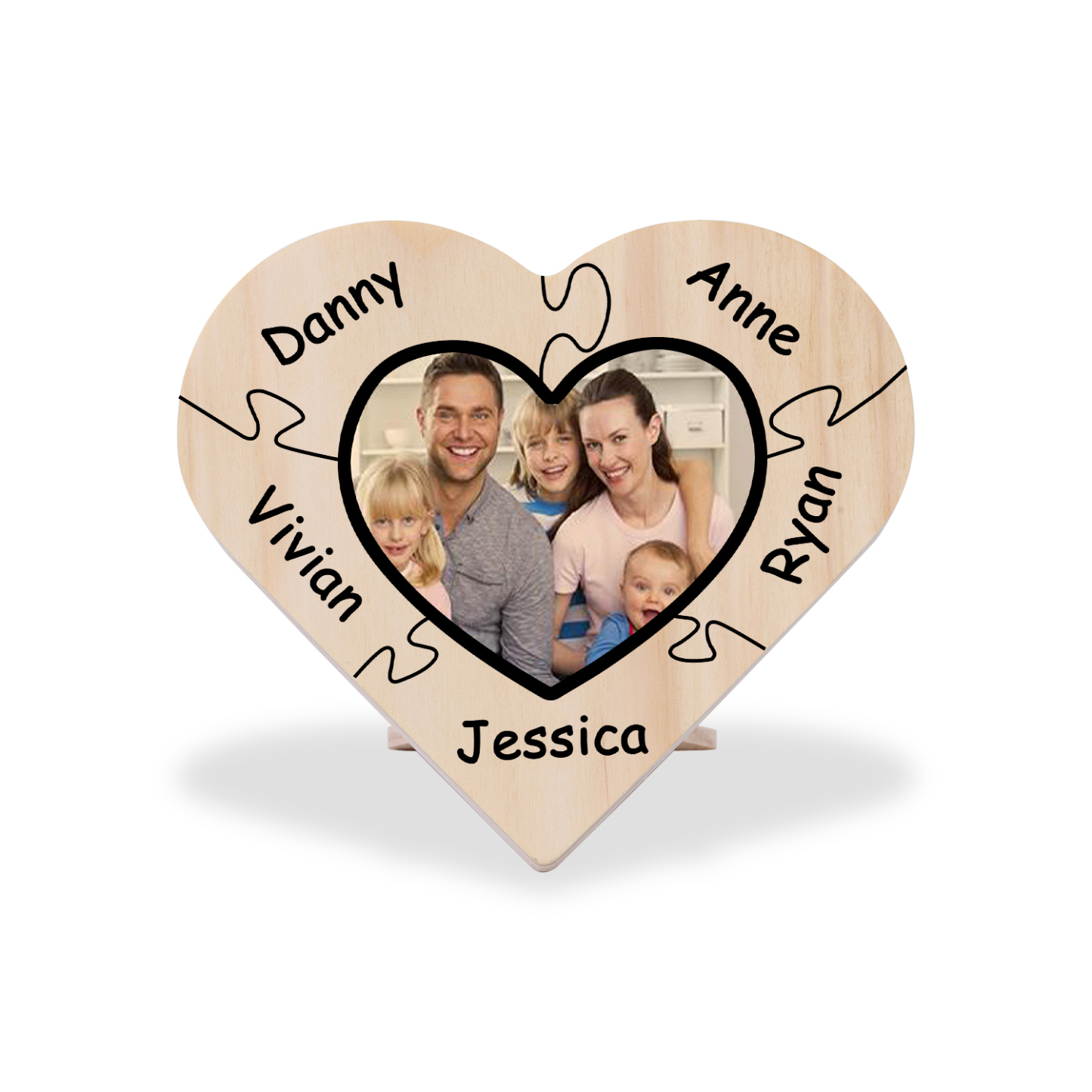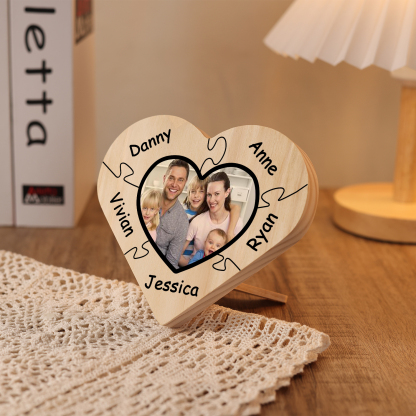 5 Names-Personalized Family Heart Wooden Ornament Gift-Customized Gift Ornament Desktop Decoration Picture Frame For Family