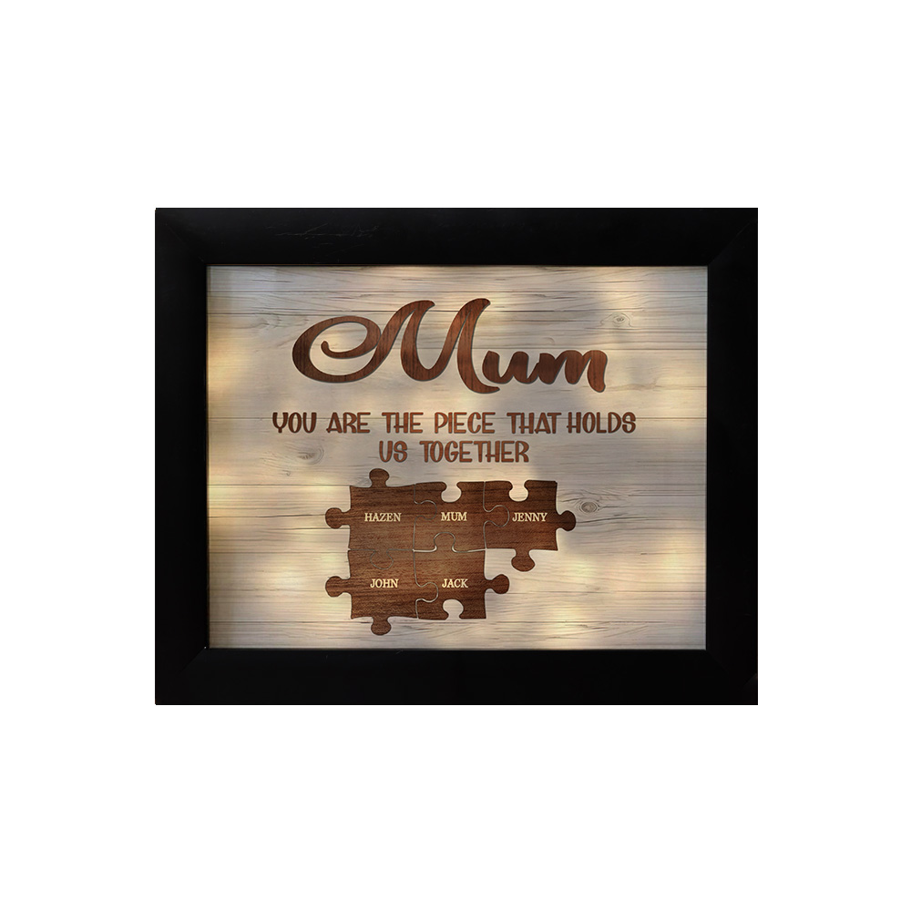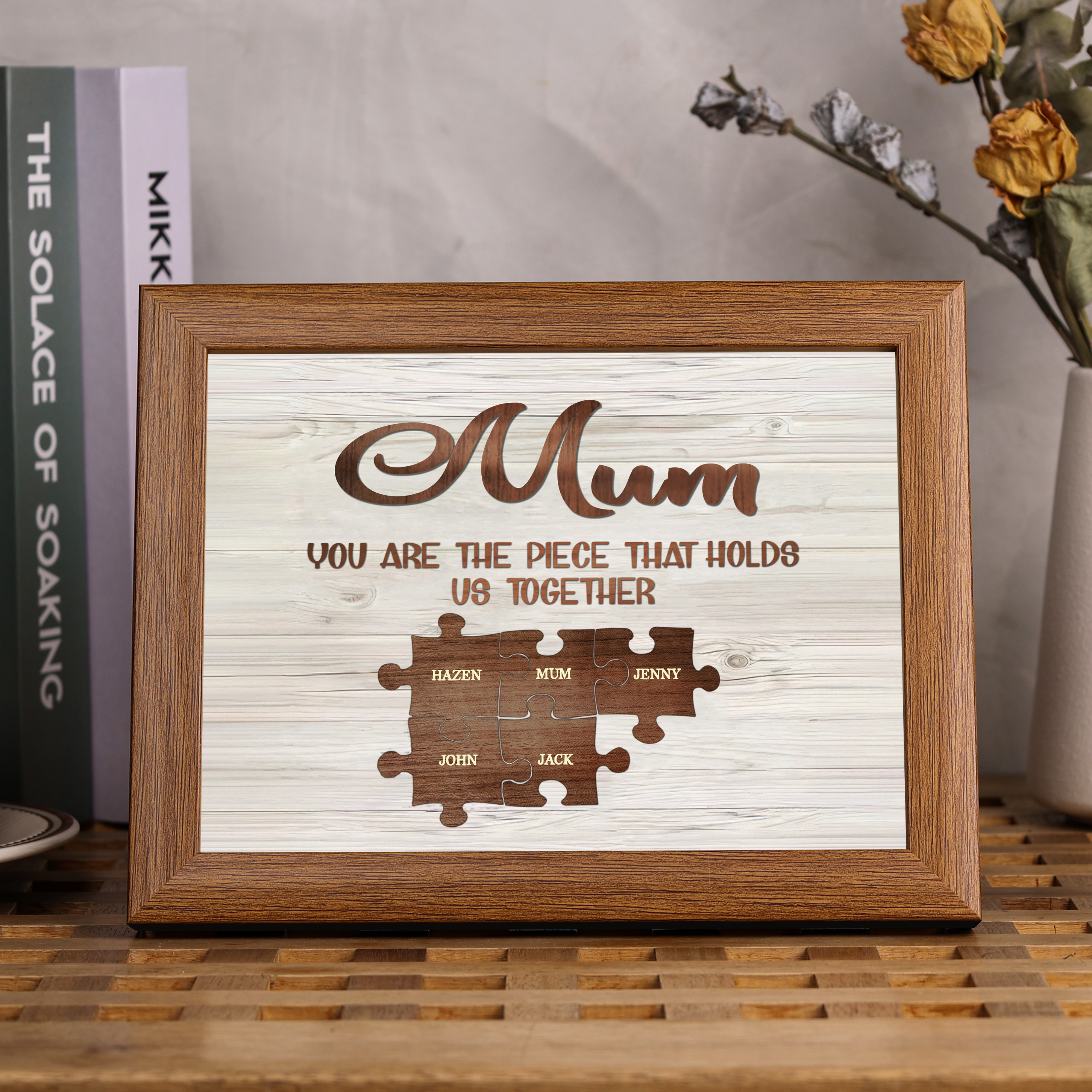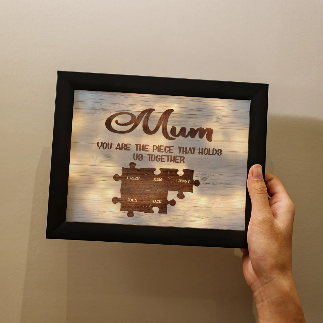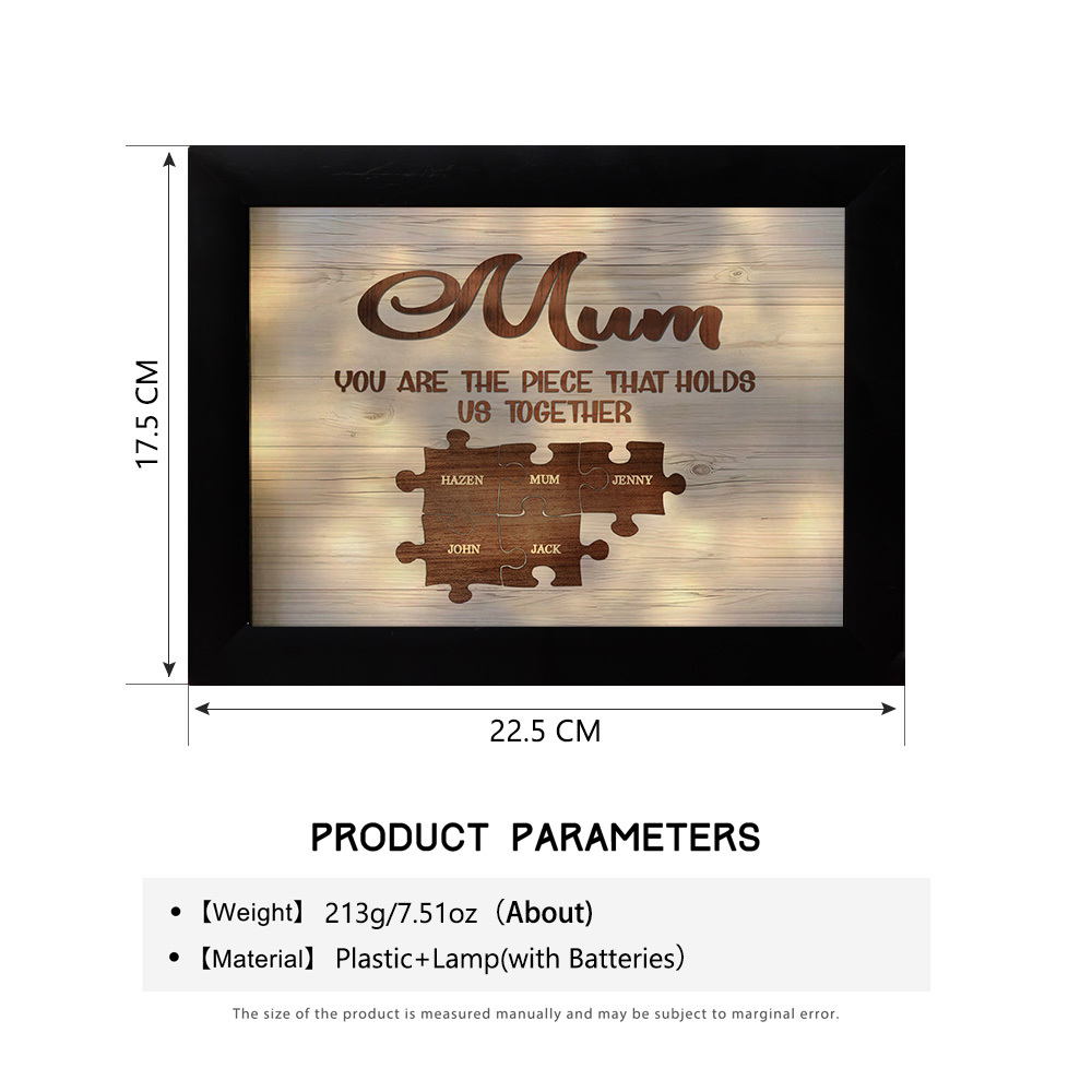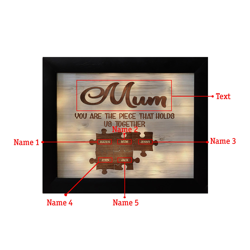 5 Names-Personalized Family Puzzle Frame You Are The Piece That Holds Us Together Custom 5 Names And Text LED Night Light