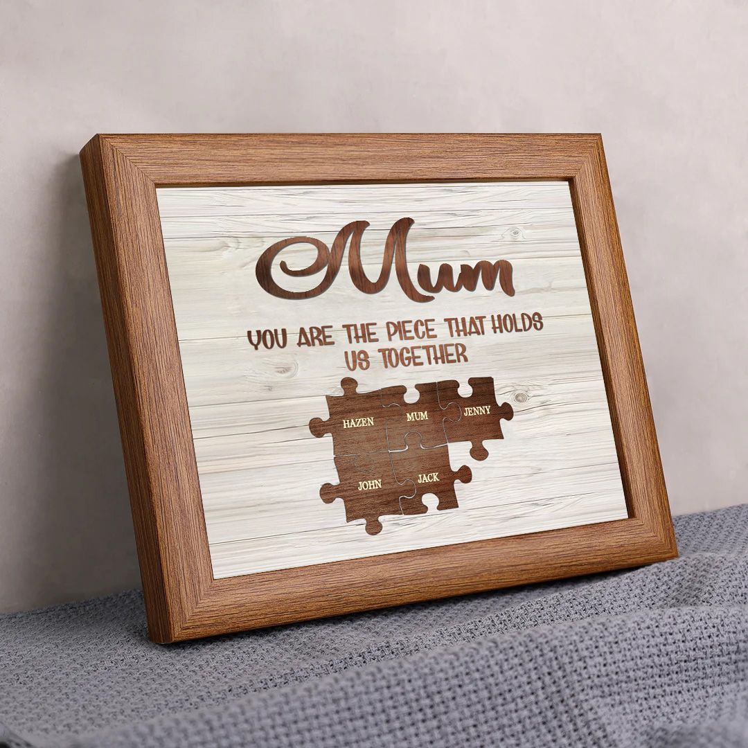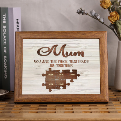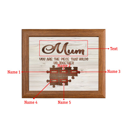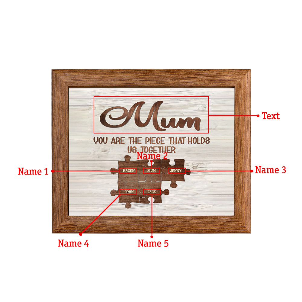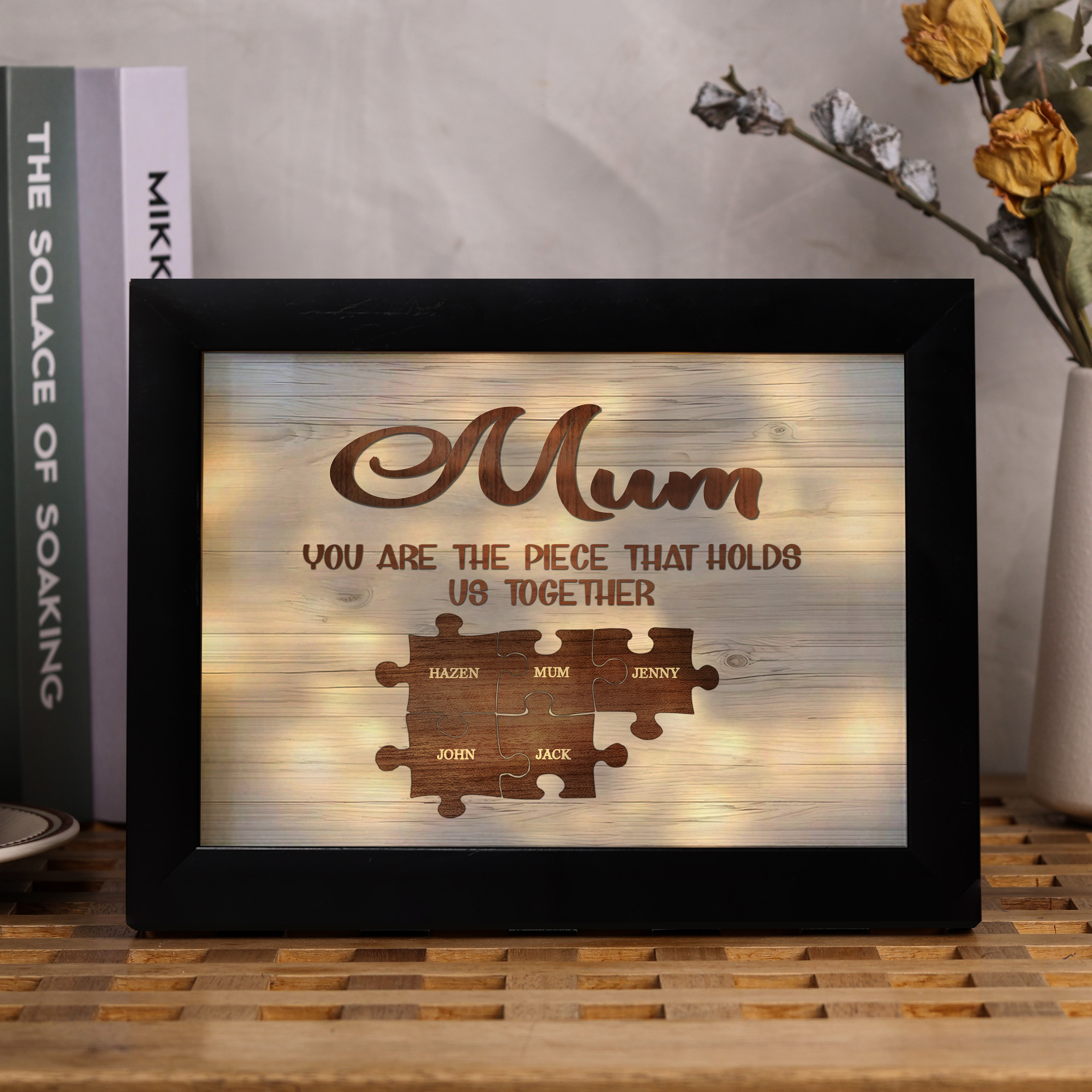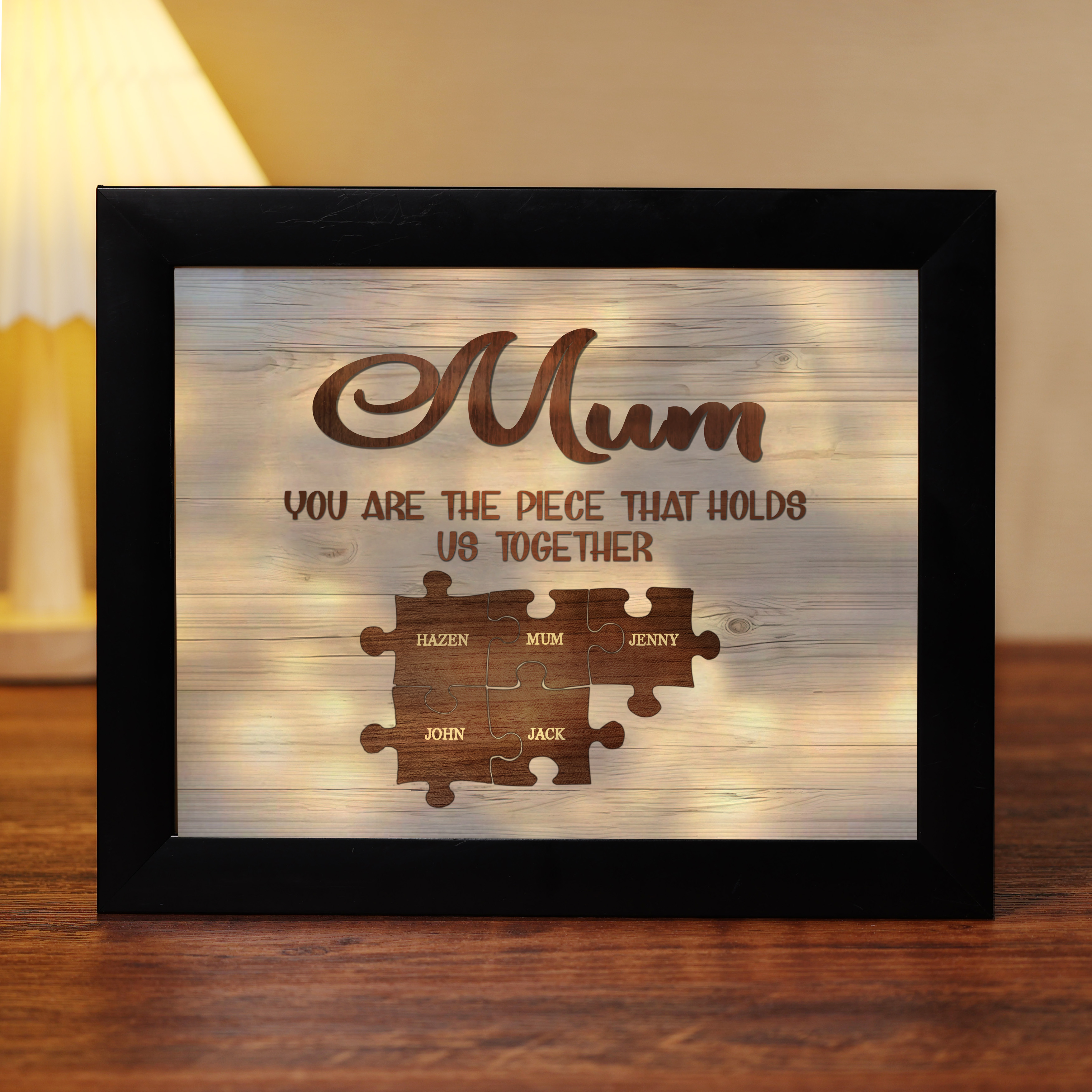 5 Names-Personalized Family Puzzle Frame You Are The Piece That Holds Us Together Custom 5 Names And Text LED Night Light