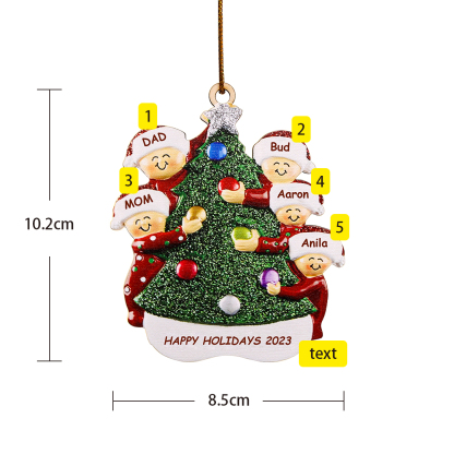 5 Names-Personalized Family Wooden Christmas Xmas Tree Decoration Ornament-Custom 5 Names And Text Hanging Ornament Gifts For Family