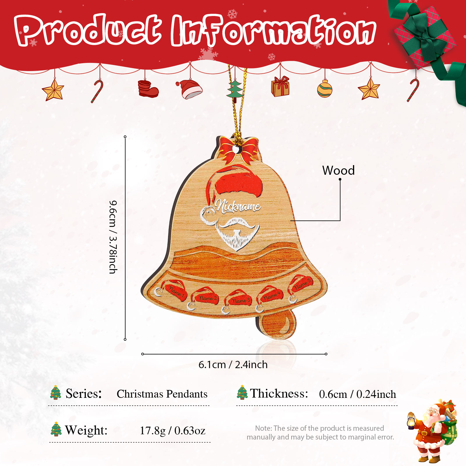 🎁Made of wooden material, 2-6 names can be customized, The names of each family member are written on the bell. This is a great Christmas gift for the family.