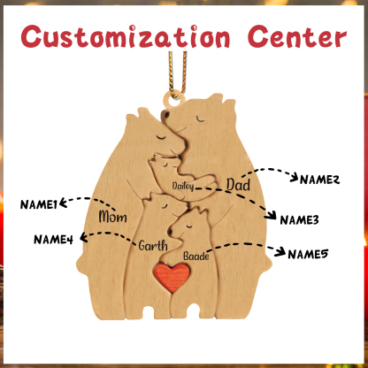 5 Names-Personalized family Wooden Puzzle Ornament-Custom 5 Names Bear Hug Ornament Gifts For Family-Special Home Decoration