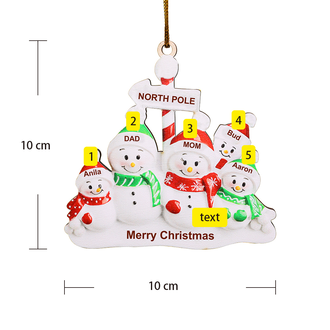 5 Names-Personalized Family Wooden Snowman Christmas Xmas Tree Decoration Ornament-Custom 5 Names And Text Hanging Ornament Gifts For Family