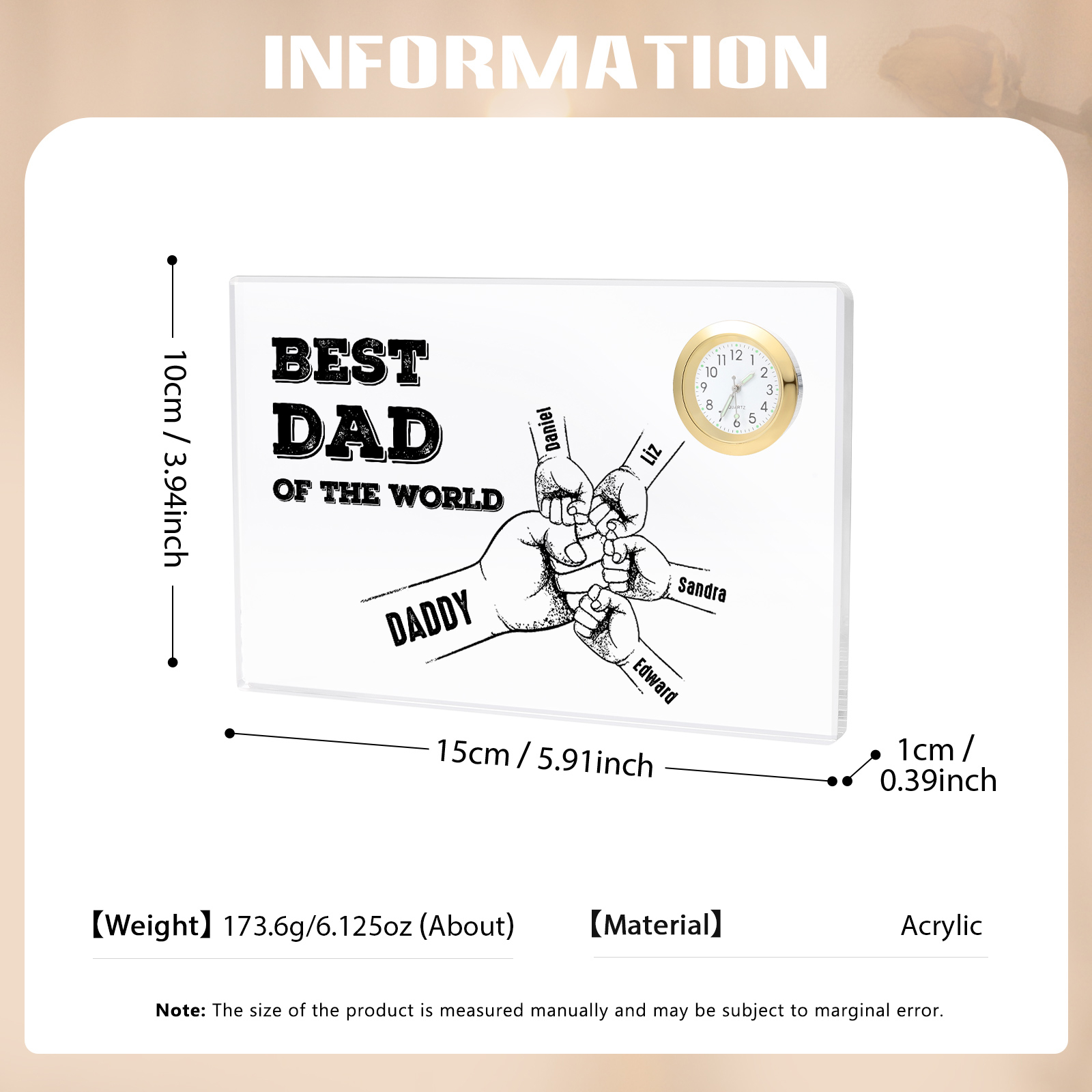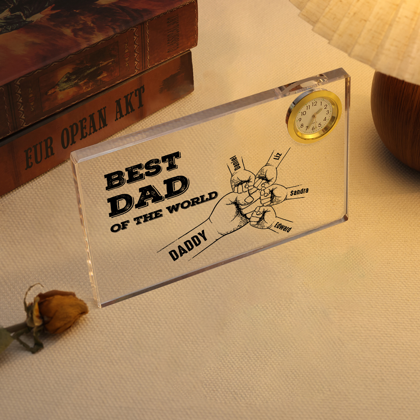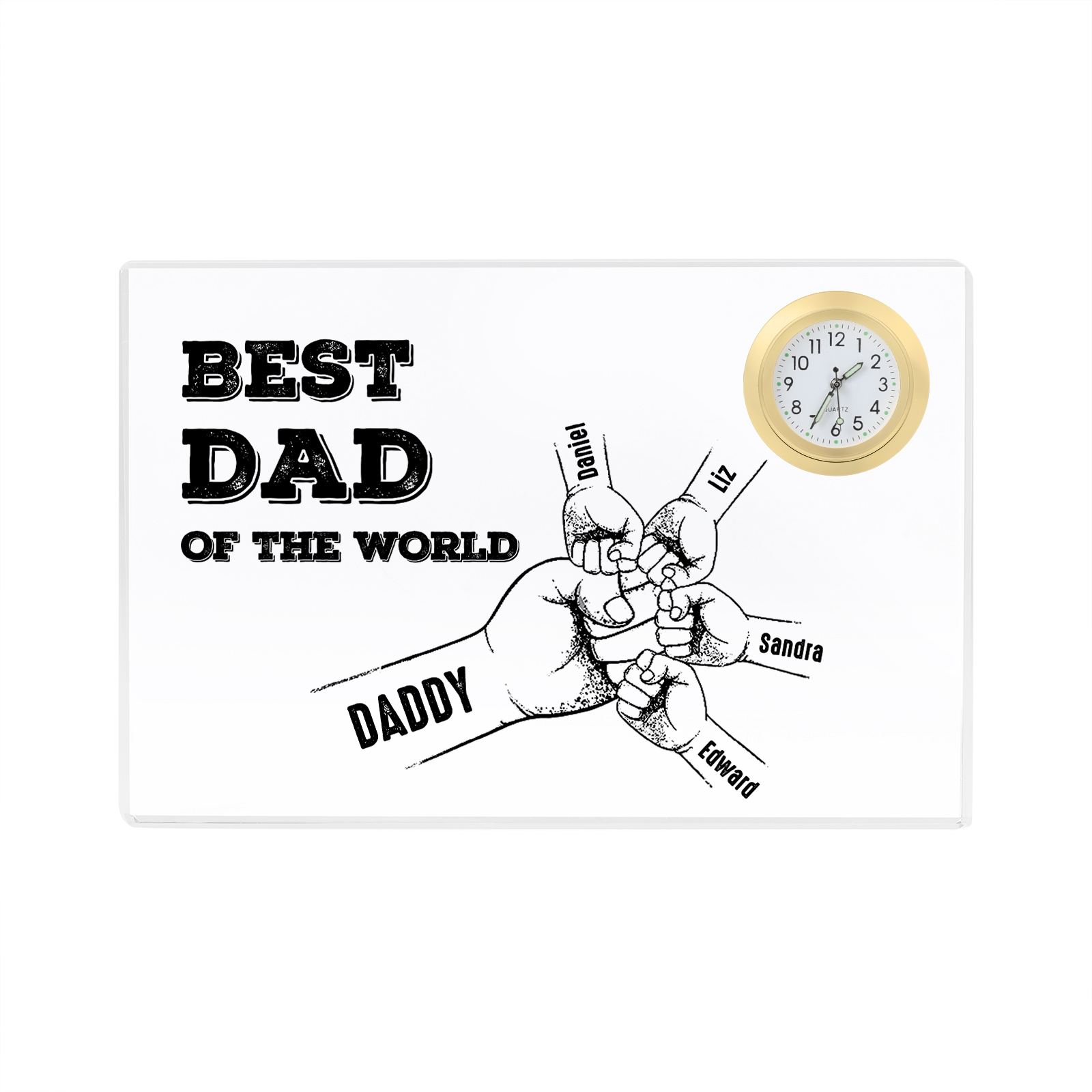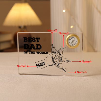 5 Names - Personalized Fist Bump Acrylic Rectangular Clock Ornament Father's Day Gift for Dad