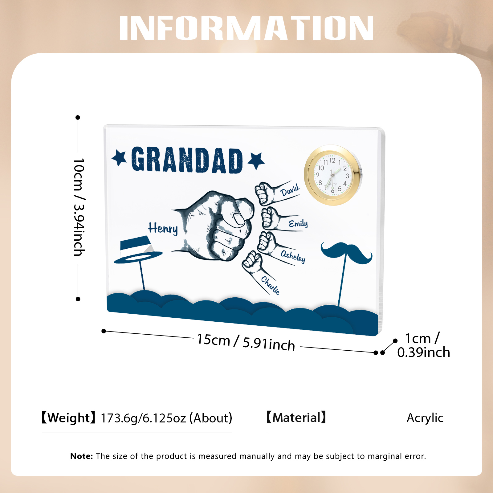 5 Names - Personalized Fist Bump Custom Name Acrylic Clock Ornament Father's Day Gift for Dad