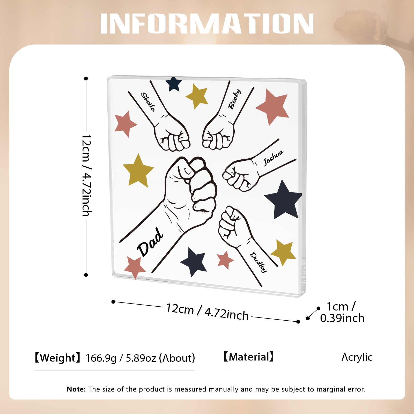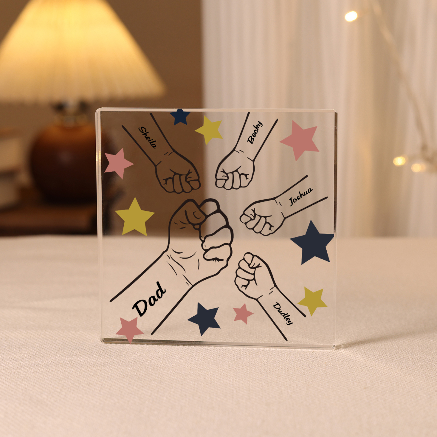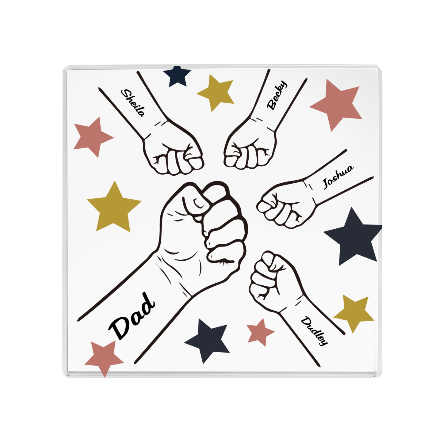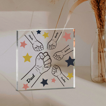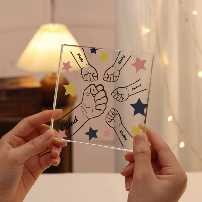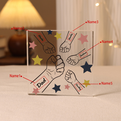 5 Names - Personalized Fist Bump Family Acrylic Keepsake Customized Name Acrylic Home Decor Gift for Dad