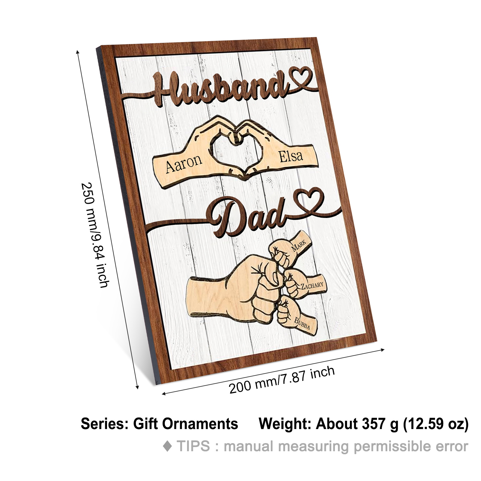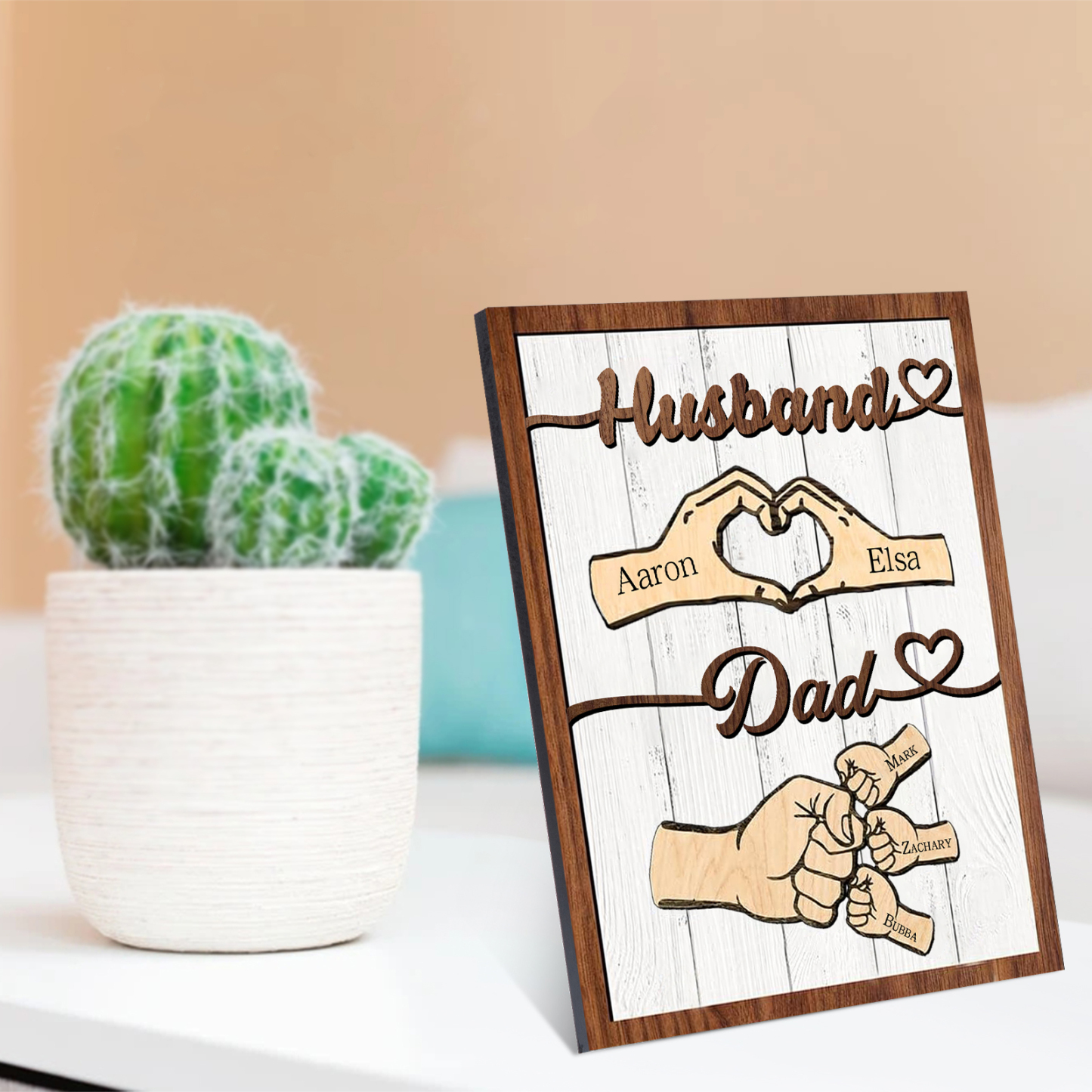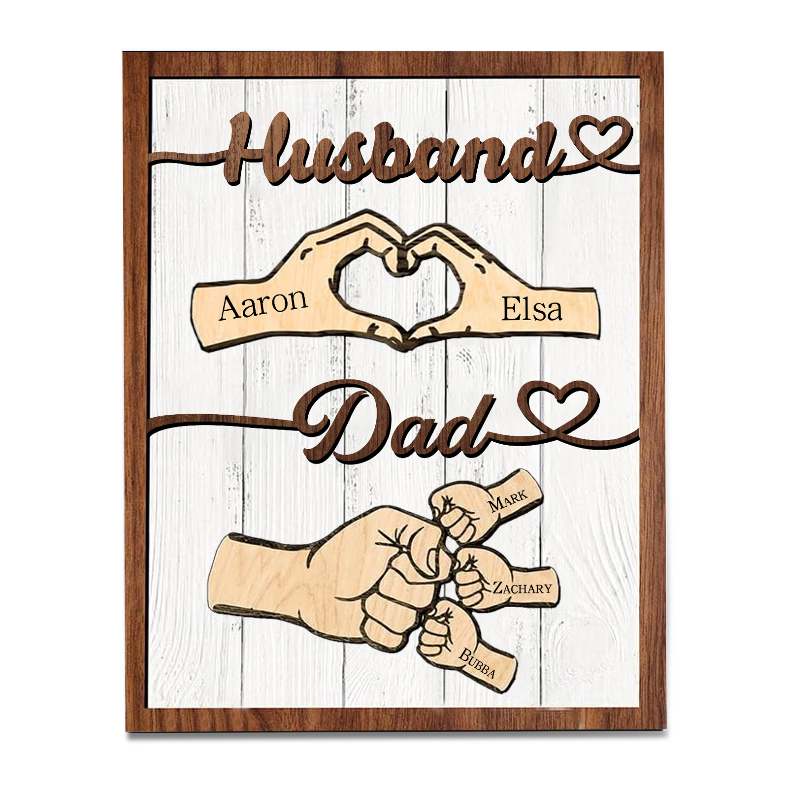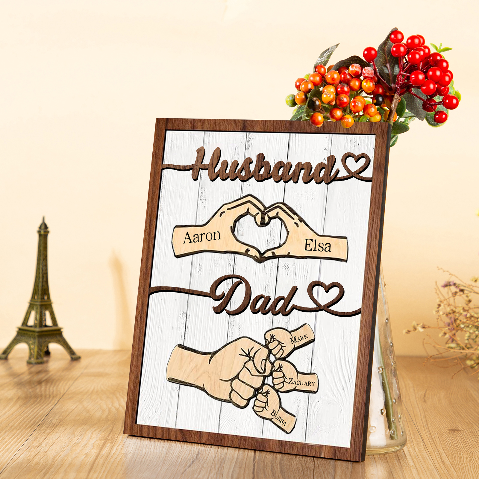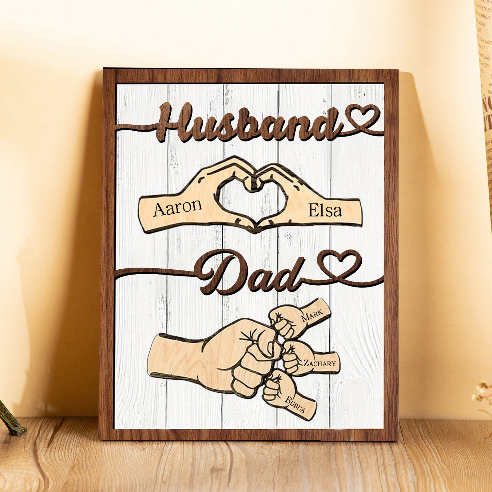 5 Names - Personalized Fist Bump Home Wooden Decor Father's Day Gift for Dad