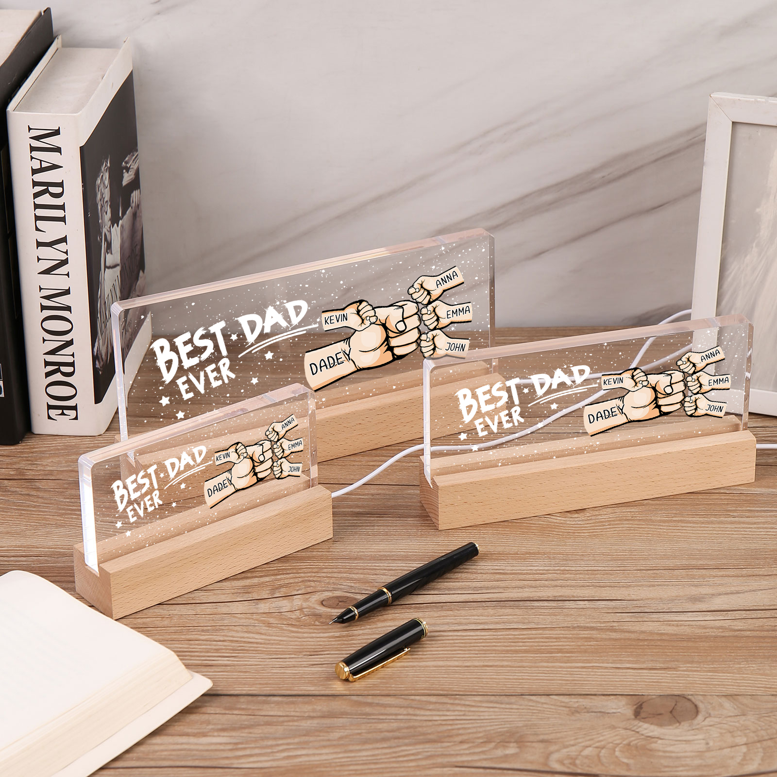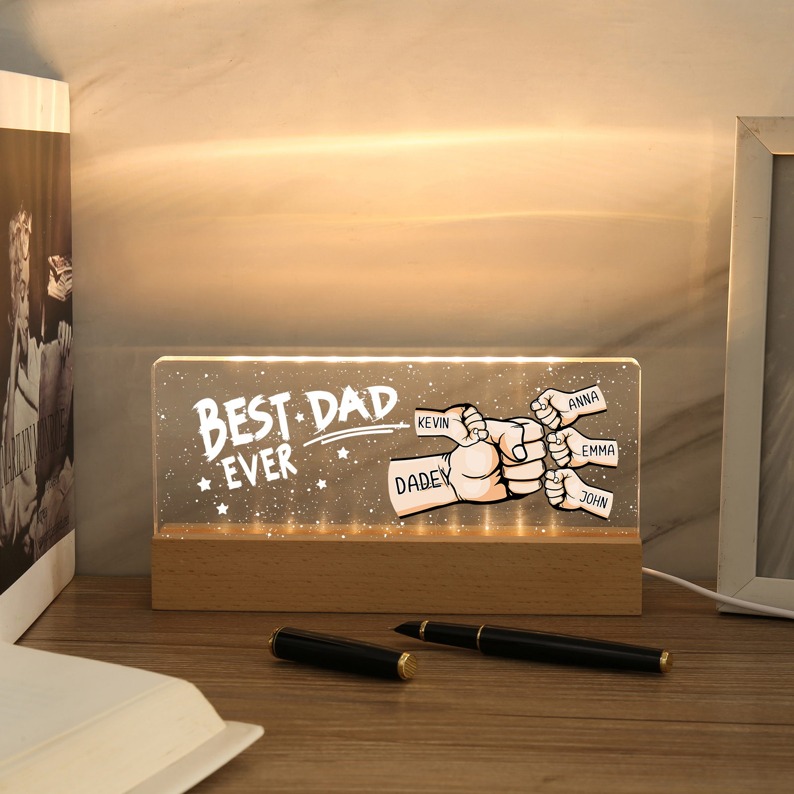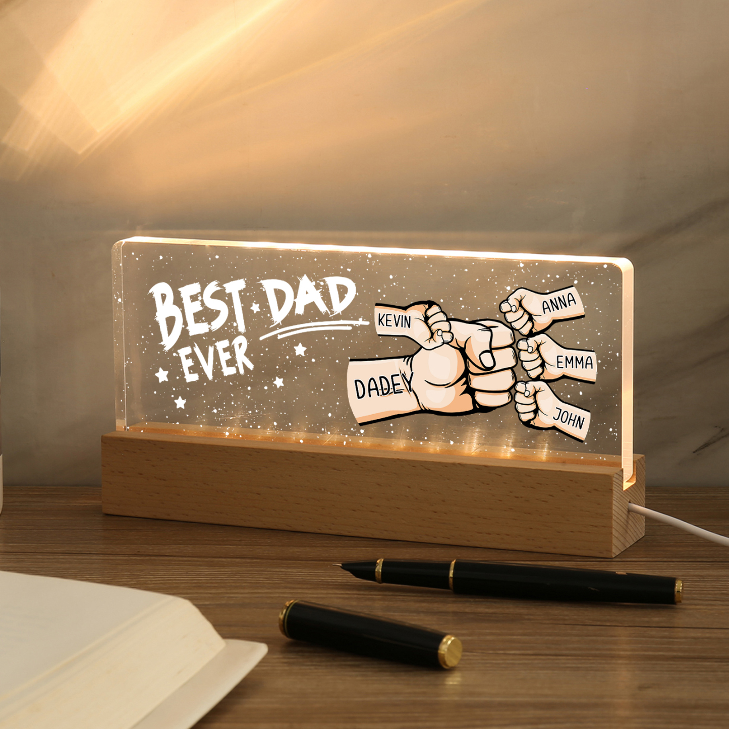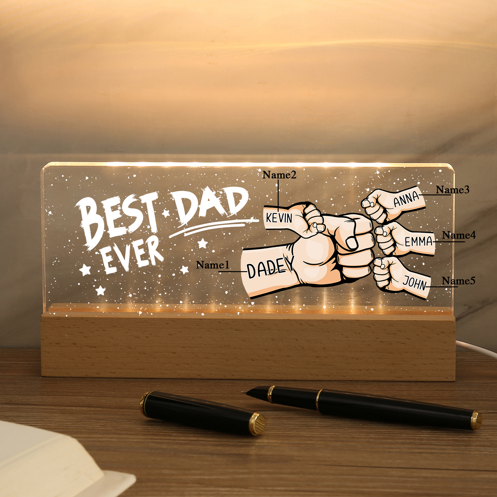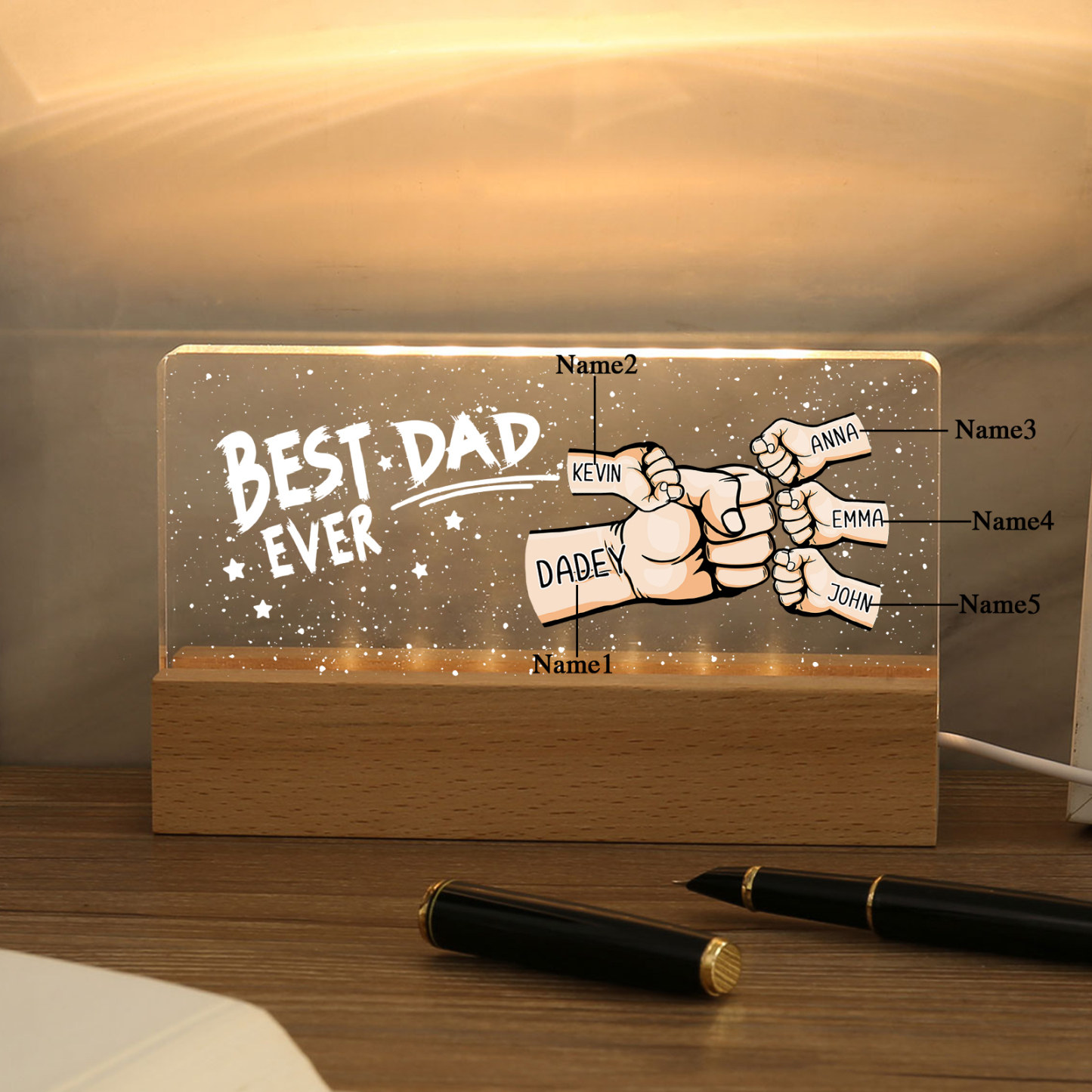 💡Customize a fist bump desk lamp with Dad's name! 🌟 Light up Dad's world with a unique gift. ❤️This stylish desk lamp featuring Dad's name and an impressive fist bump design will add a modern touch to his space. Brighten his day with personalized warmth and style. Order now to brighten his day! 🥰