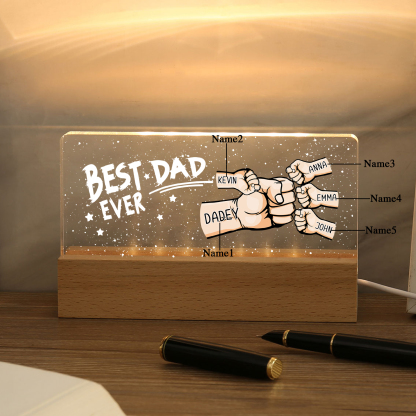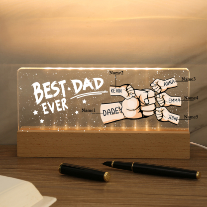 5 Names - Personalized Fist Bump Lamp - Best Dad Ever - Father's Day Gift for Dad