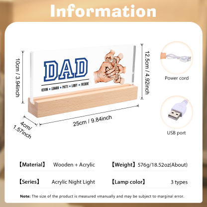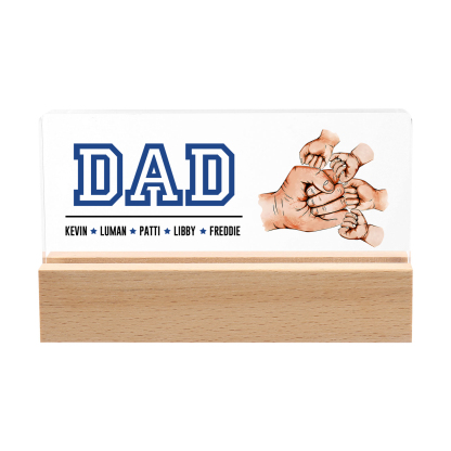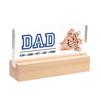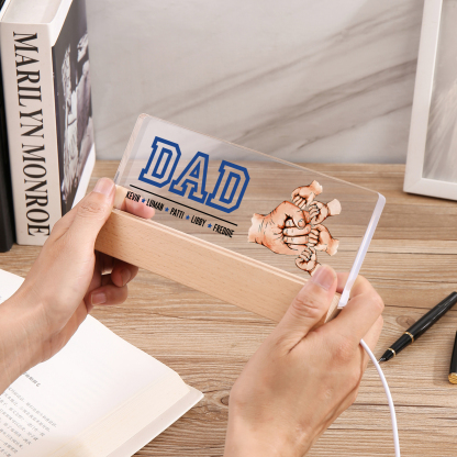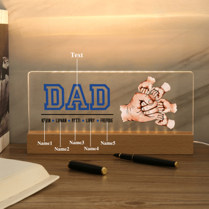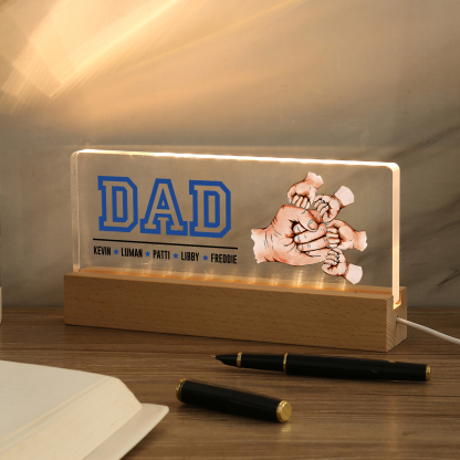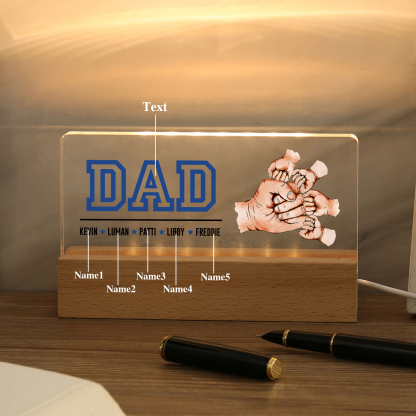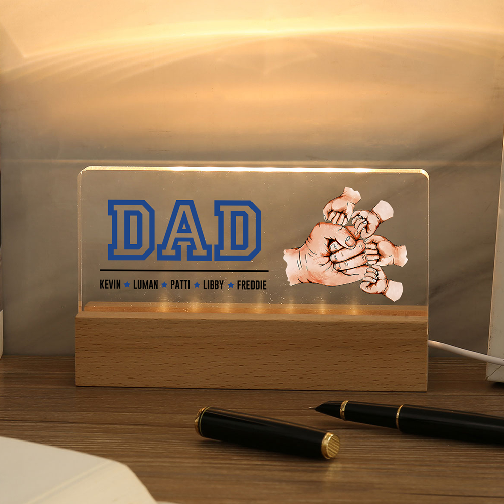 5 Names - Personalized Fist Bump Table Lamp - Dad's Dream Team - Father's Day Gift for Dad