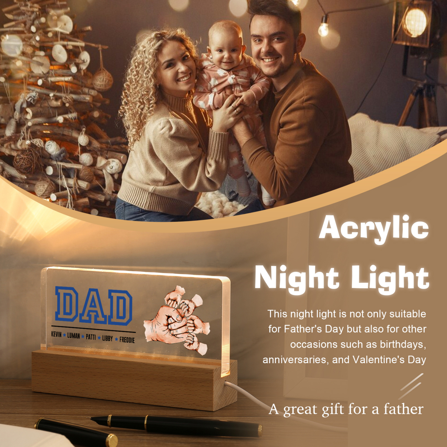 🔥The lamp supports customization of 2-6 names and 1 text.