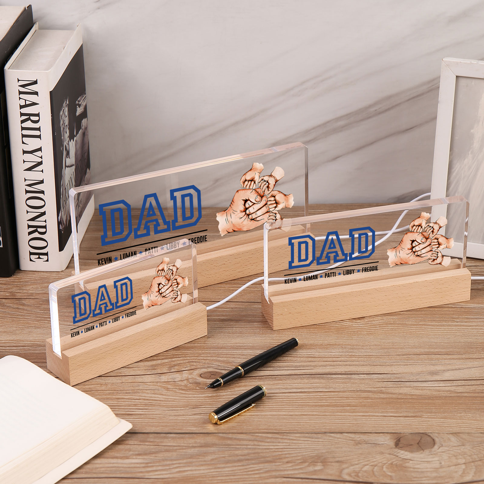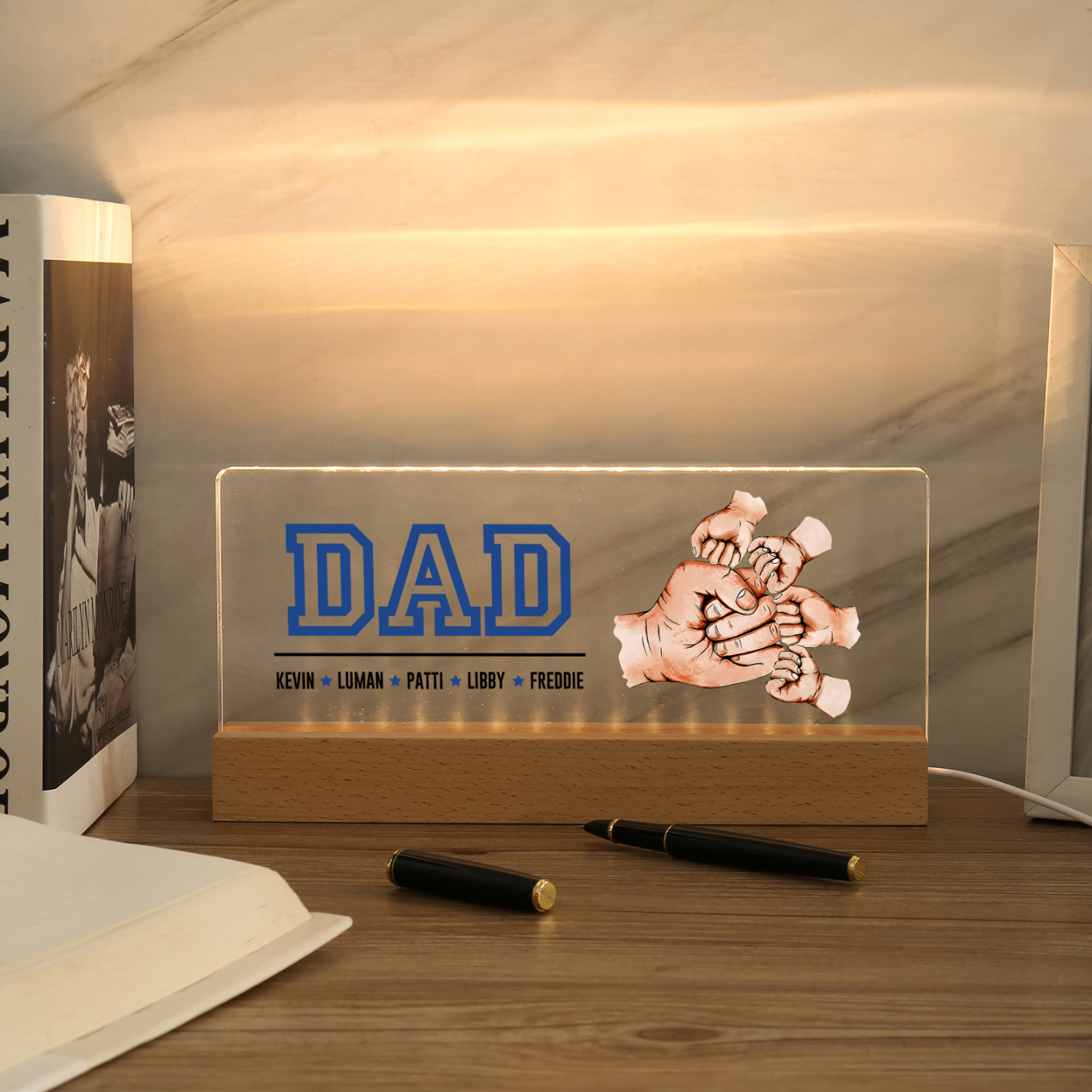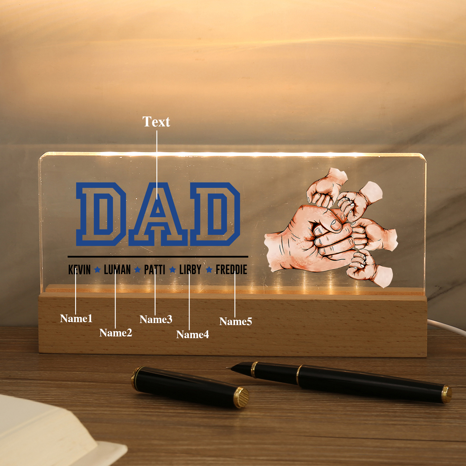 💡Customize the Fist Bump Table Lamp with Dad's Name! 🌟 Light up Dad's world with a unique gift. ❤️This stylish table lamp features Dad's name and an impressive baseball jersey design that will add a modern touch to his space. Brighten his day with personalized warmth and style. Order now to brighten his day! 🥰