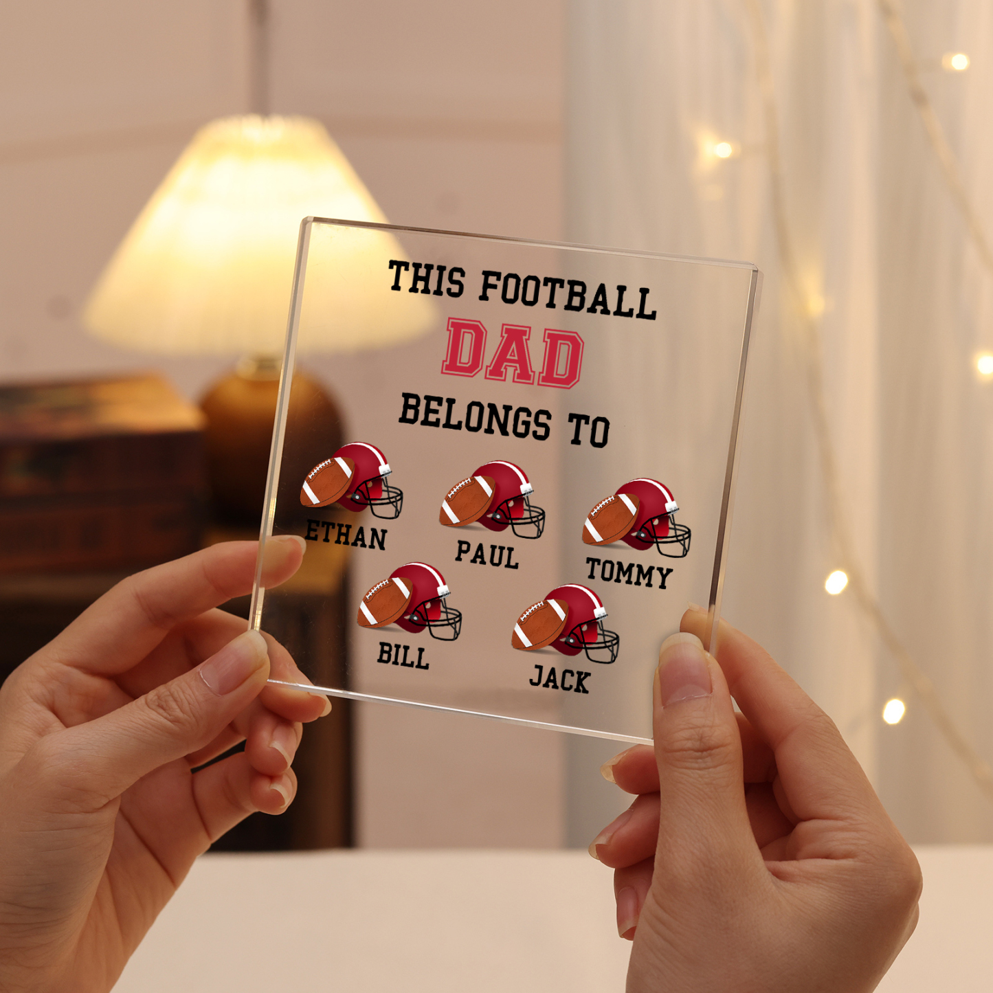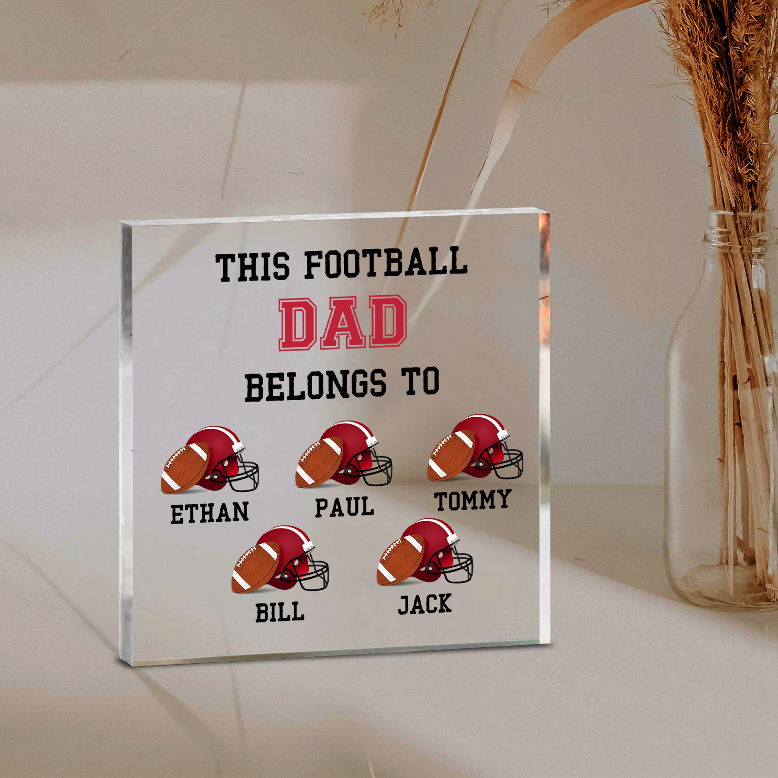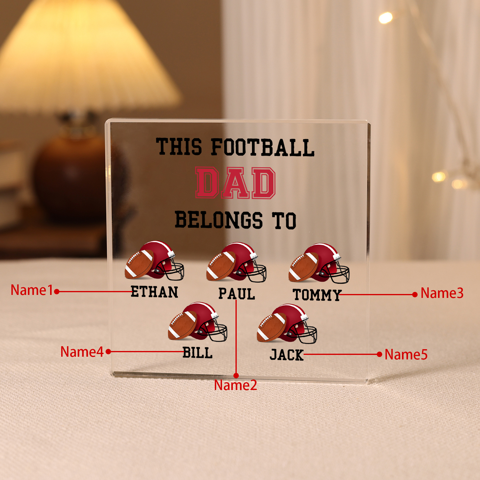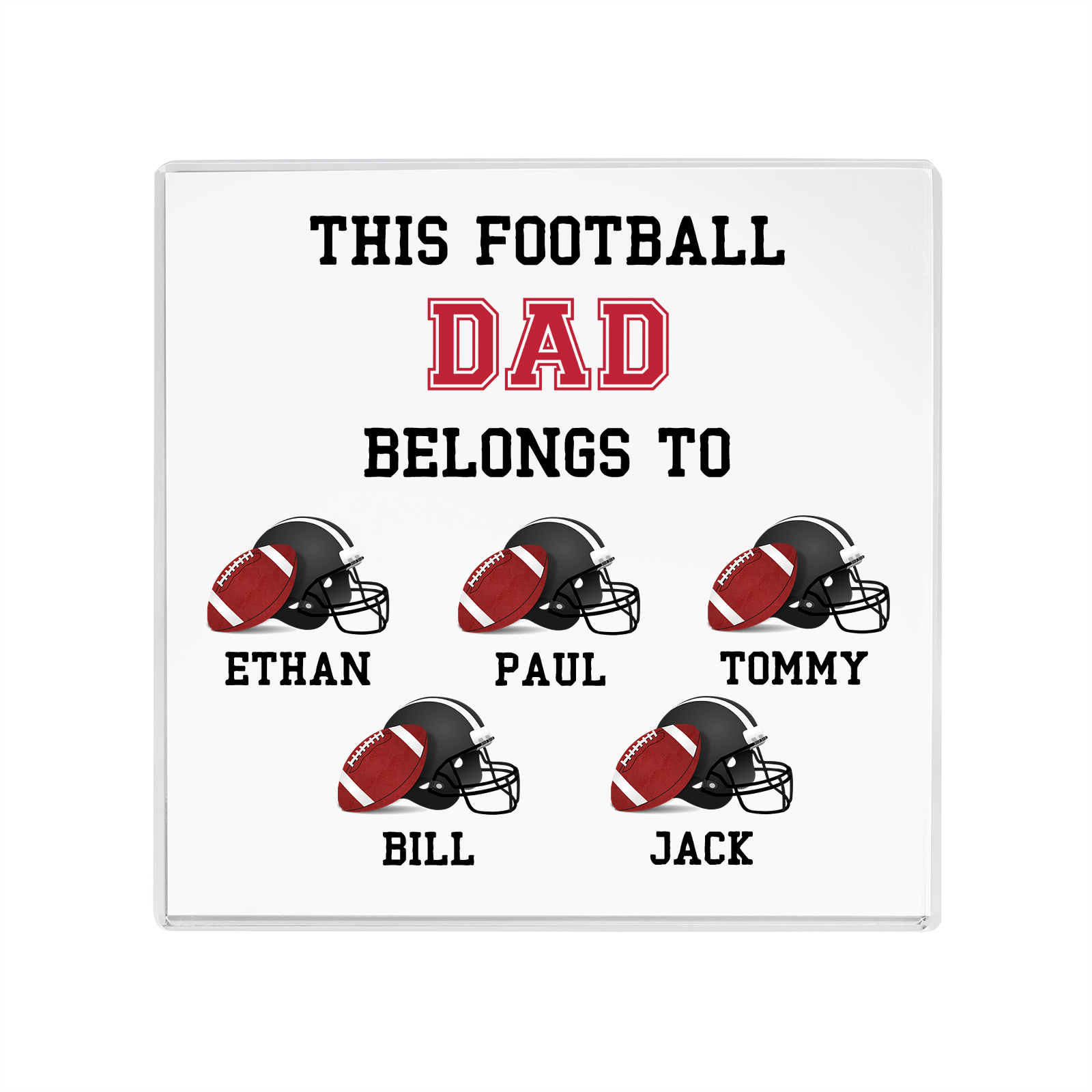 5 Names -Personalized Football Acrylic Keepsake Customized Name Acrylic Plaque Ornament Father's Day Gift for Dad
