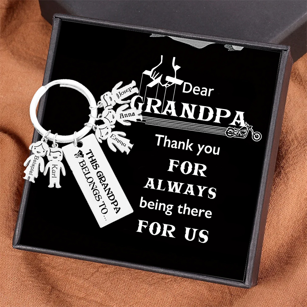 5 Names-Personalized Grandpa Kids Charms Keychain Gift Set-Custom Special Keychain Gift For Grandpa-Thank You For Always Being There For Us