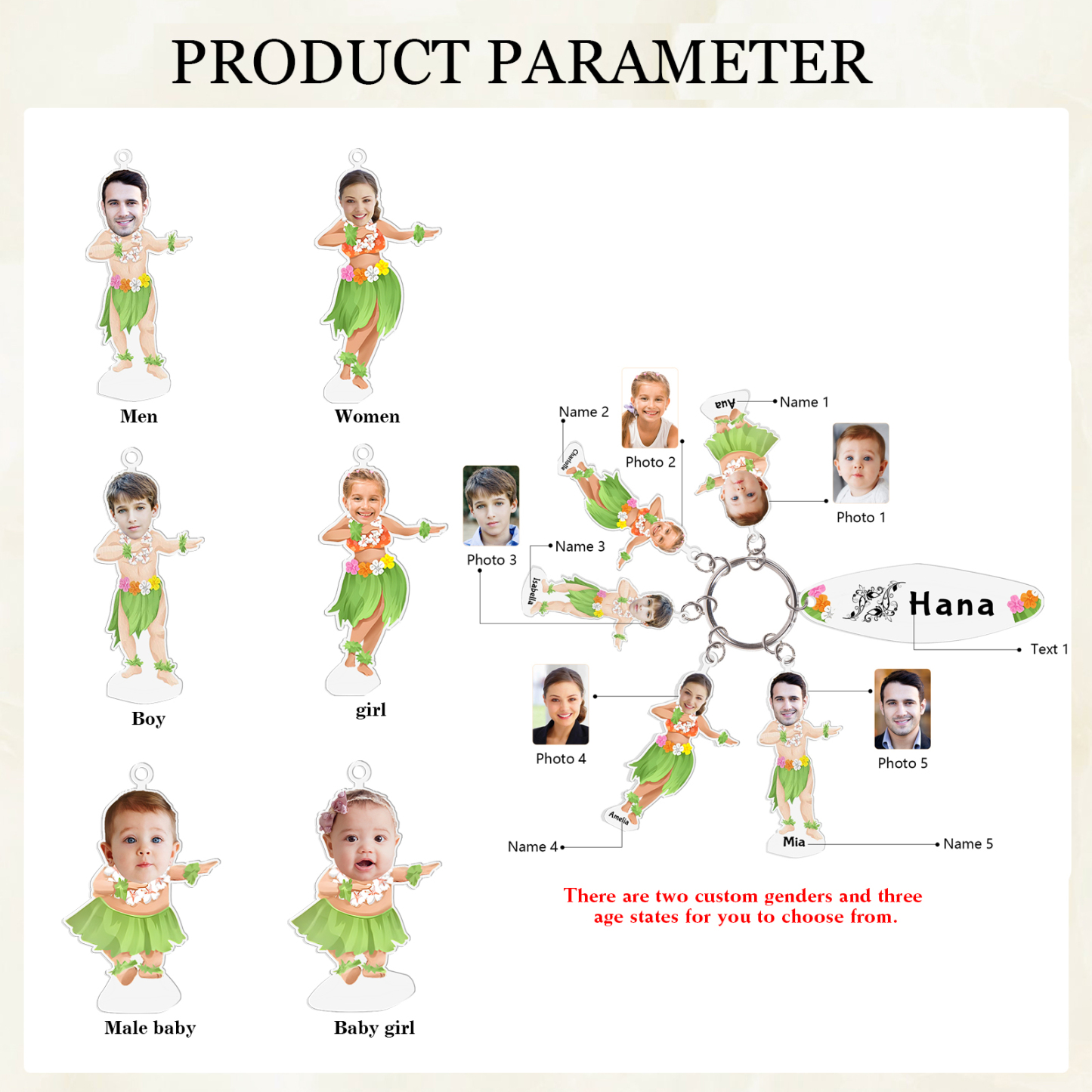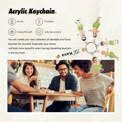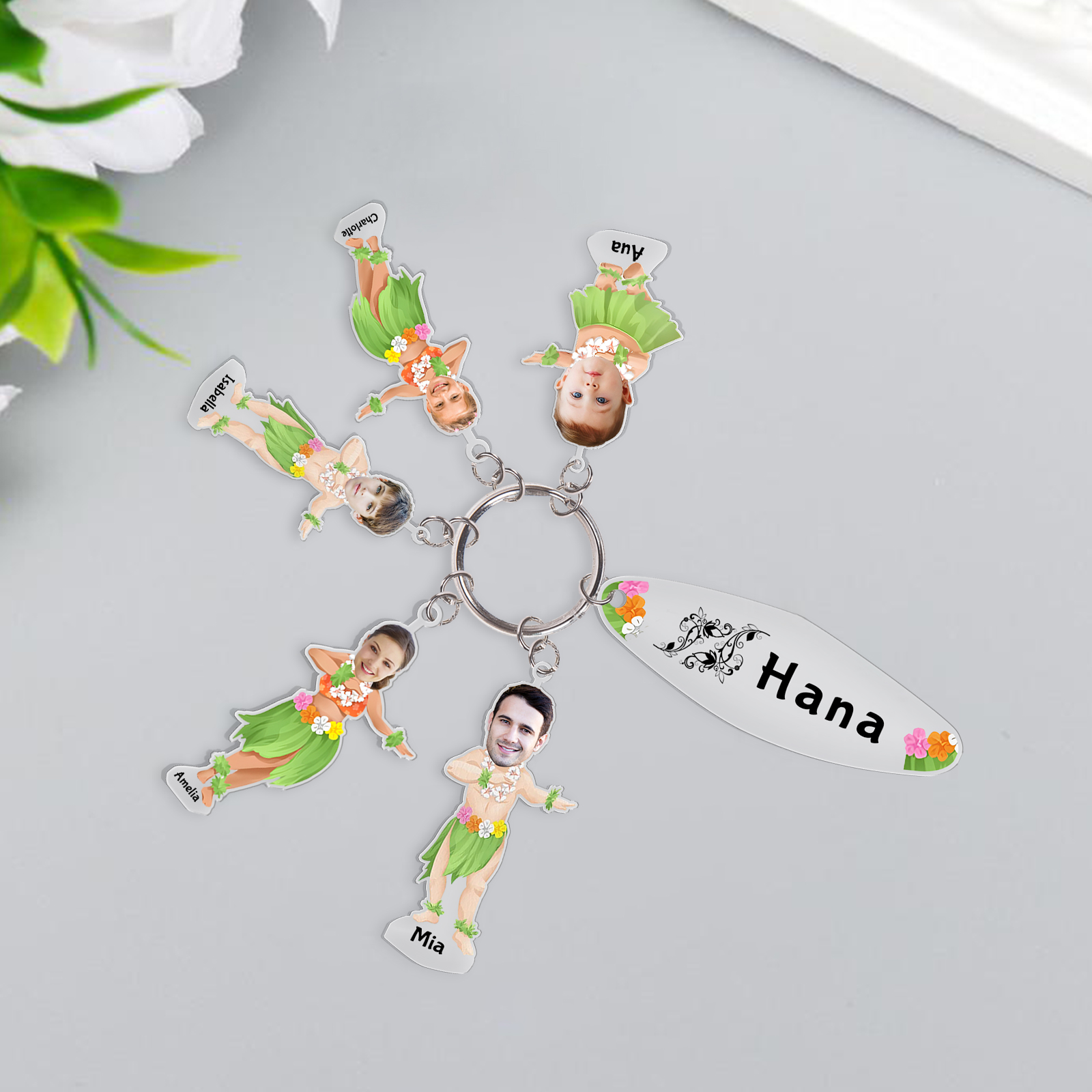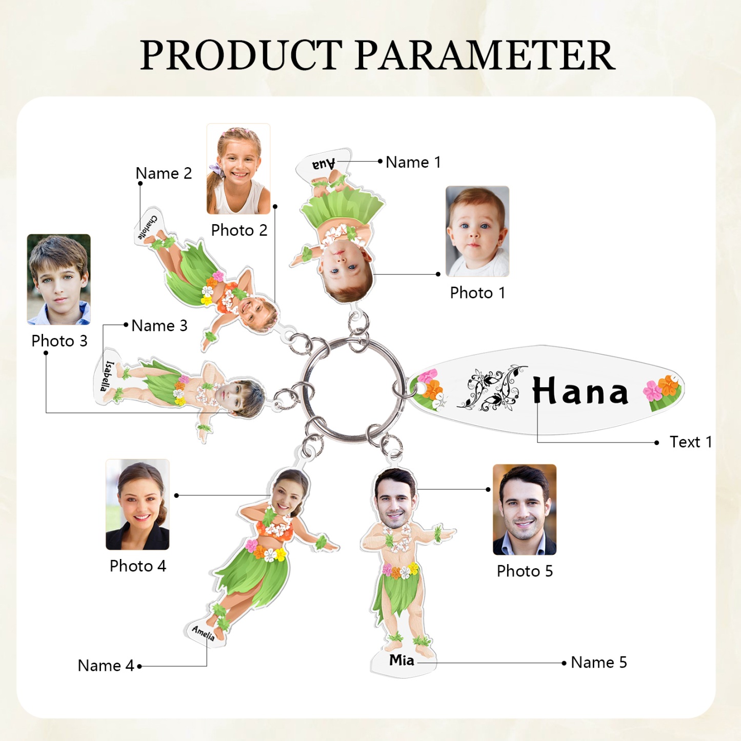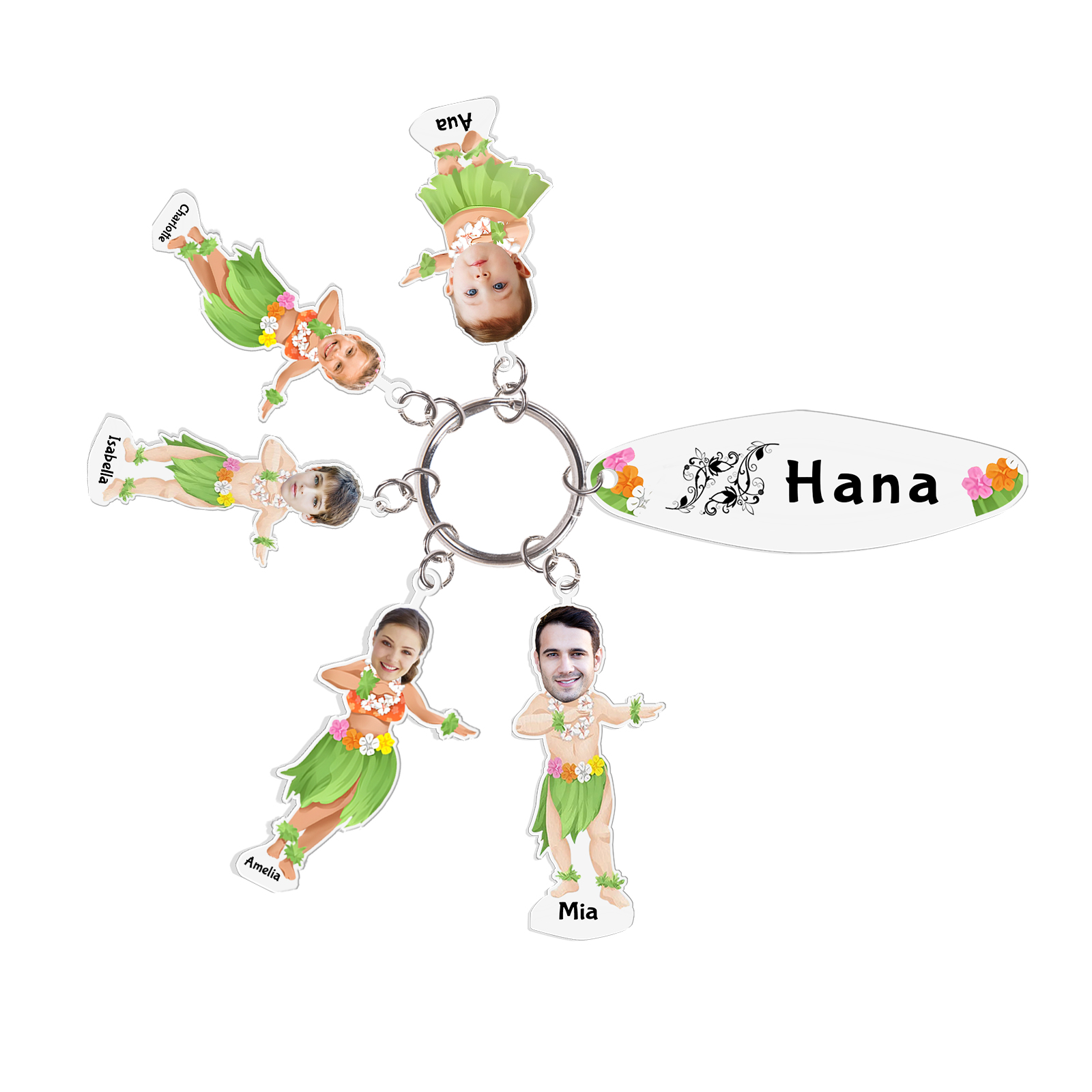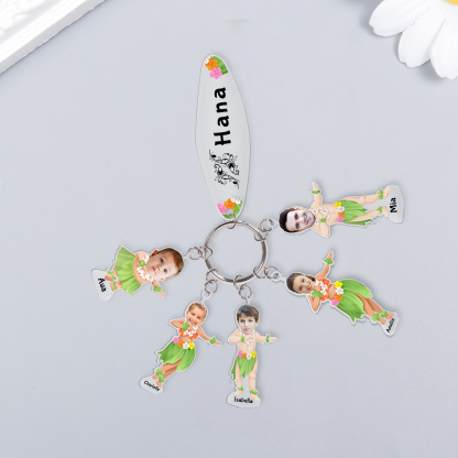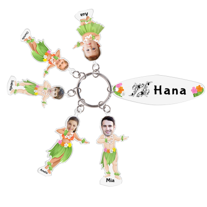 5 Names - Personalized Hawaiian Style Keychain With 5 Photo,5 Name and Text, Gift For Family