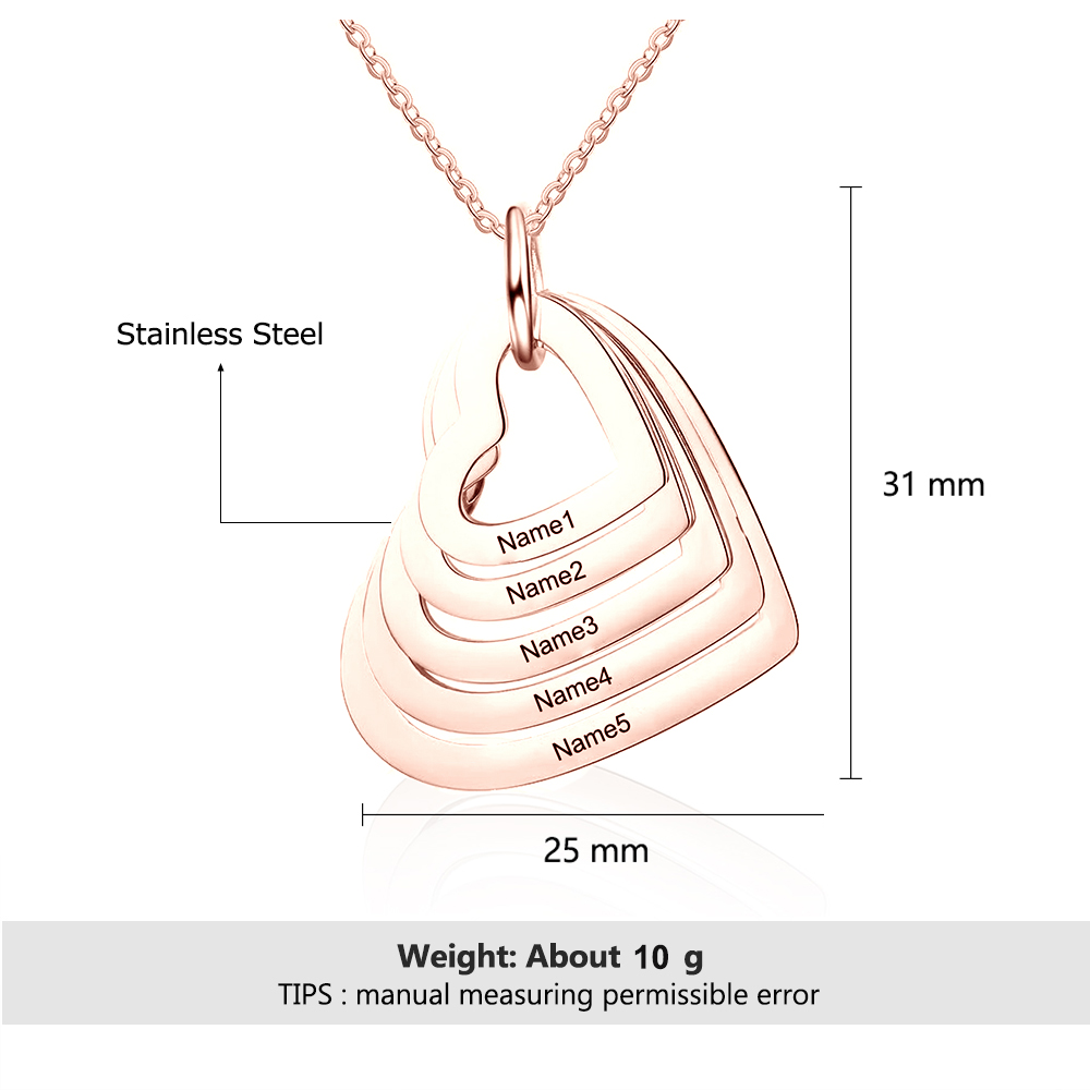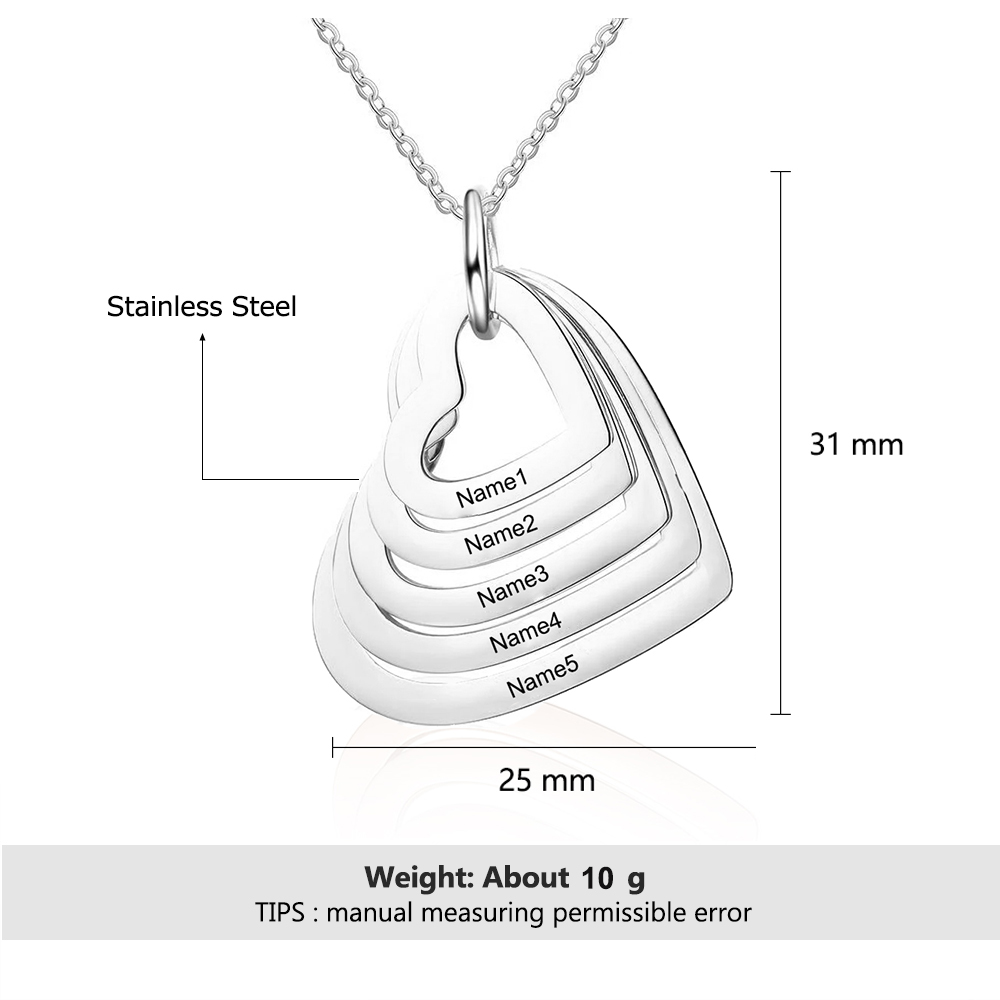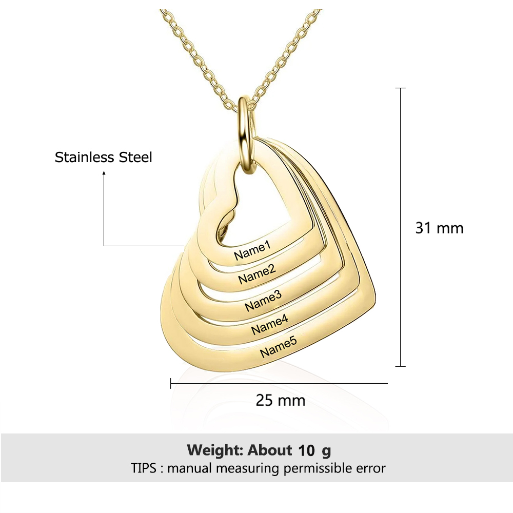 5 Names-Personalized Heart Necklace With 5 Heart Pendant Engraved Names Gift For Women