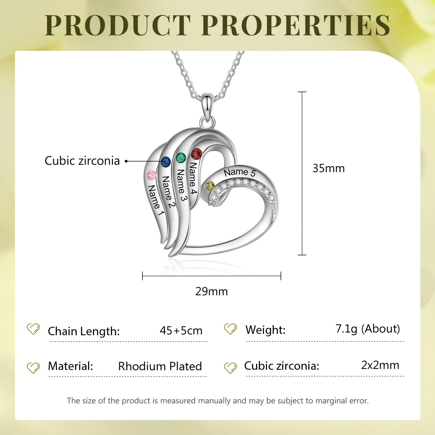 5 Names-Personalized Hearts Necklace Custom Birthstone Necklace Gifts for Mom
