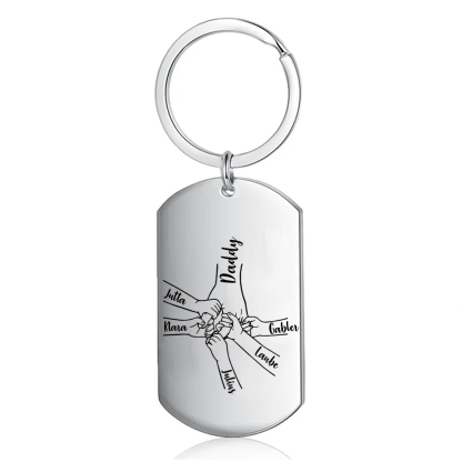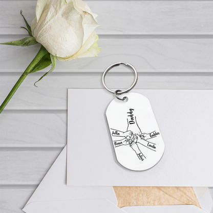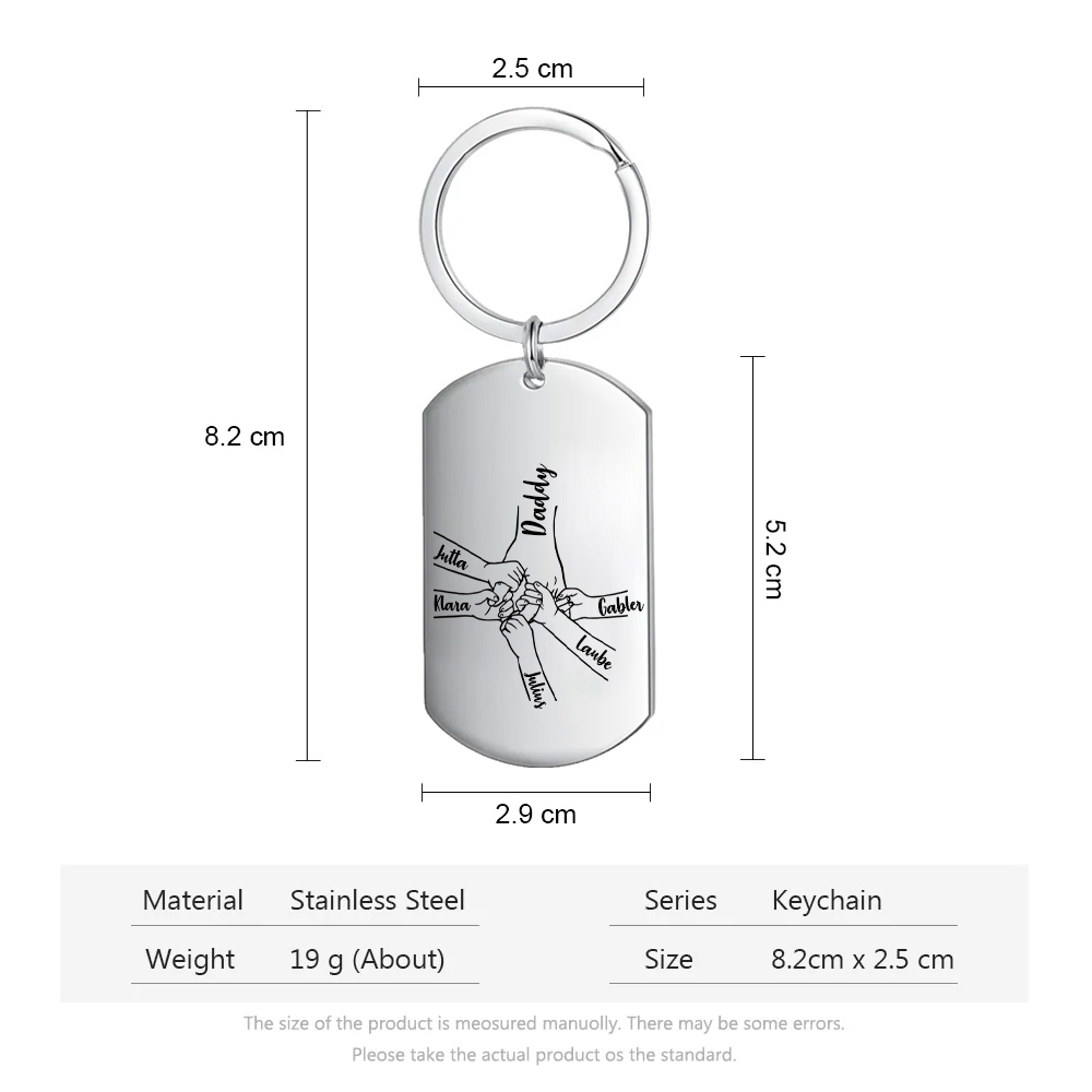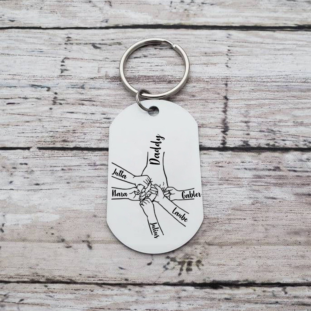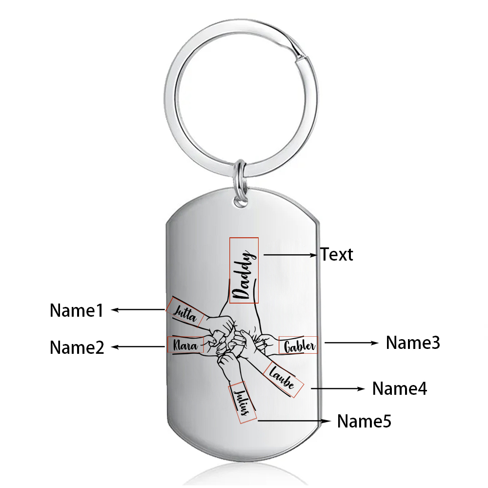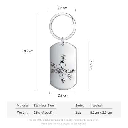 5 Names - Personalized Holding Hands Keychain with name and text Gift for Dad