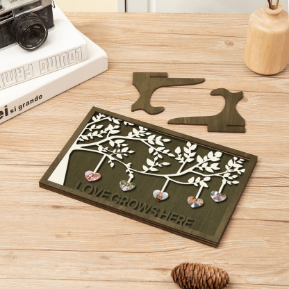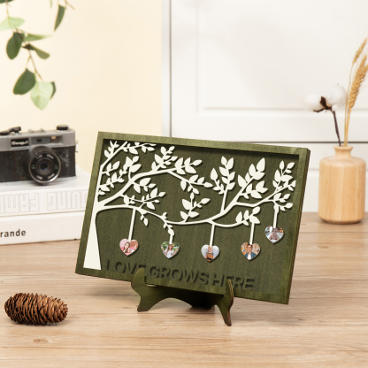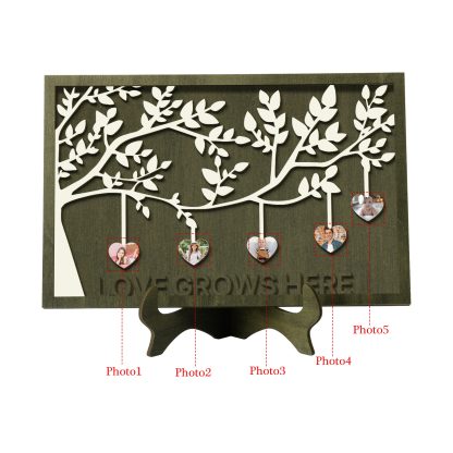 5 Photos-Personalized Family Tree Decoration Wooden Ornaments Love Grows Here Concave And Convex Frame Custom Photos For Family