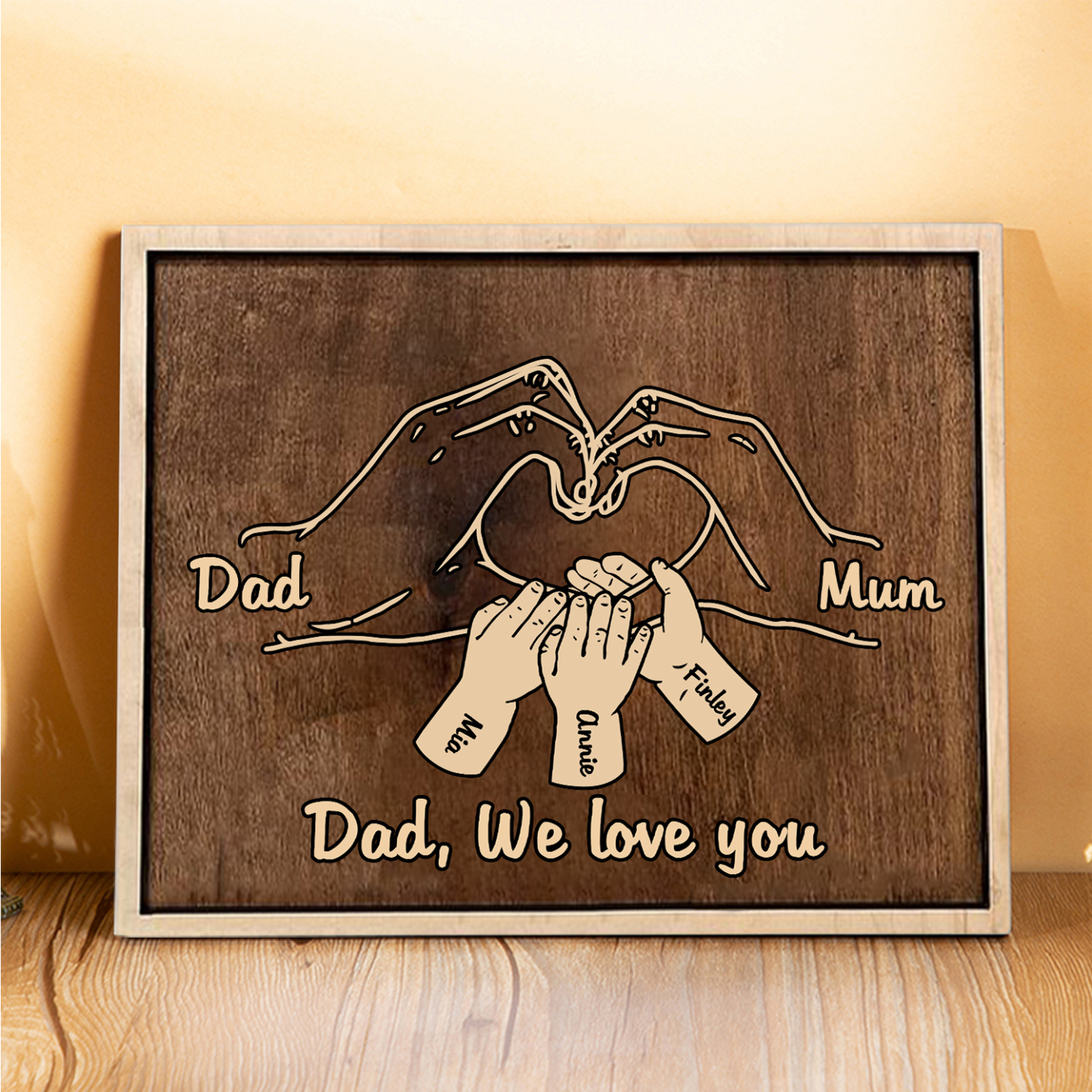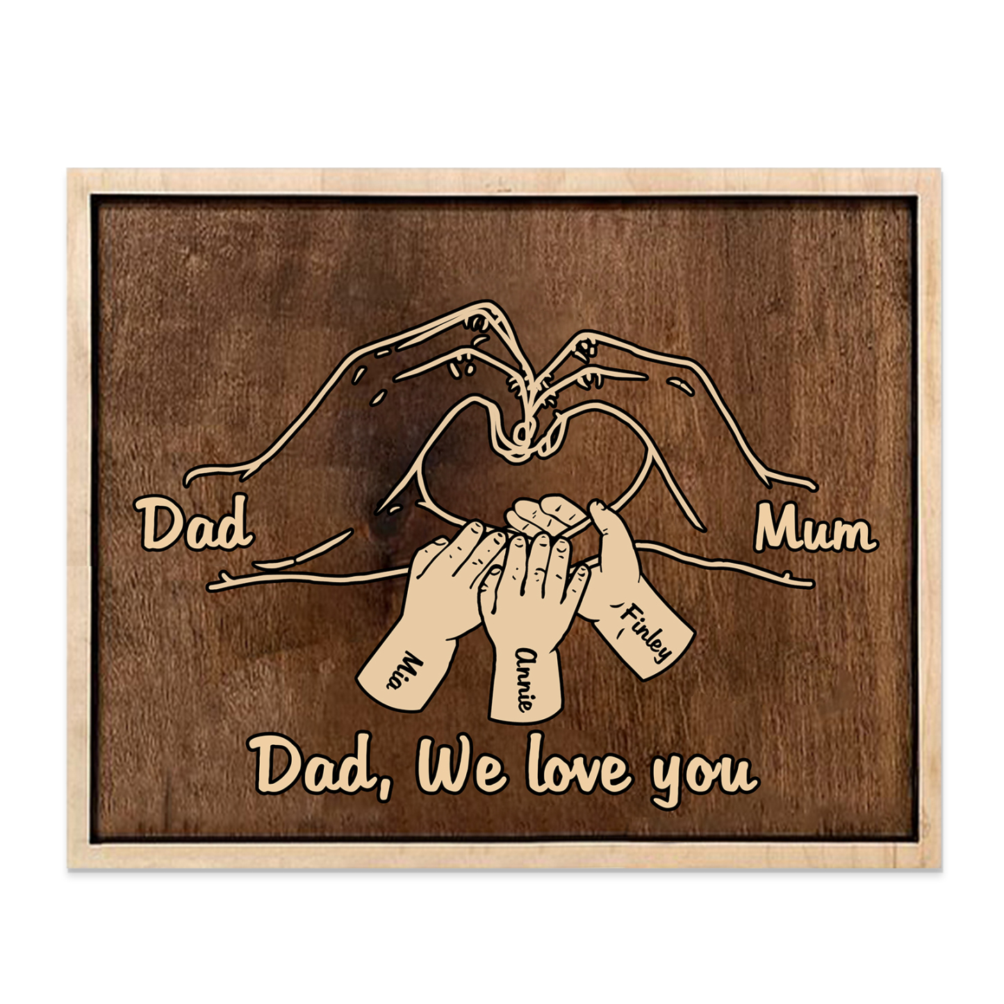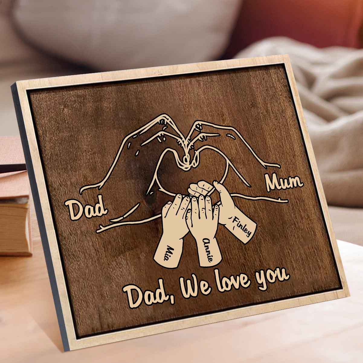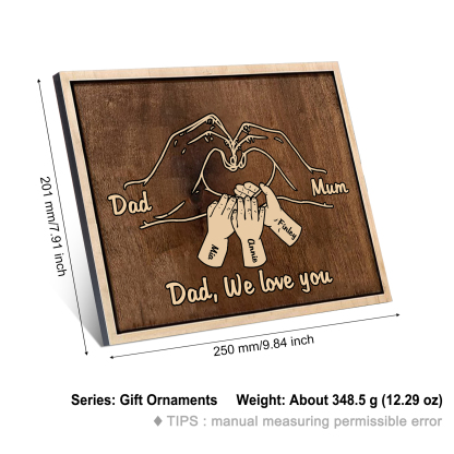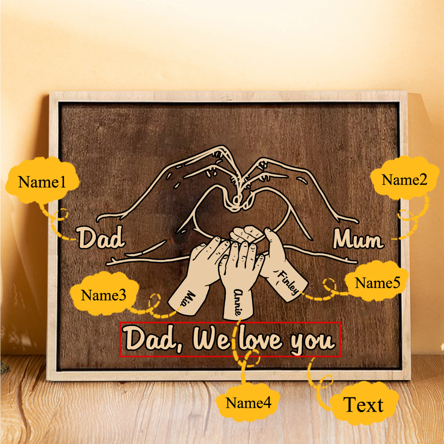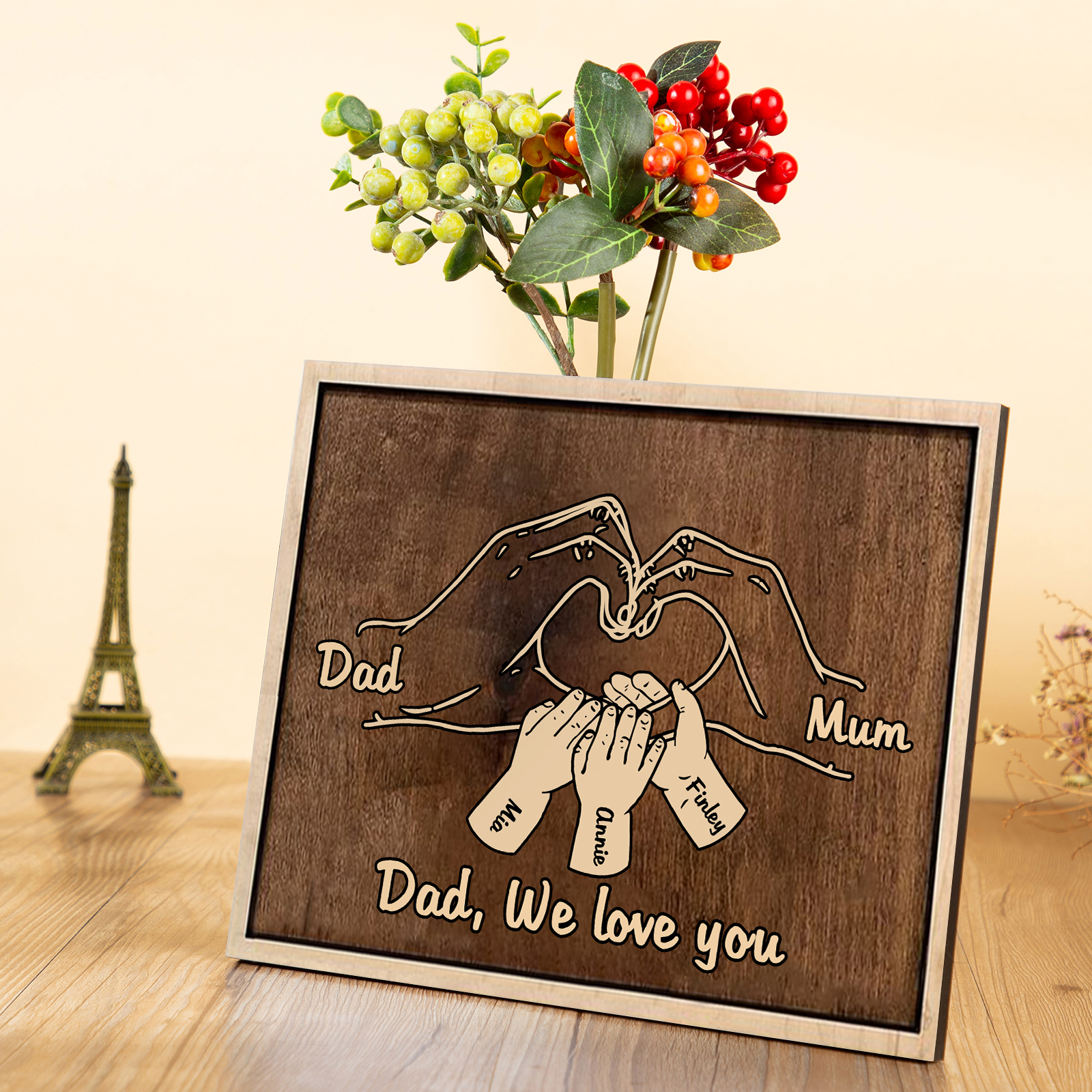 5 Names - Personalized Home Frame Heart Handshake Style Wooden Ornament Home Decor For Dad