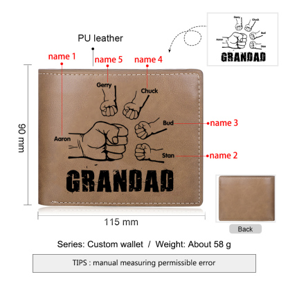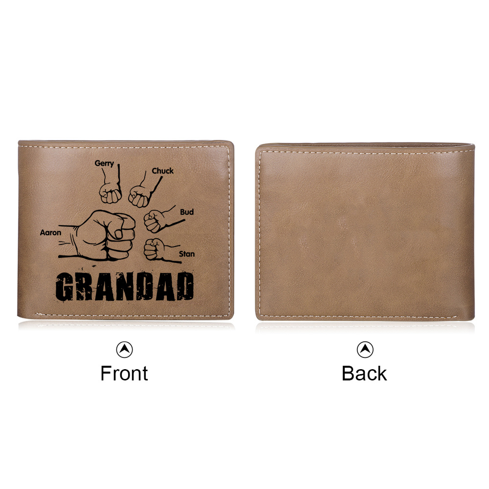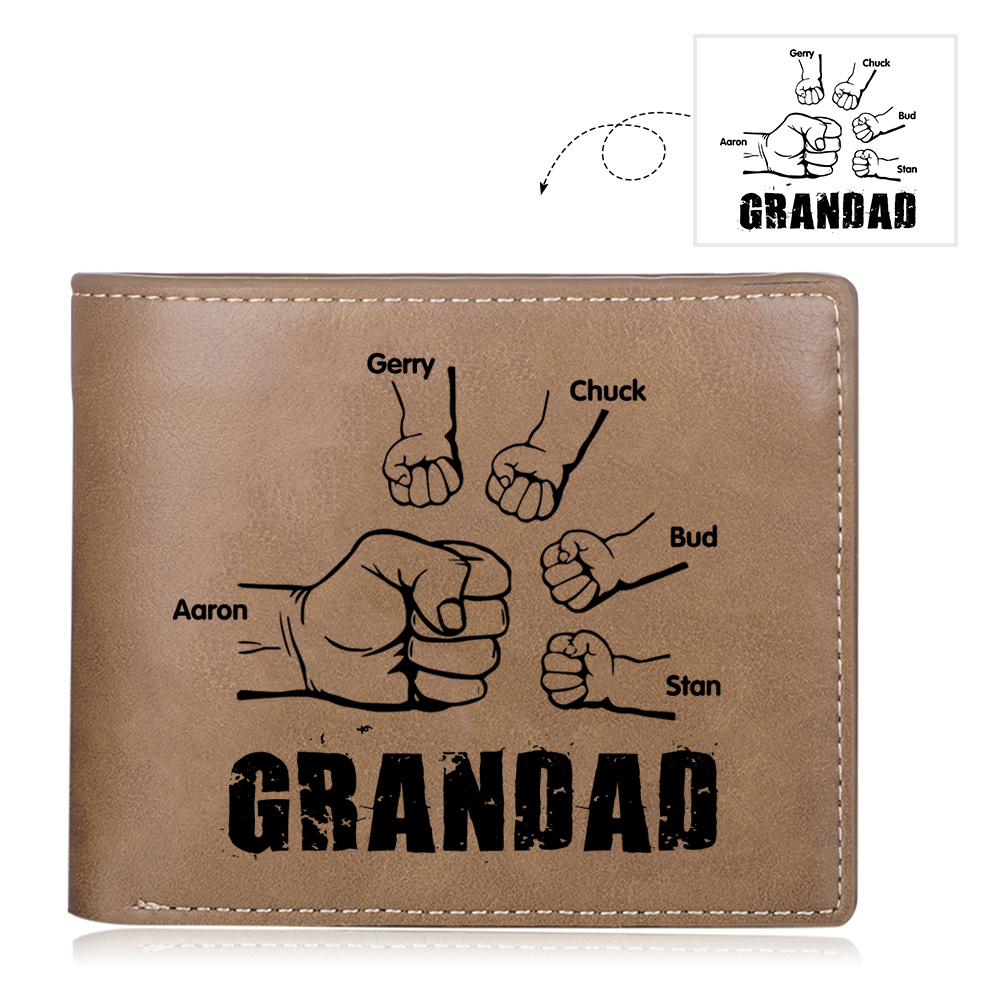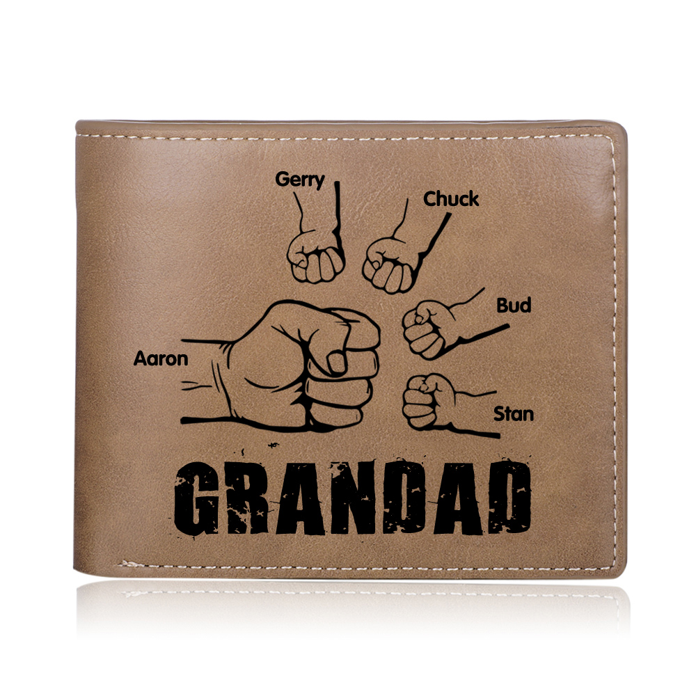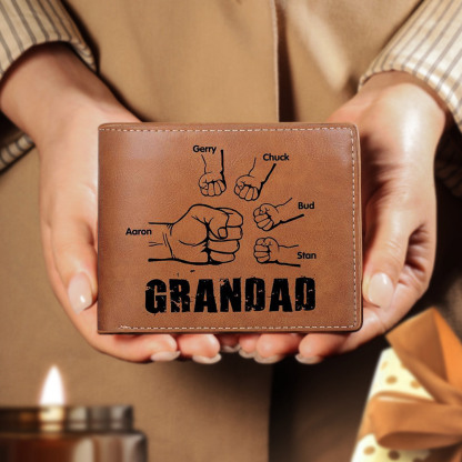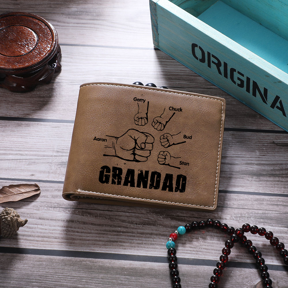 5 Names-Personalized Leather Men Wallet Engraved 5 Names Fist Bump Folding Wallet Gift Set For Grandad