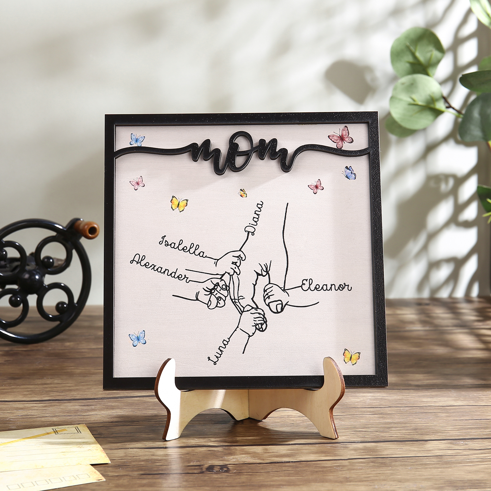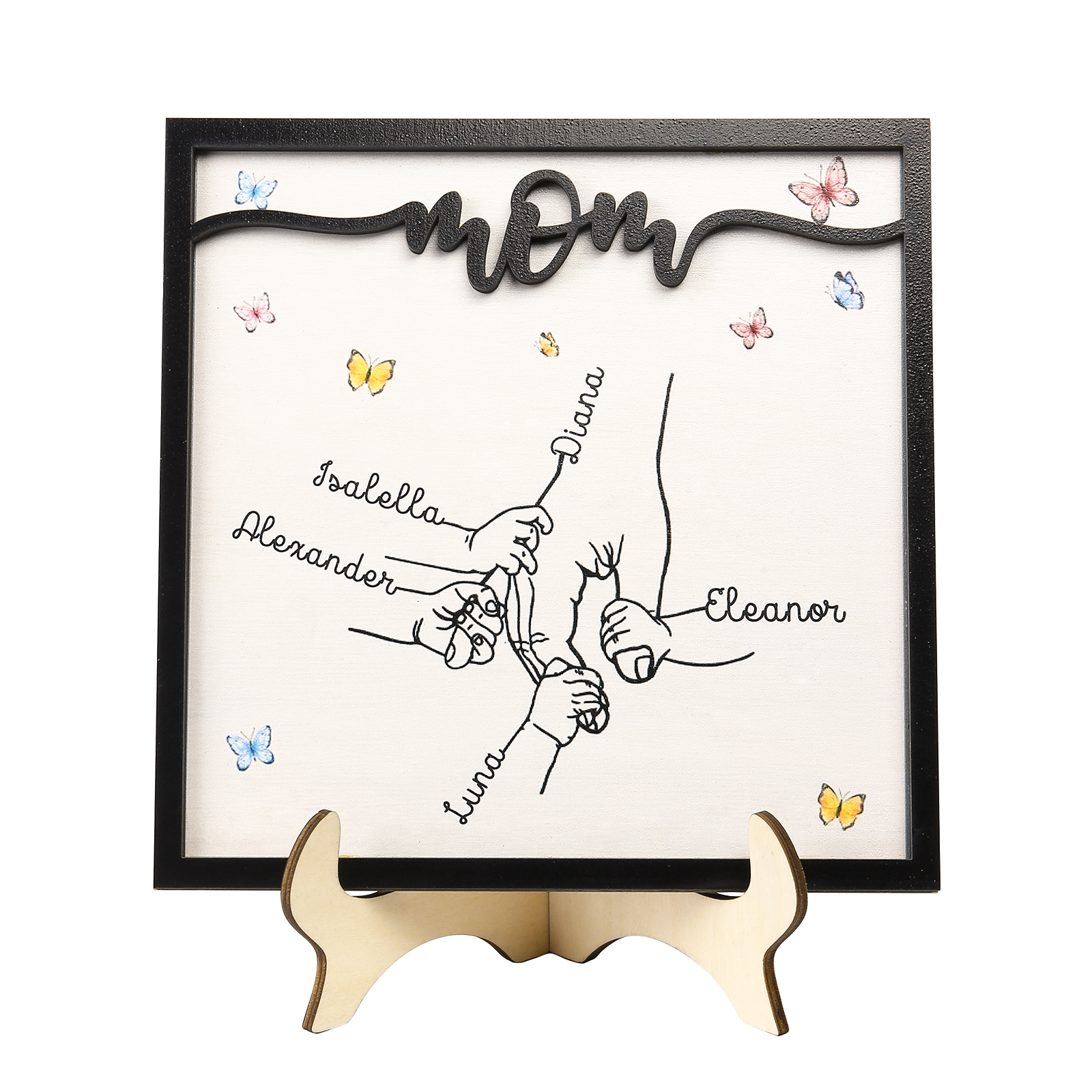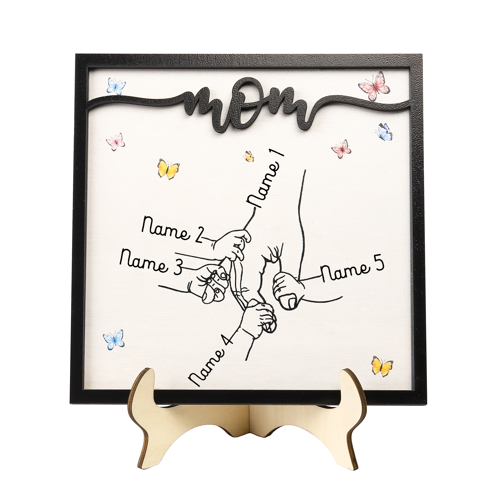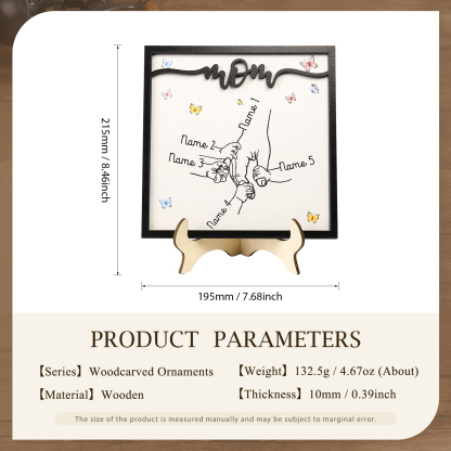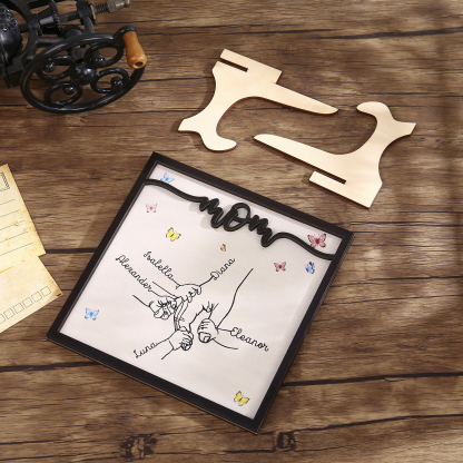 5 Names-Personalized Mom Hooking Hands Wooden Frame Custom Names Home Decoration for Mother
