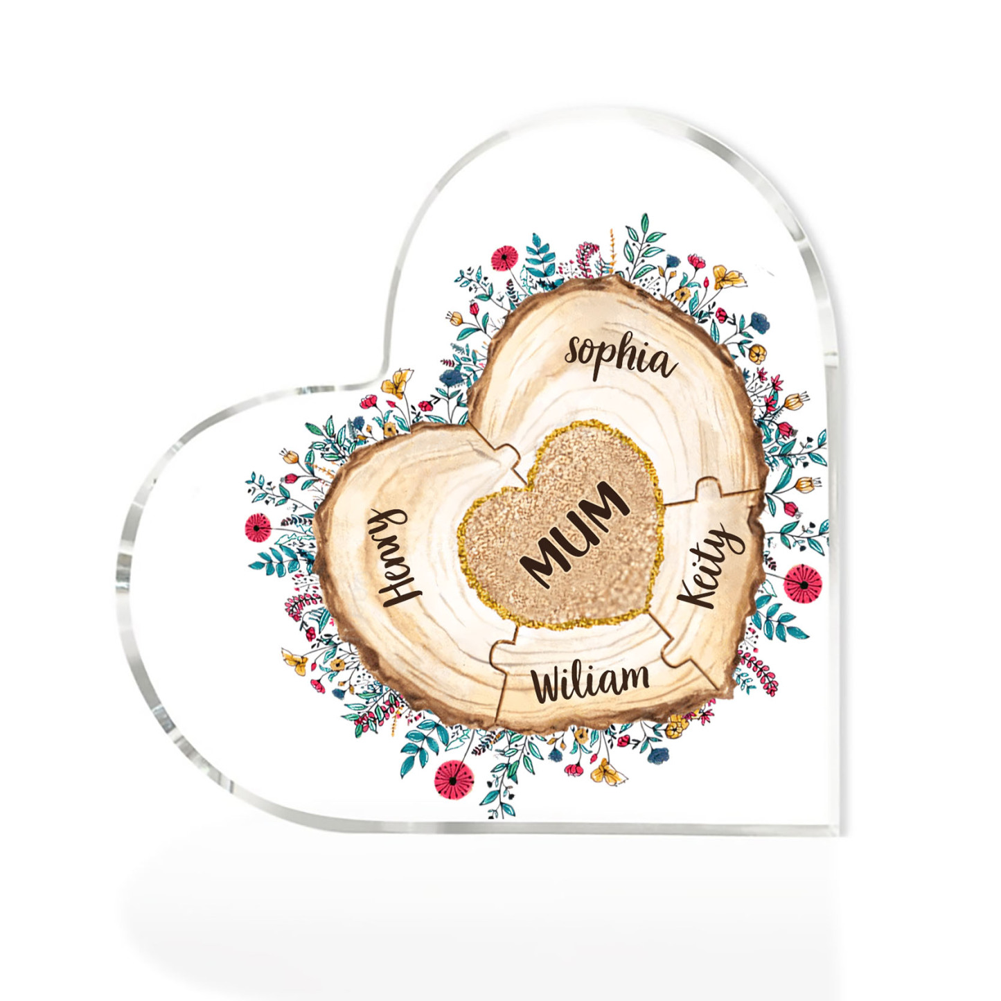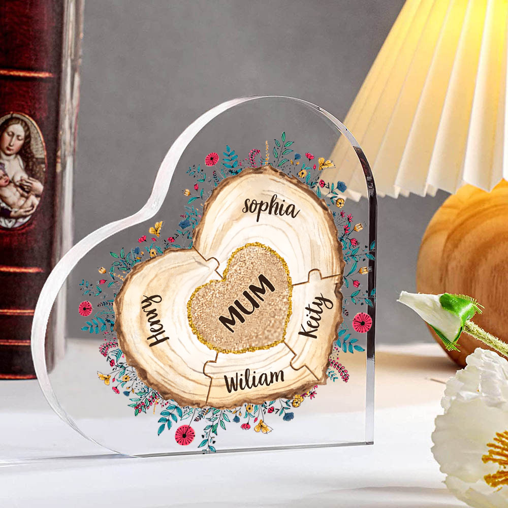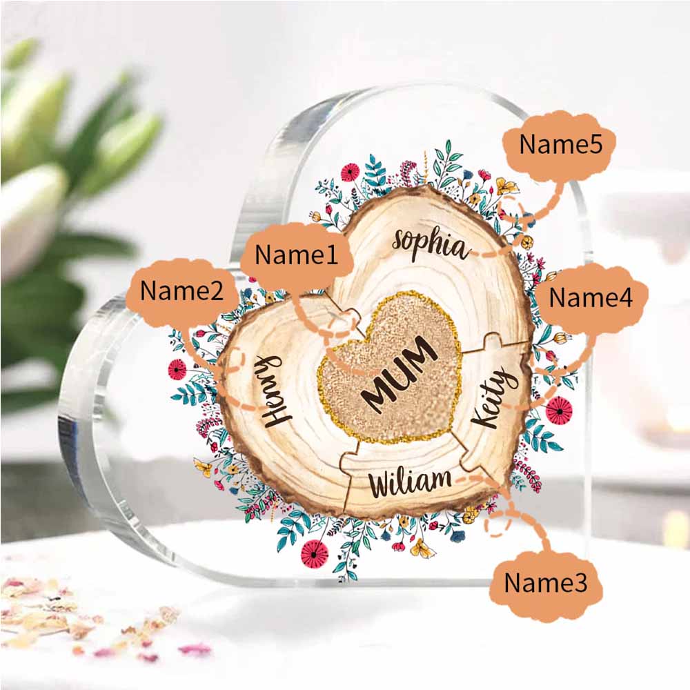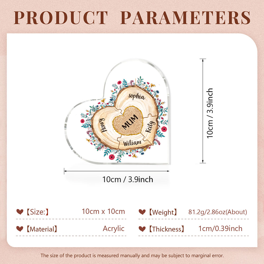 5 Names-Personalized Mom Acrylic Heart Keepsake Growth Rings Ornaments Gifts Set With Gift Box for Grandma/Mother