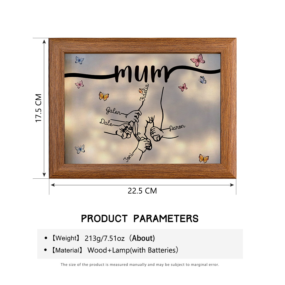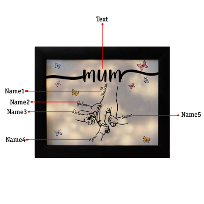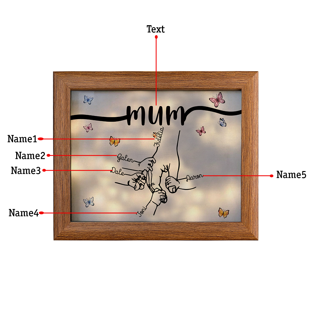 5 Names-Personalized Mum Family Hooking Hands Frame Custom Text LED Night Light Gift For Mum