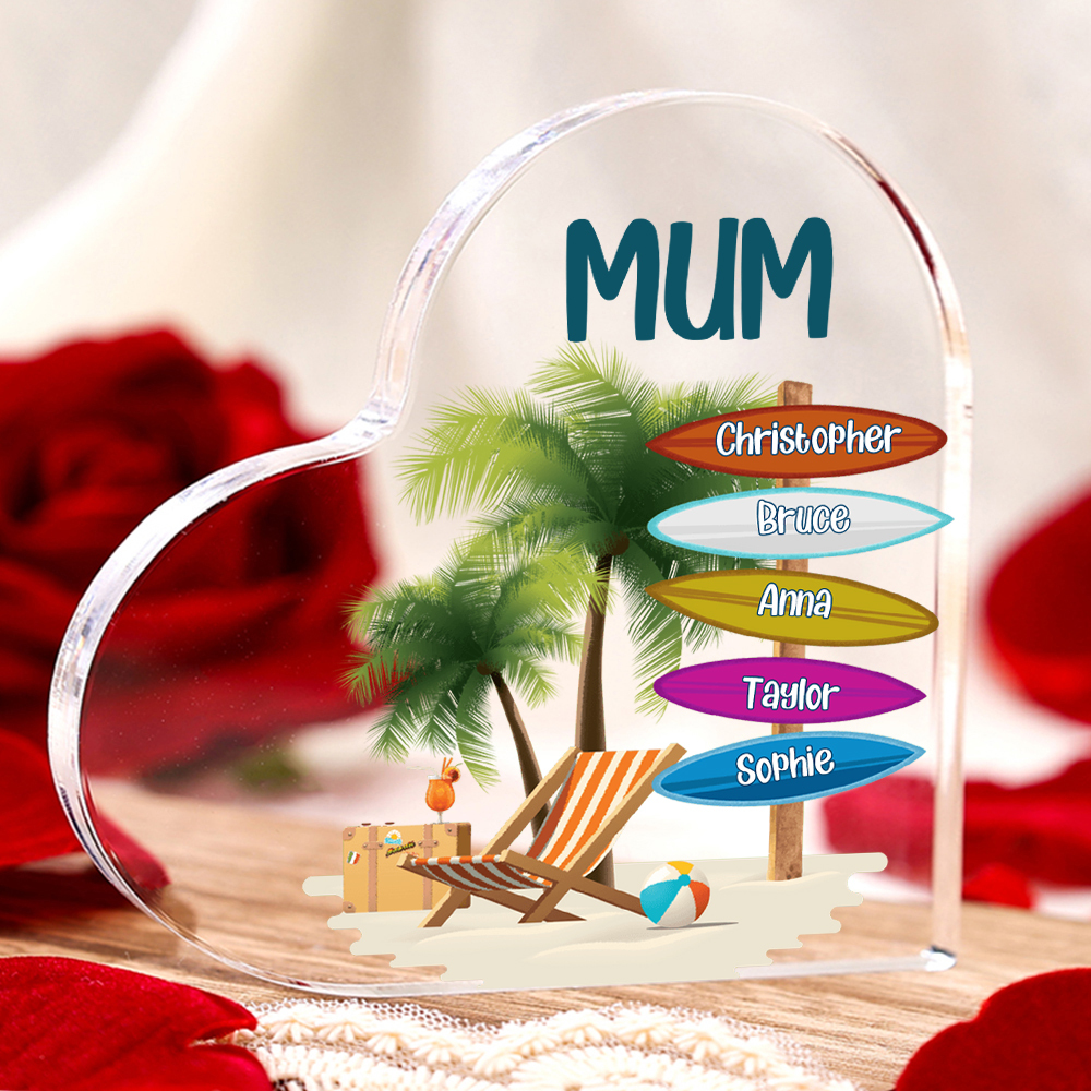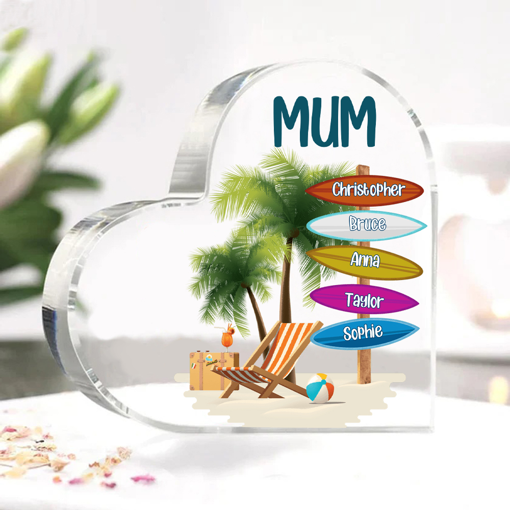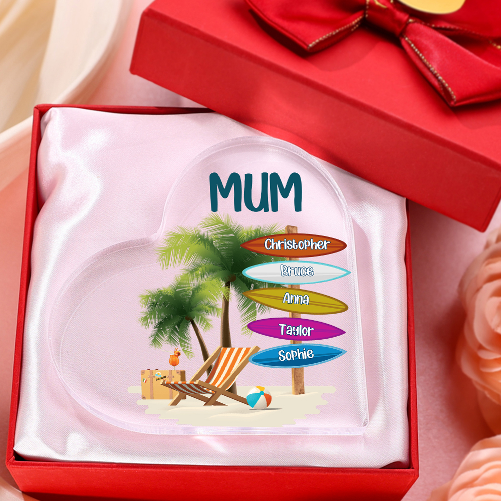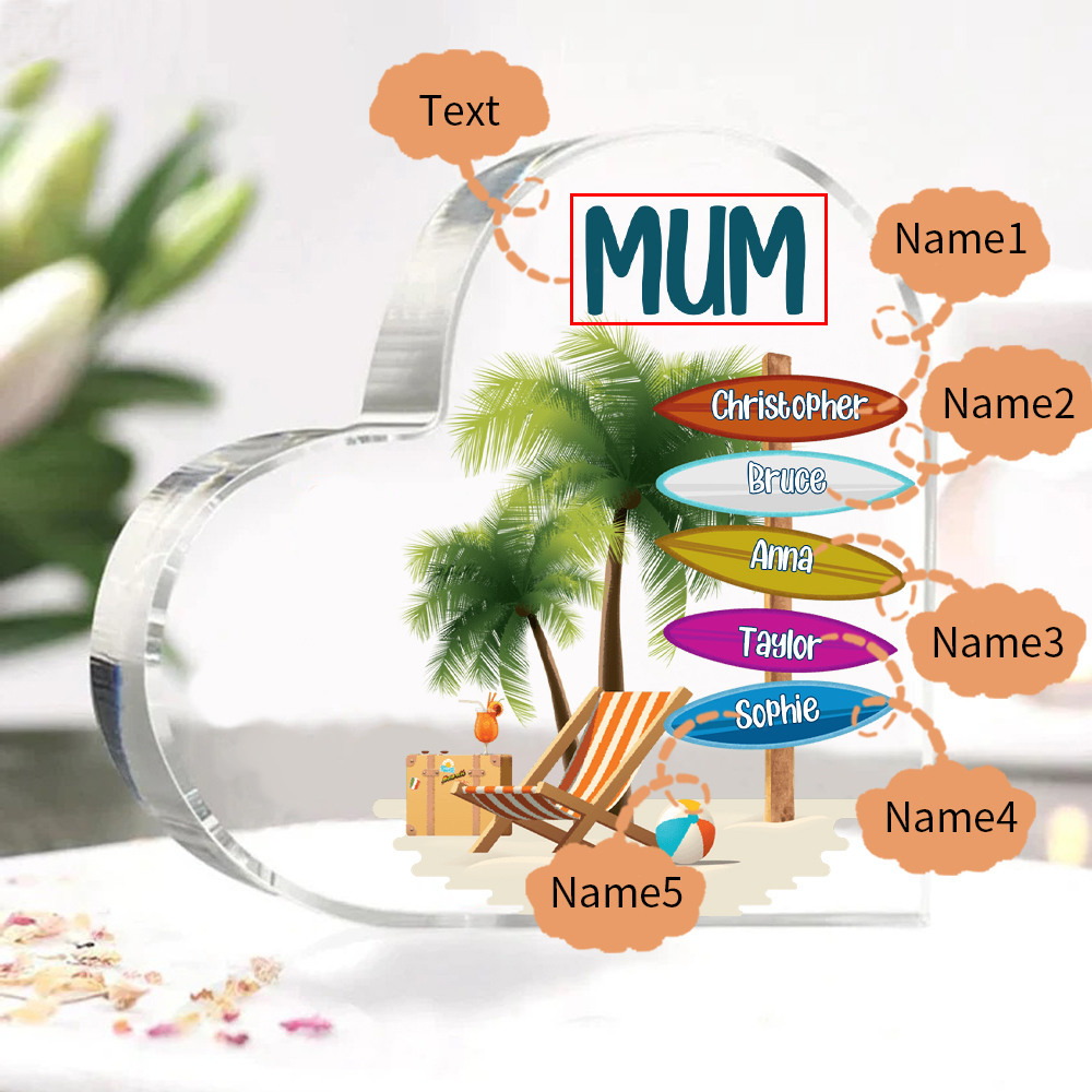 5 Names-Personalized Mum Vacation Acrylic Heart Keepsake Custom Text Acrylic Plaque Ornaments Gifts Set With Gift Box for Nan/Mother