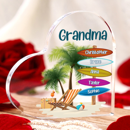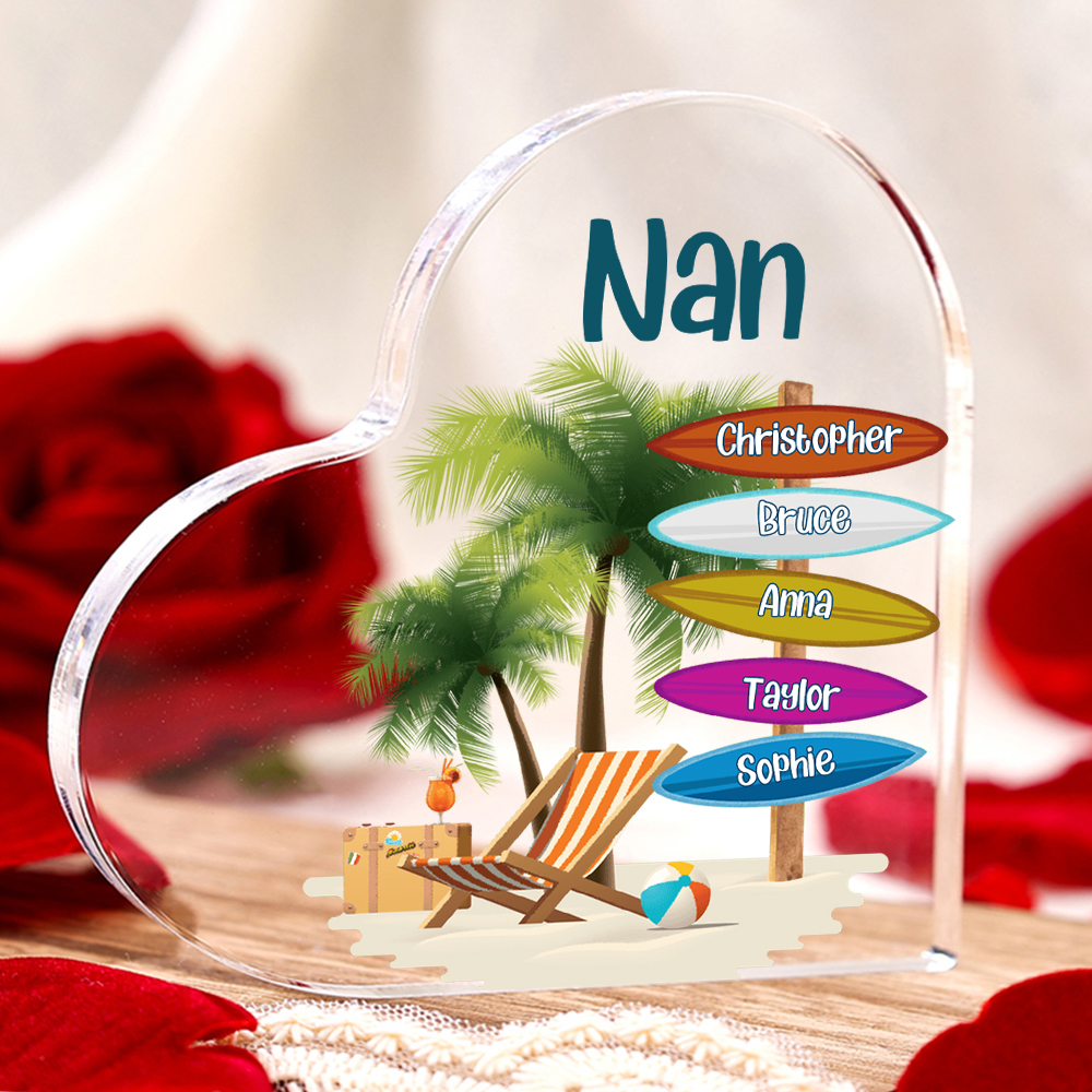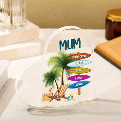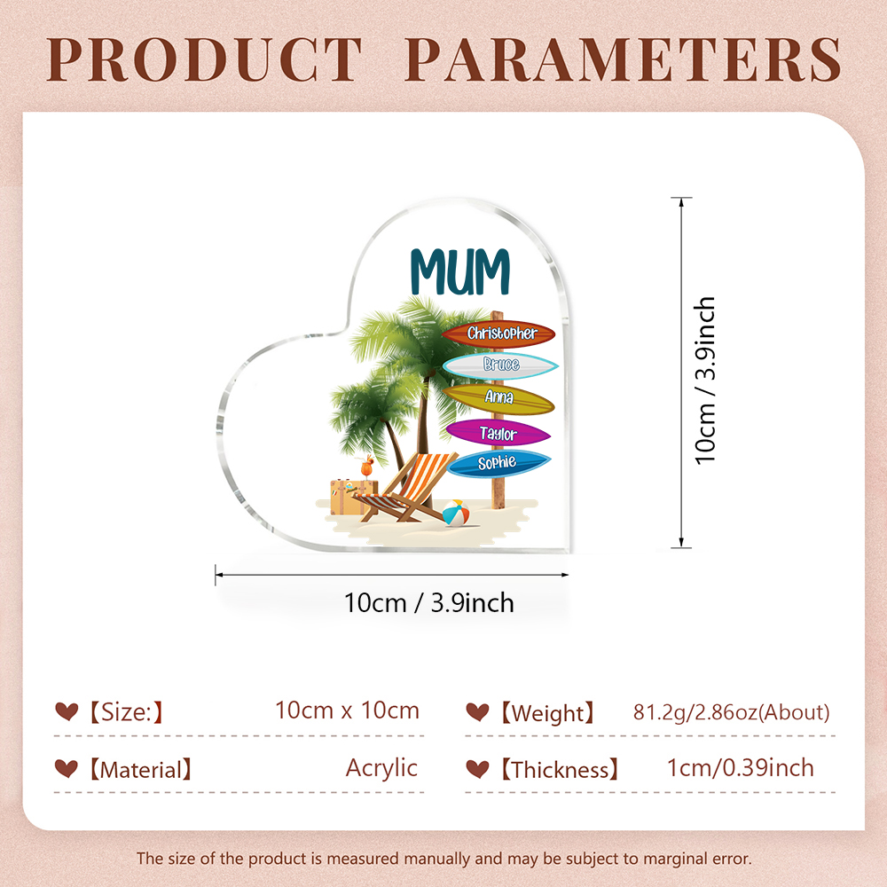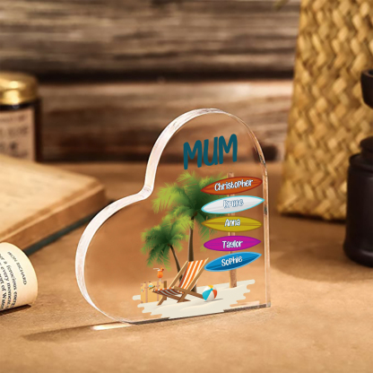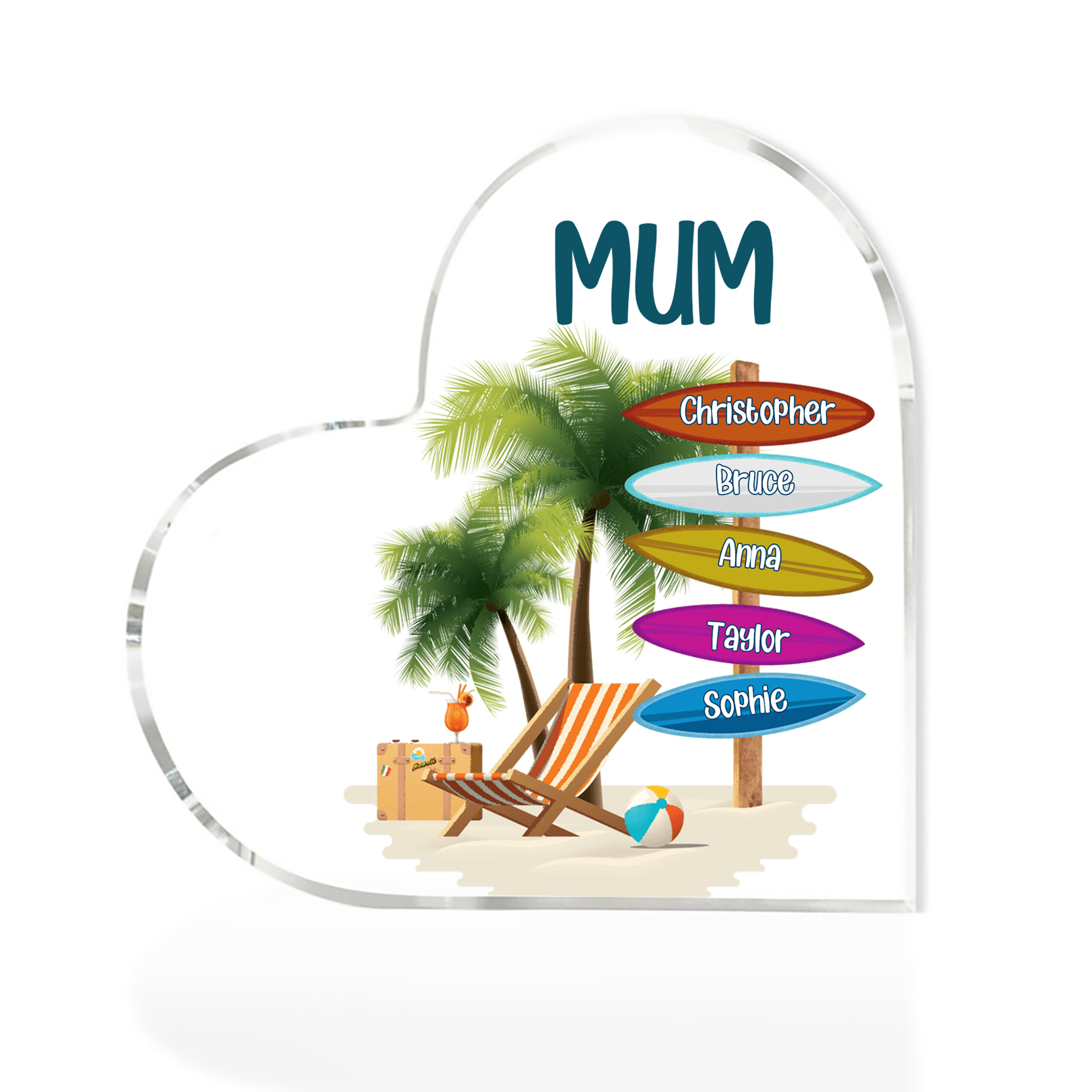 5 Names-Personalized Mum Vacation Acrylic Heart Keepsake Custom Text Acrylic Plaque Ornaments Gifts Set With Gift Box for Nan/Mother